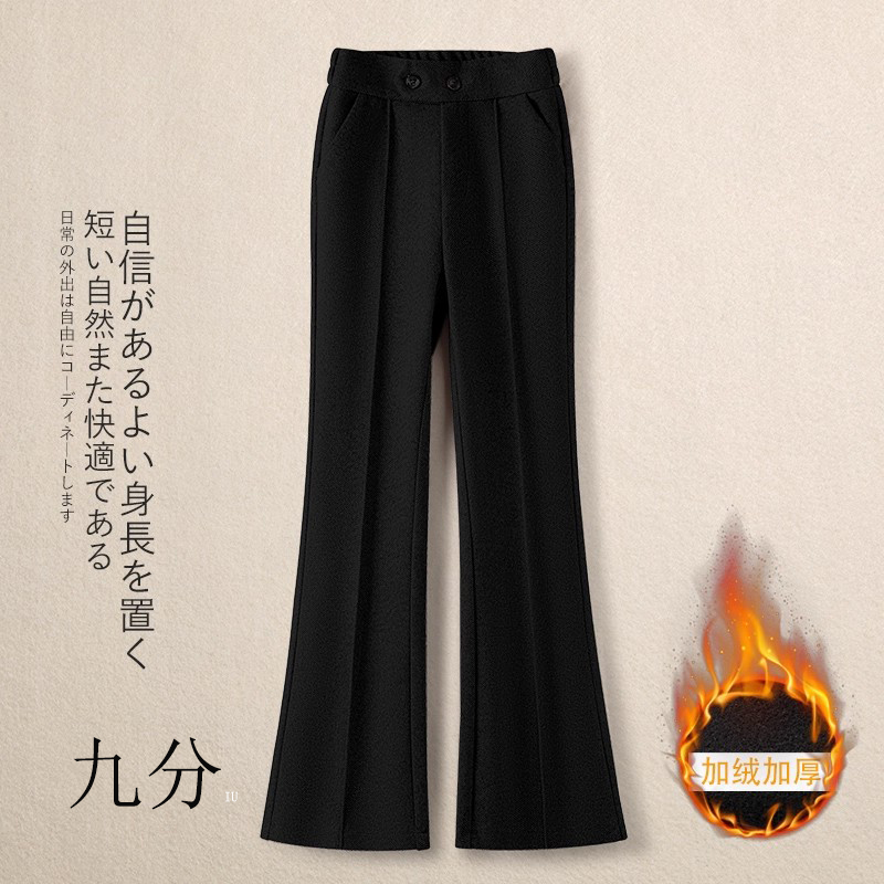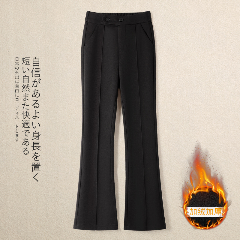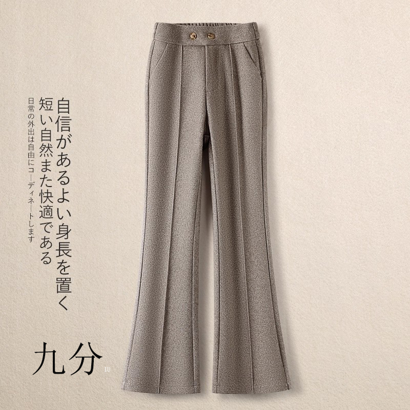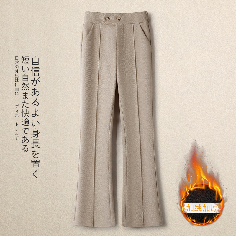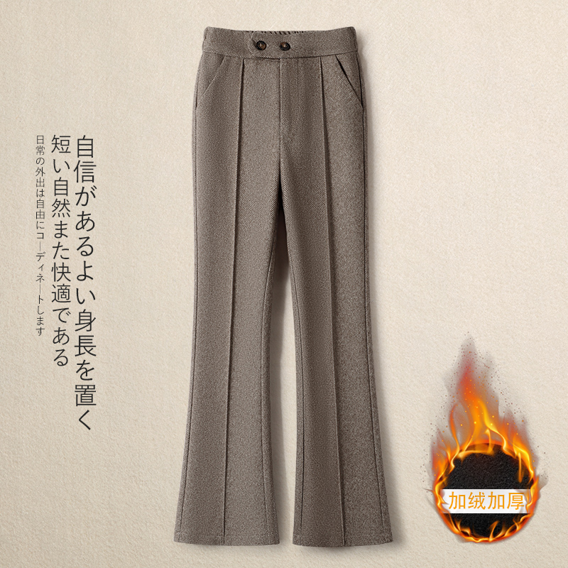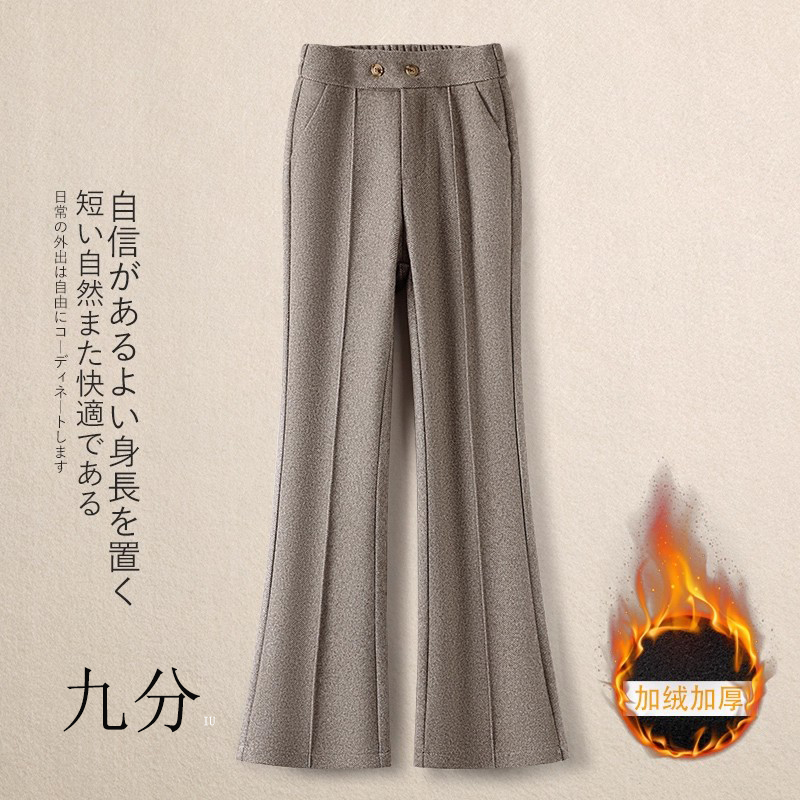 加绒松紧腰微喇裤毛呢裤女秋冬2025新款加厚马蹄裤显瘦修身喇叭裤