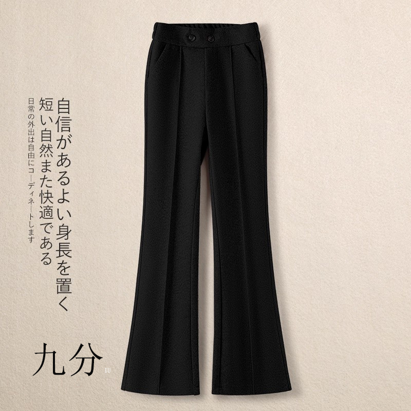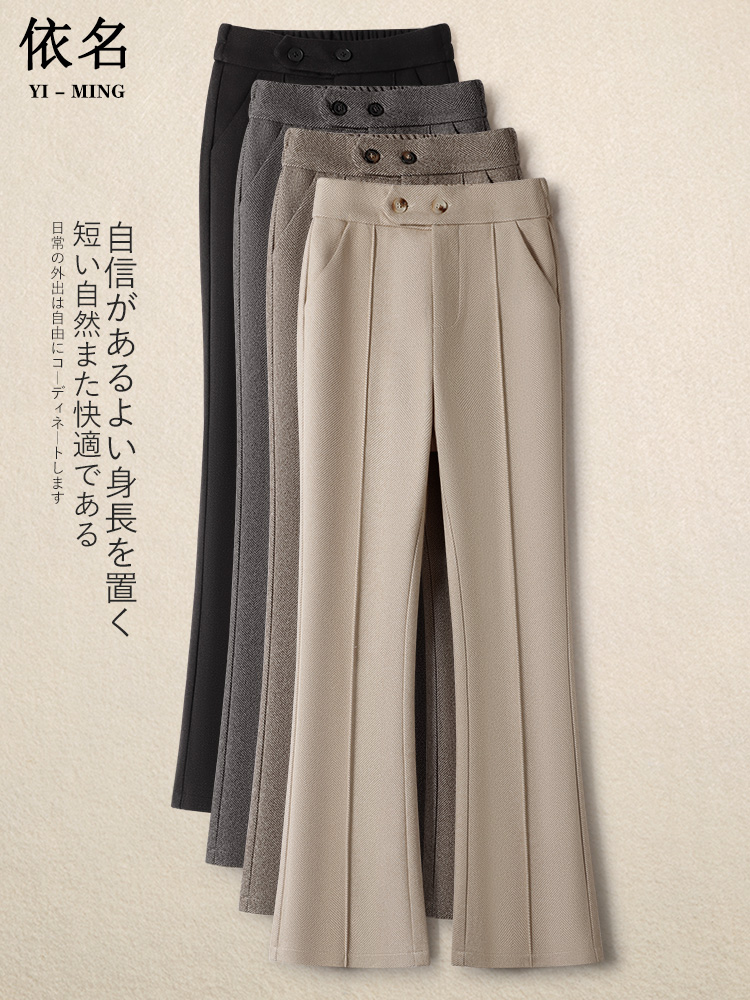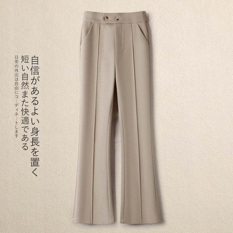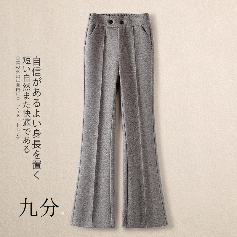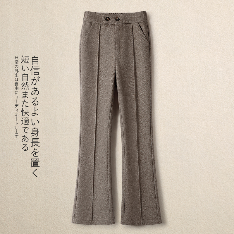 加绒松紧腰微喇裤毛呢裤女秋冬2025新款加厚马蹄裤显瘦修身喇叭裤