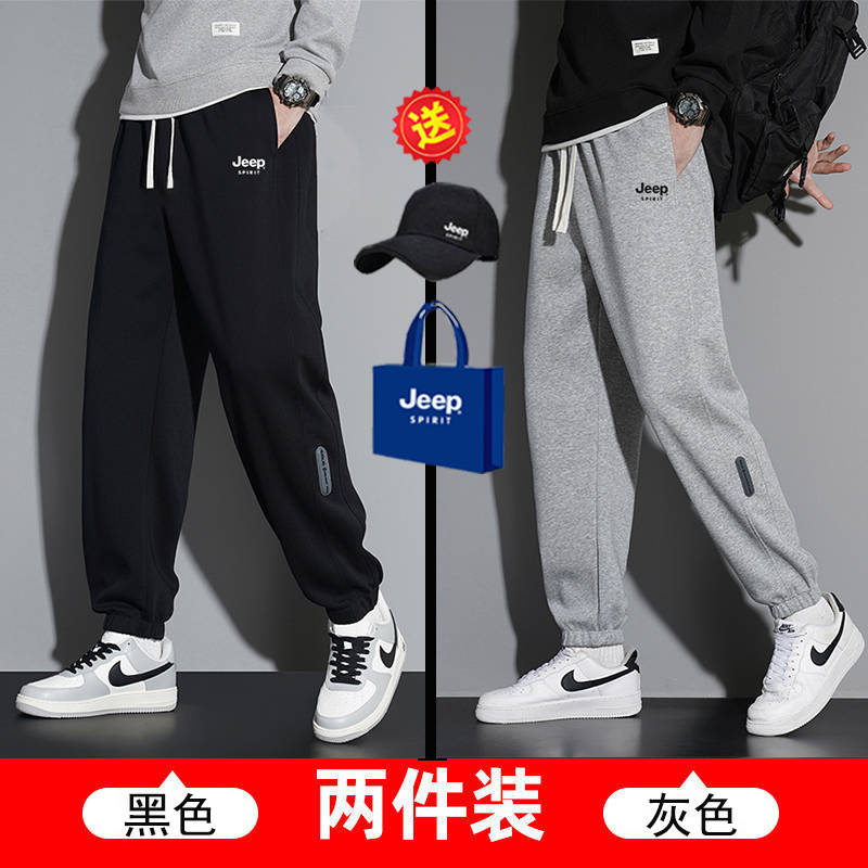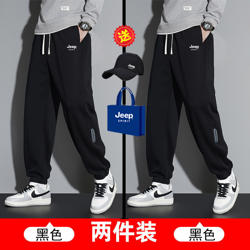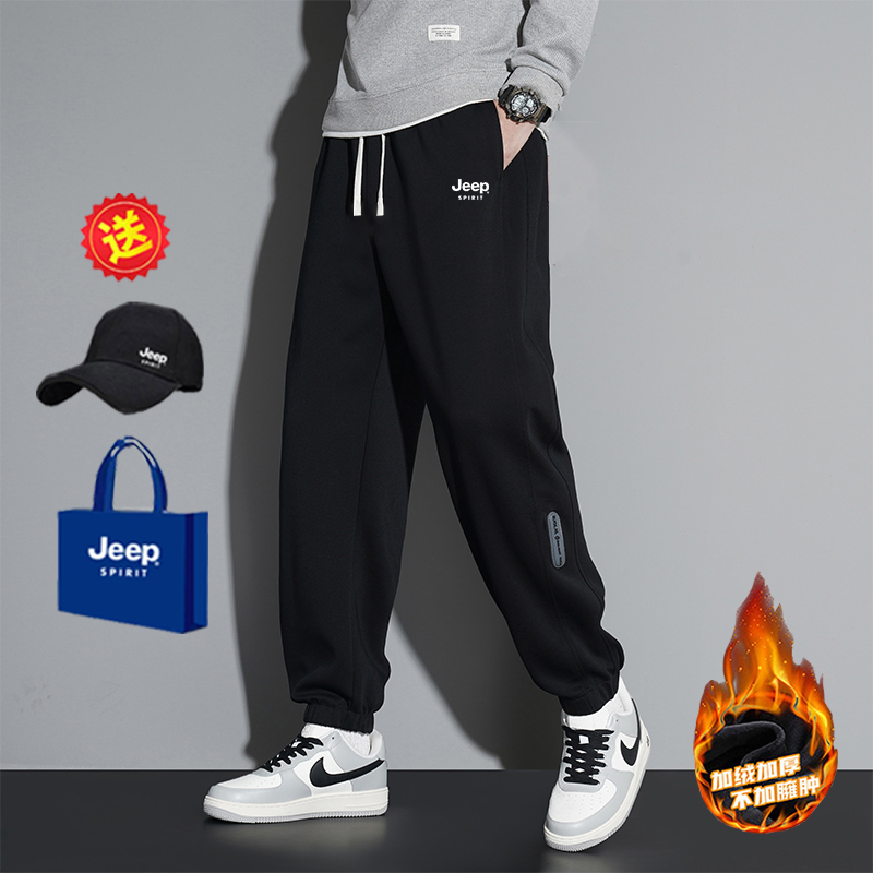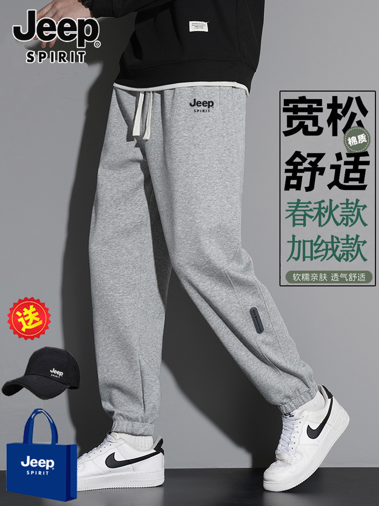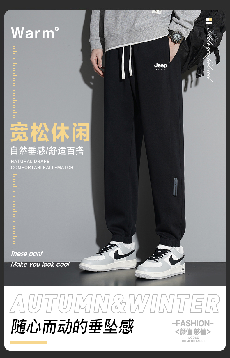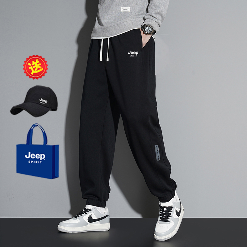 Jeep吉普秋冬男士运动裤宽松休闲裤子2025新款时尚束脚卫裤男长裤
