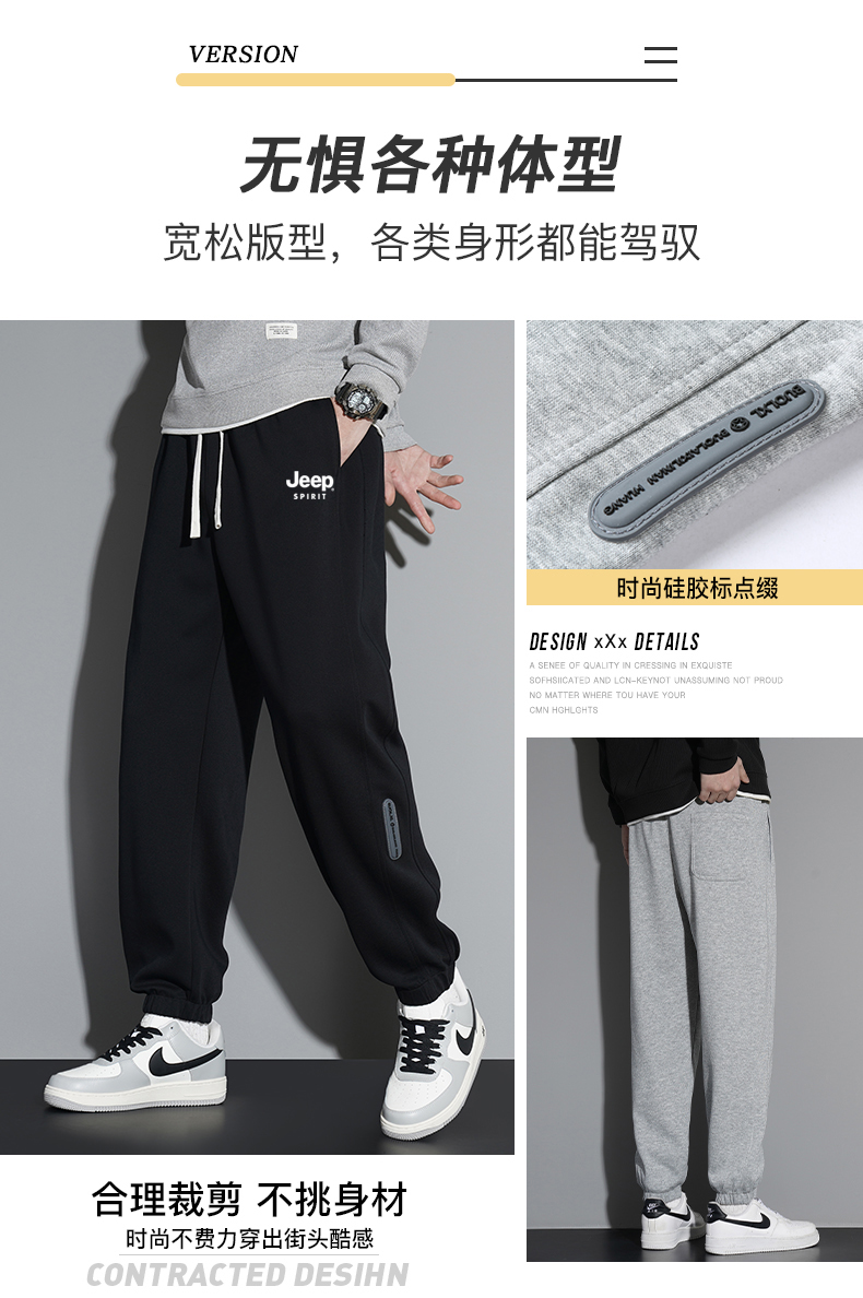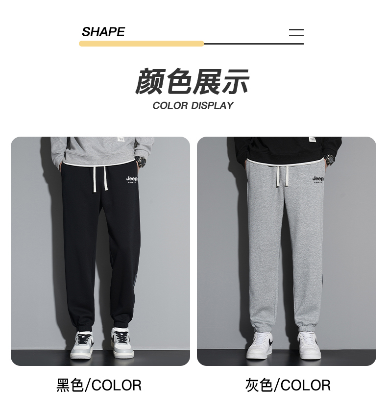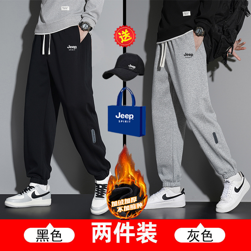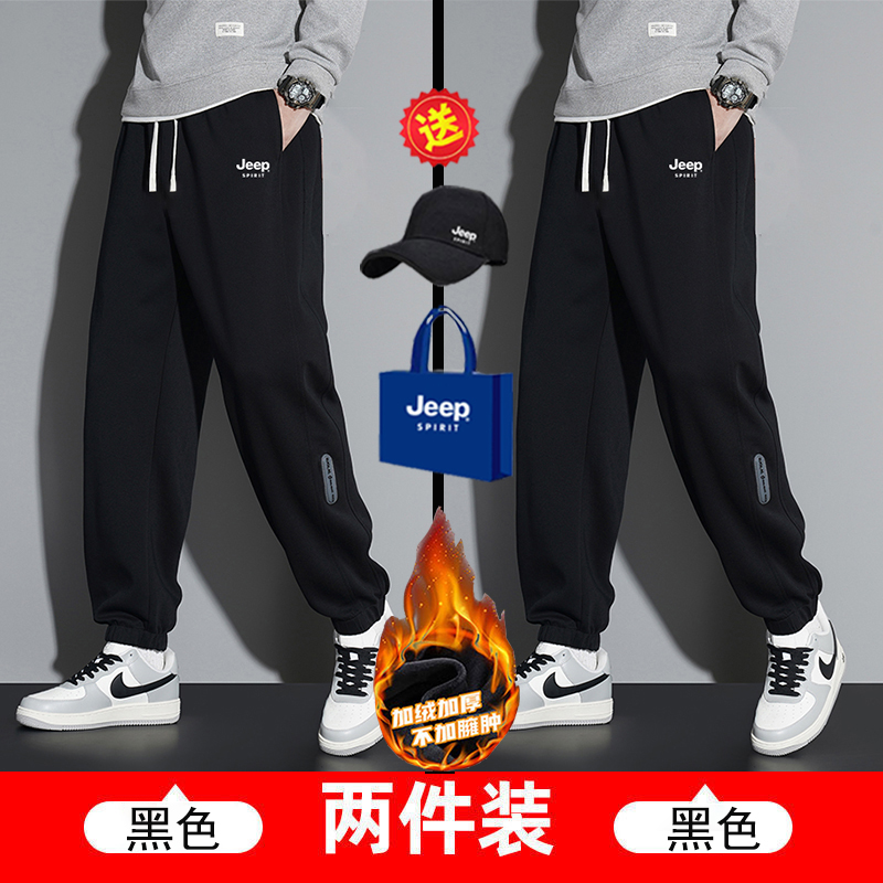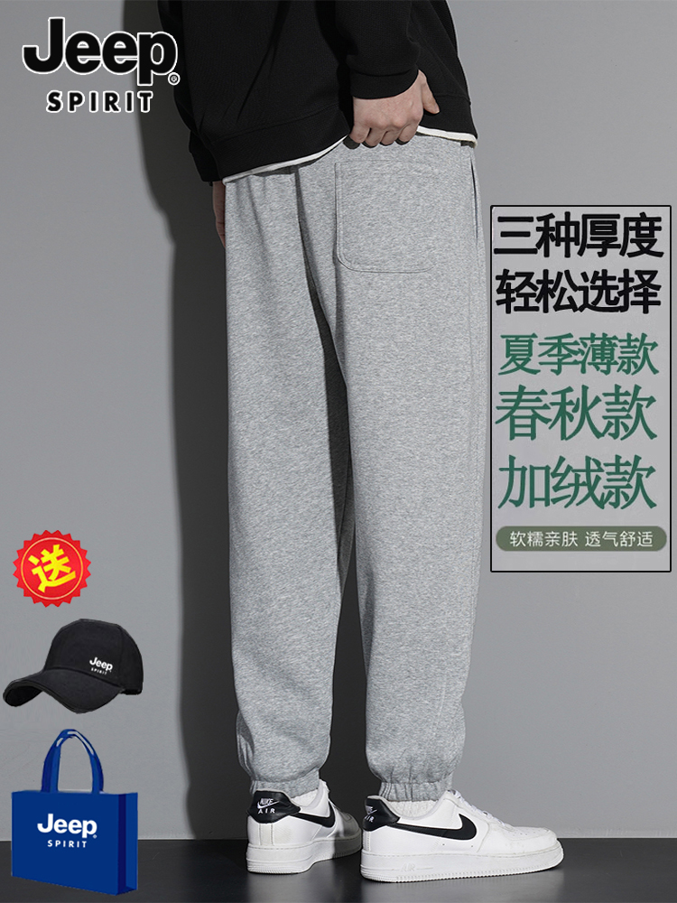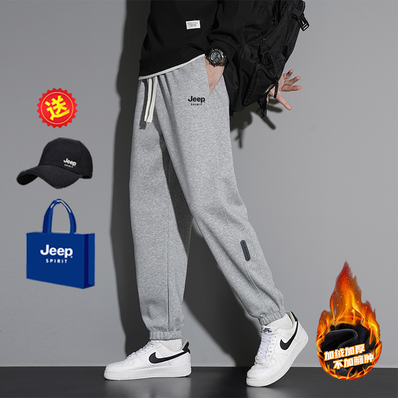 Jeep吉普秋冬男士运动裤宽松休闲裤子2025新款时尚束脚卫裤男长裤