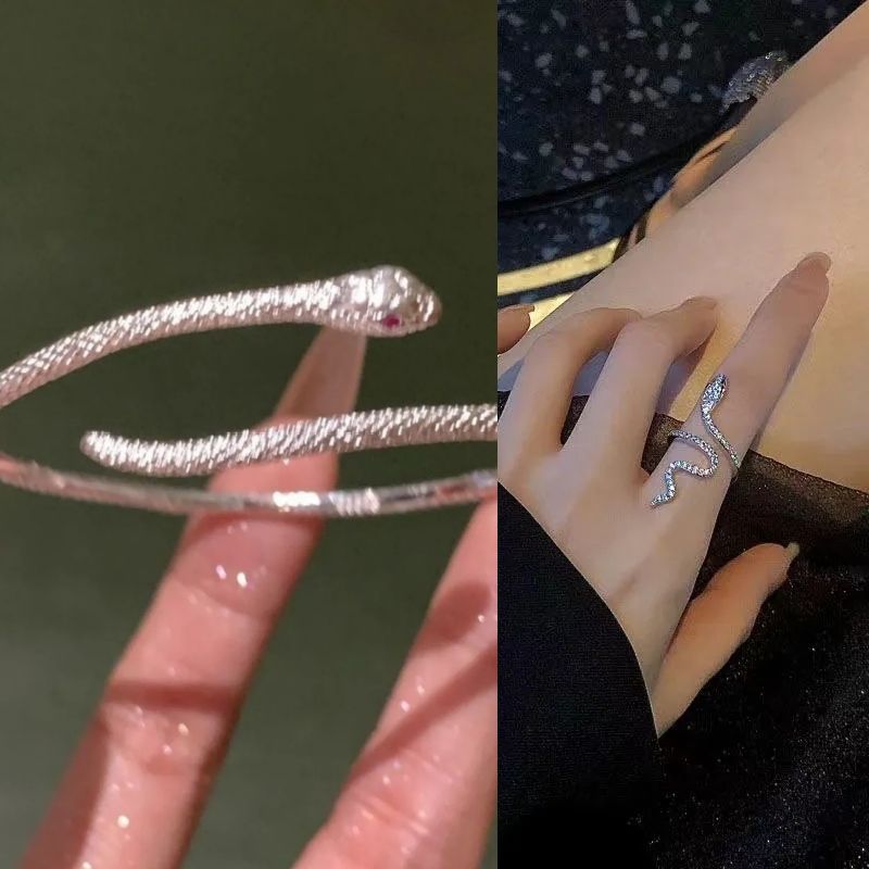 开口蛇形戒指女小众设计轻奢高级感2025新款学生党夸张手镯配饰品