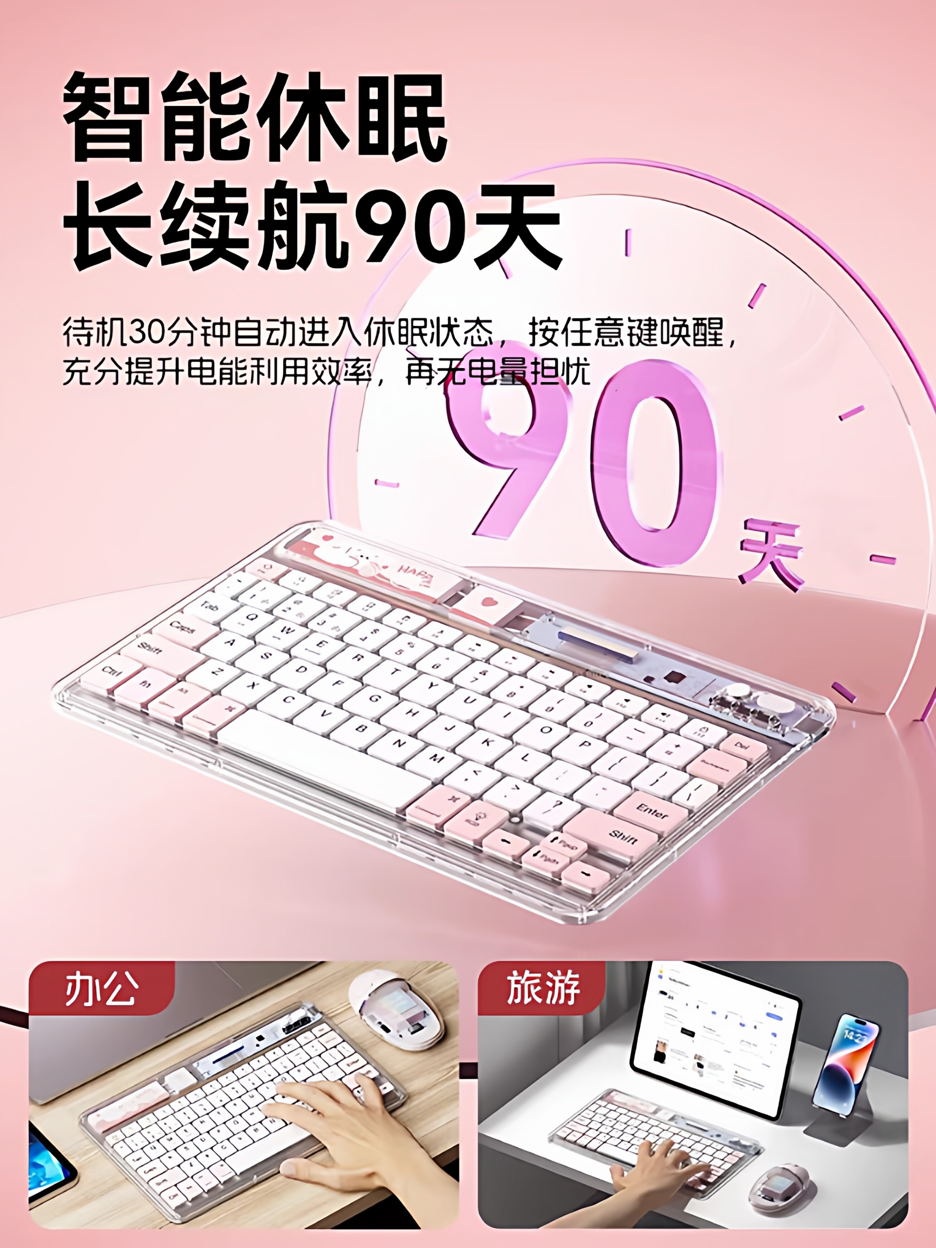 科技鱼无线ipad蓝牙键盘冰晶透明轻薄可充电适用于苹果华为联想安卓手机平板电脑静音办公多设备系统鼠标套装