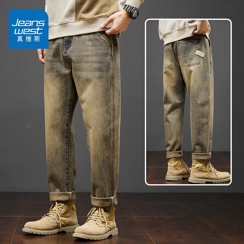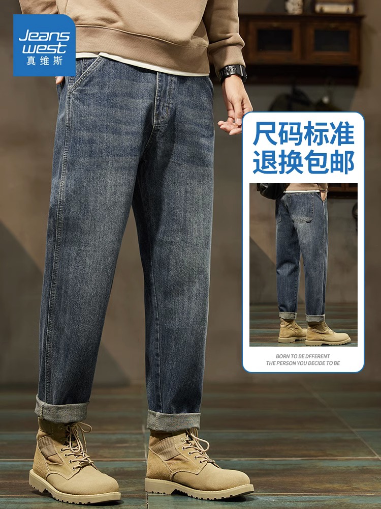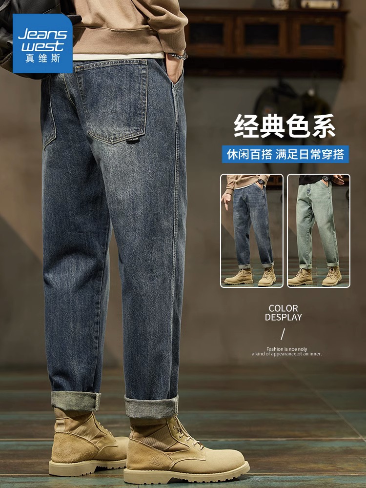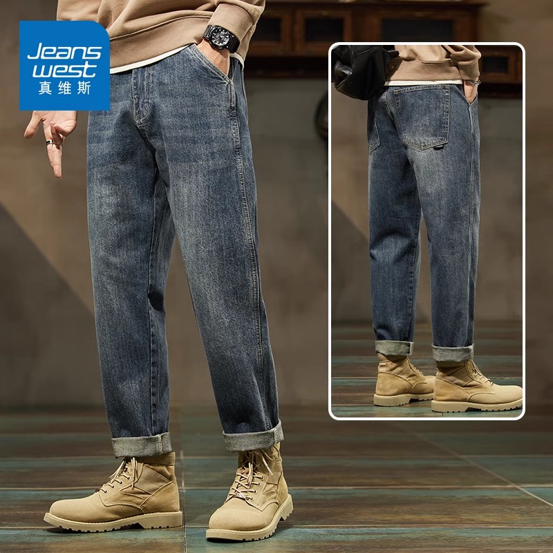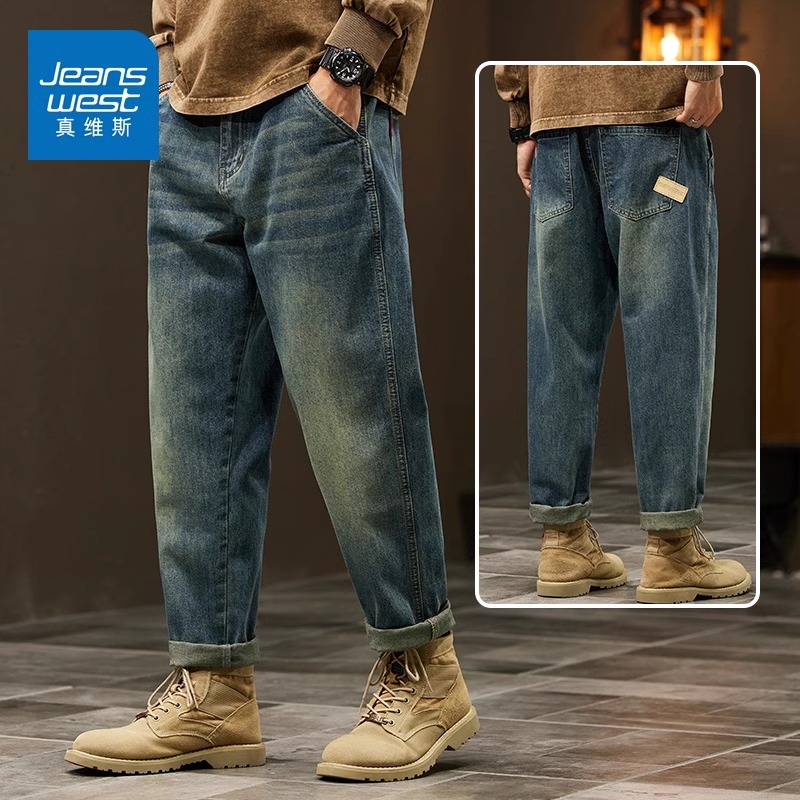 真维斯牛仔裤男2025秋冬新款潮流美式复古宽松直筒百搭休闲长裤子