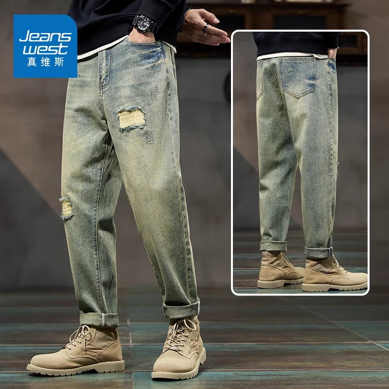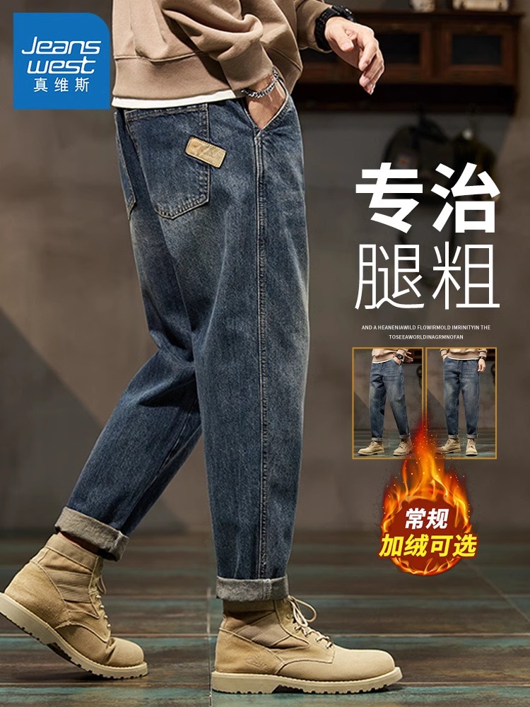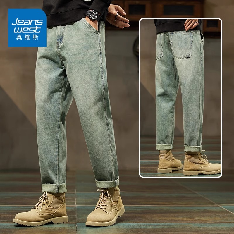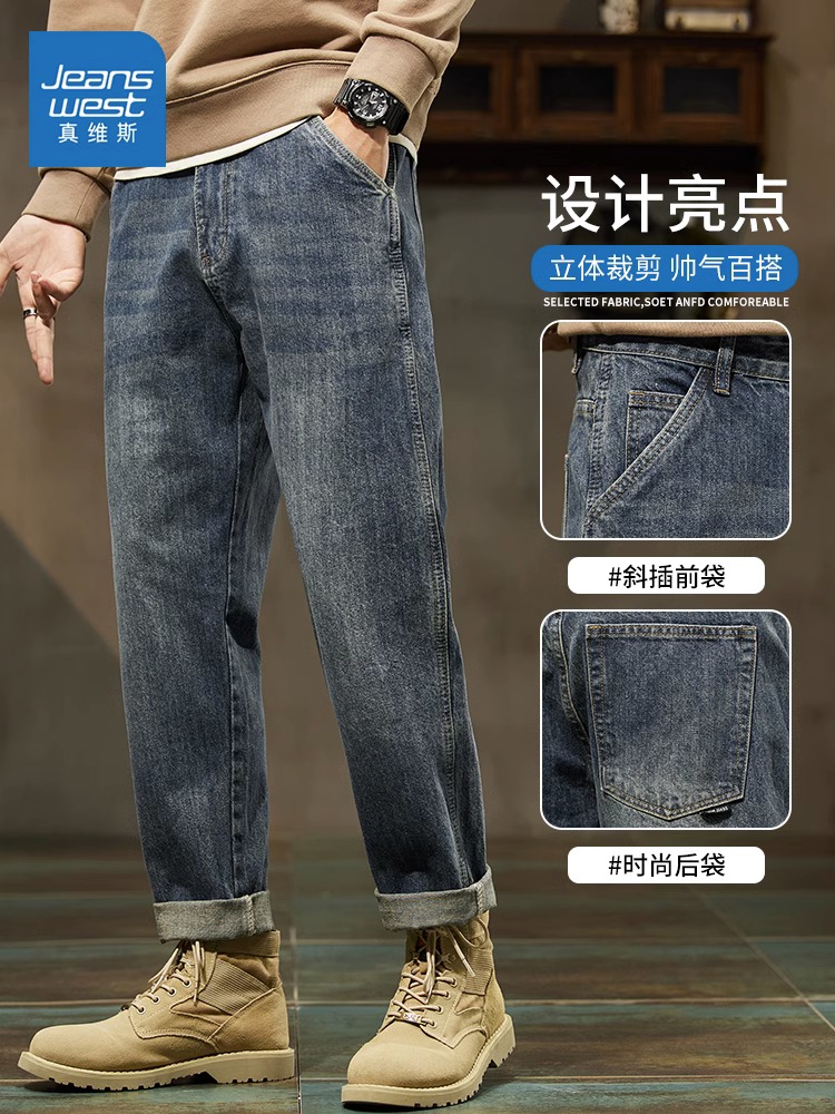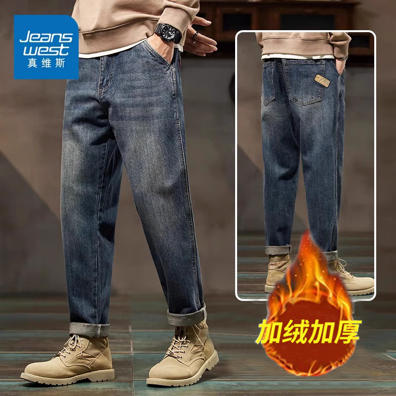 真维斯牛仔裤男2025秋冬新款潮流美式复古宽松直筒百搭休闲长裤子
