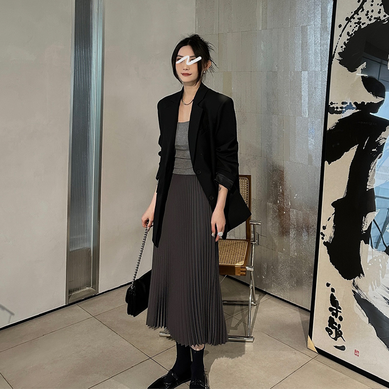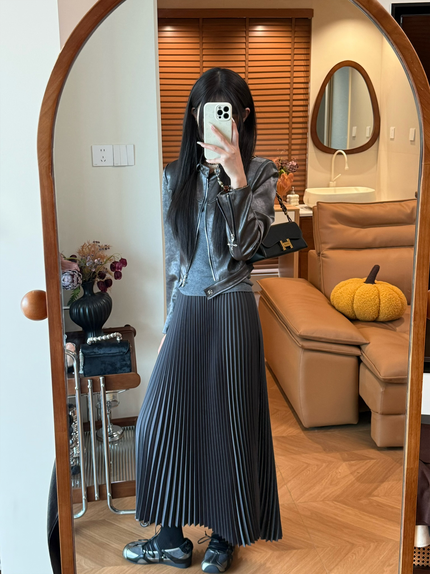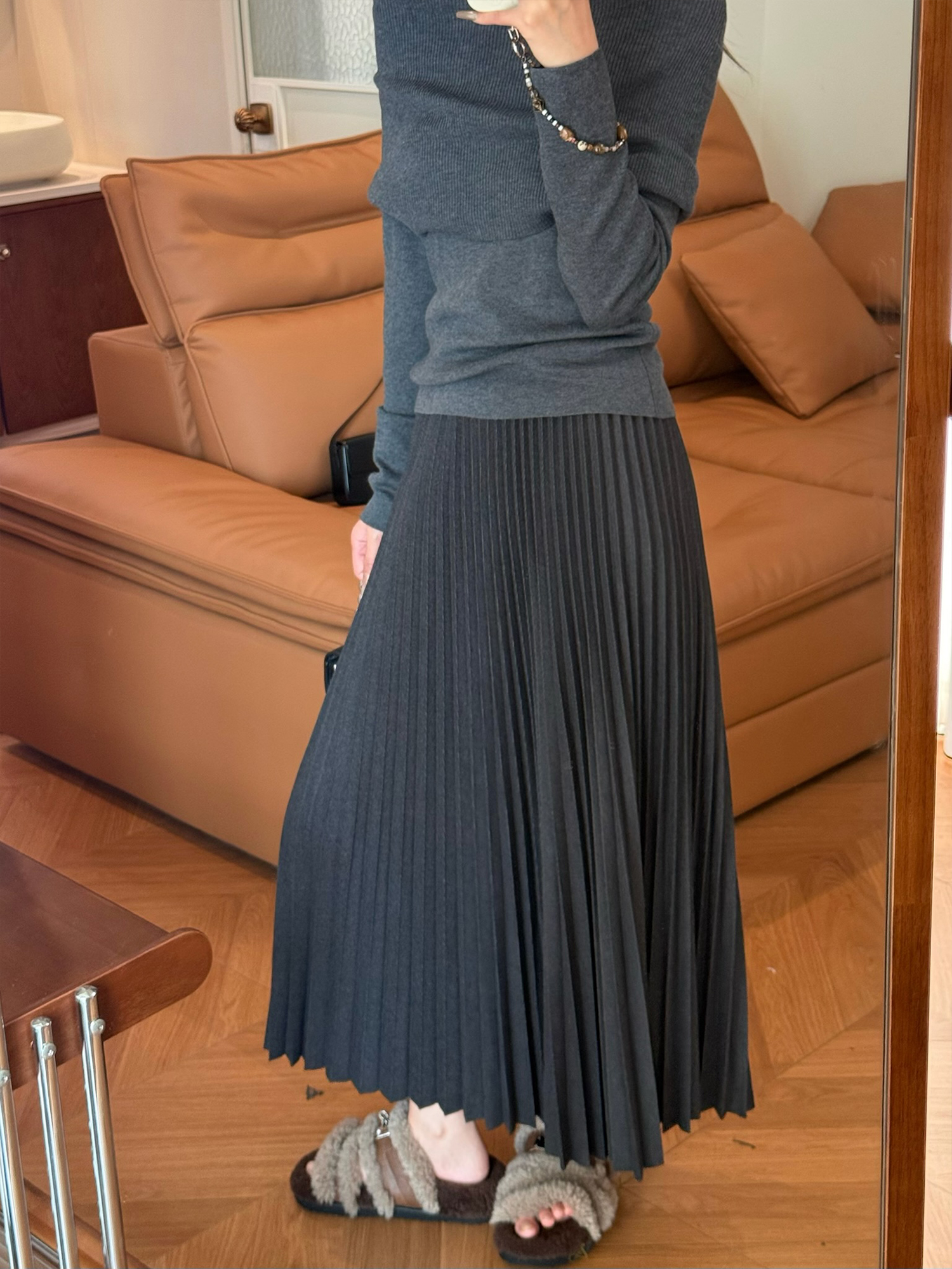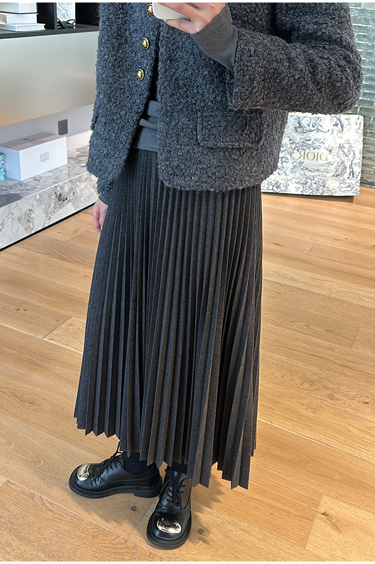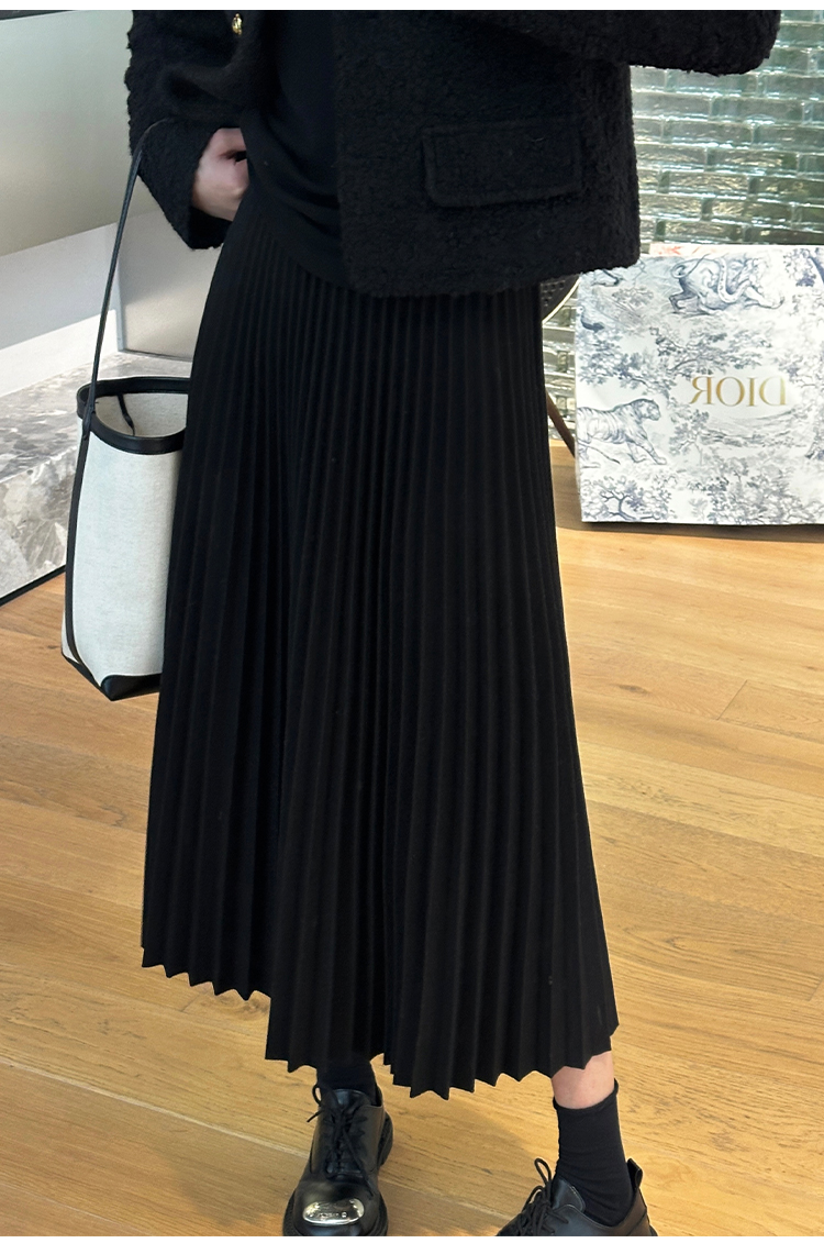 2025秋冬新款百褶裙半身裙女气质通勤百搭高腰小个子a字中长裙子