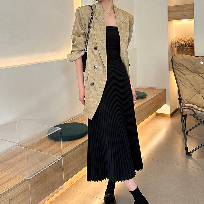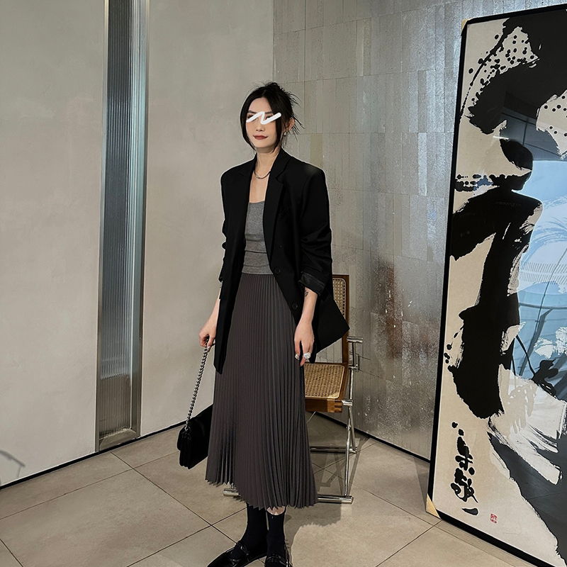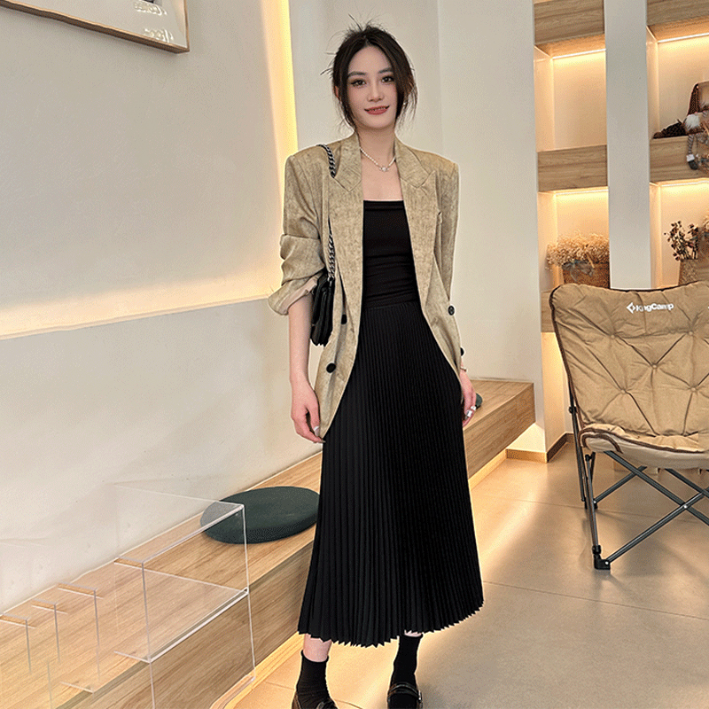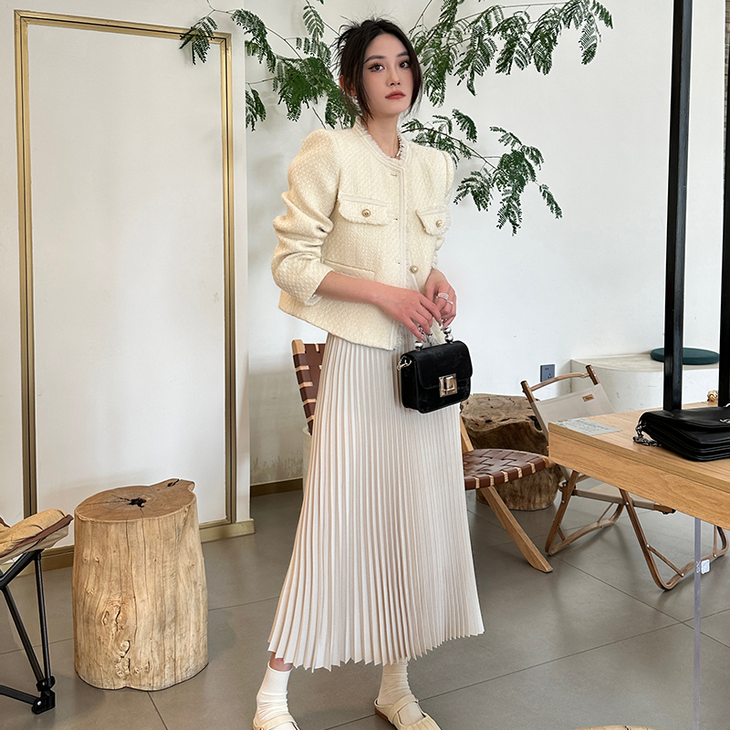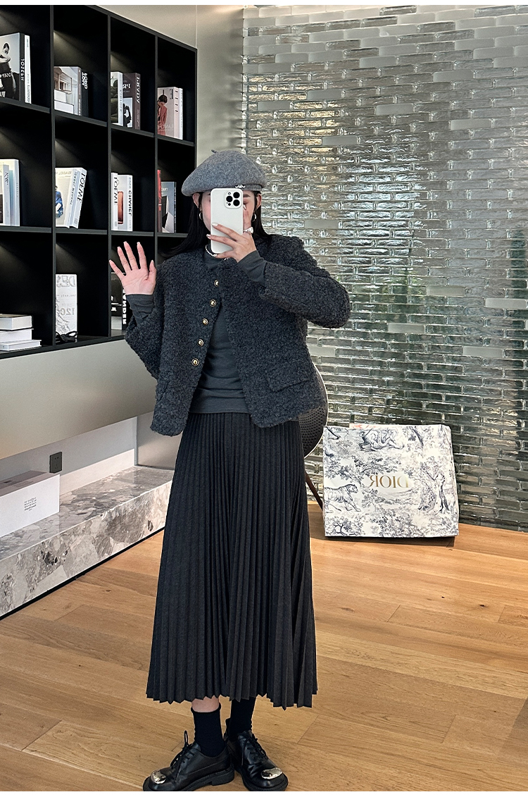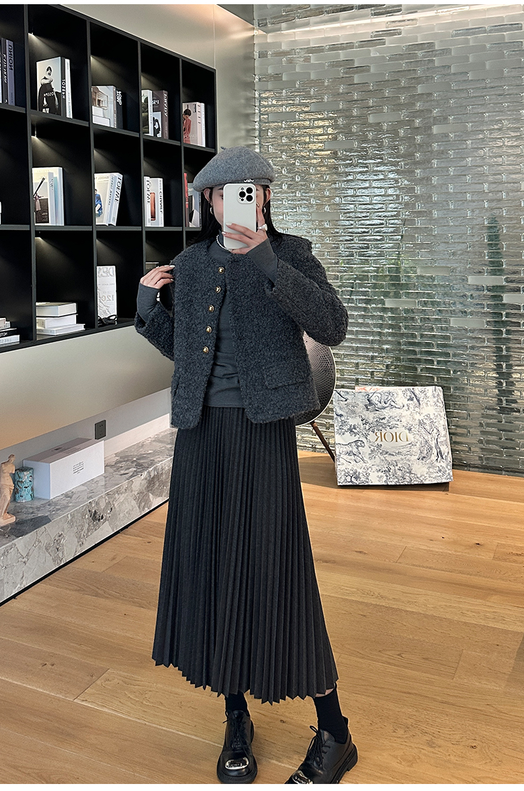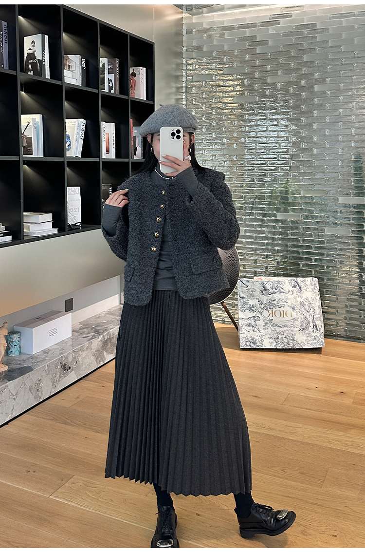 2025秋冬新款百褶裙半身裙女气质通勤百搭高腰小个子a字中长裙子