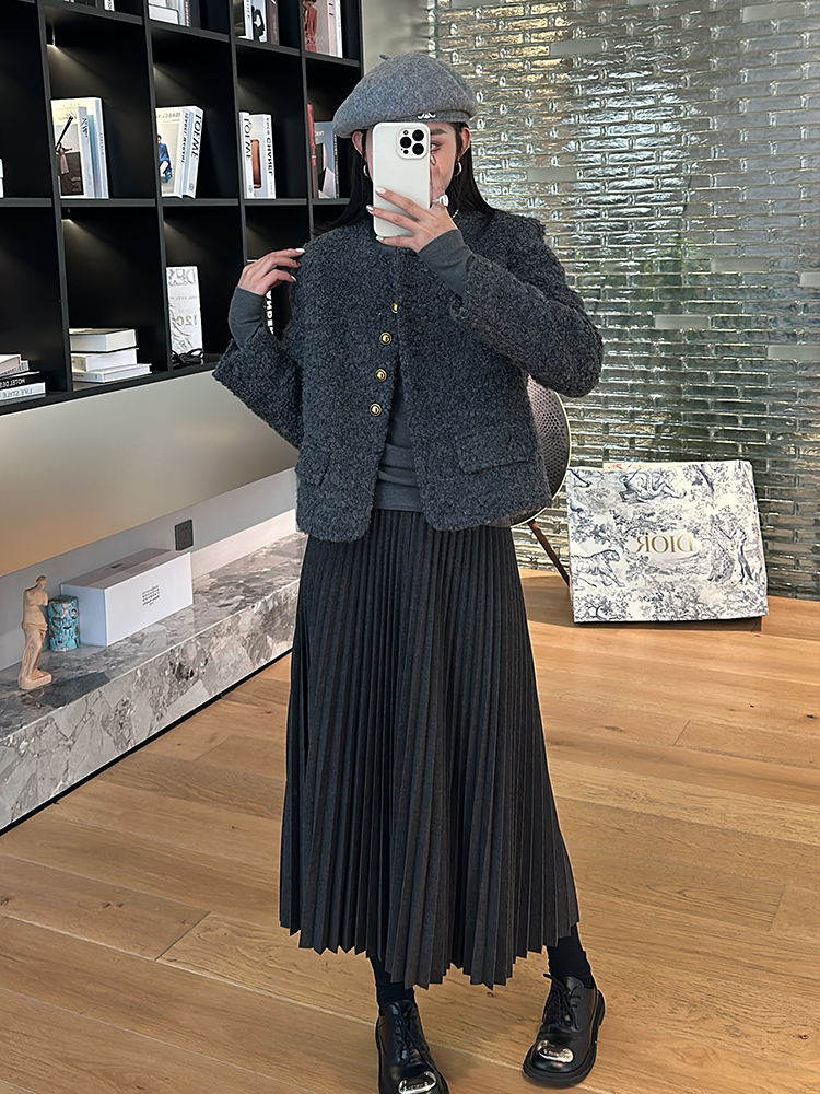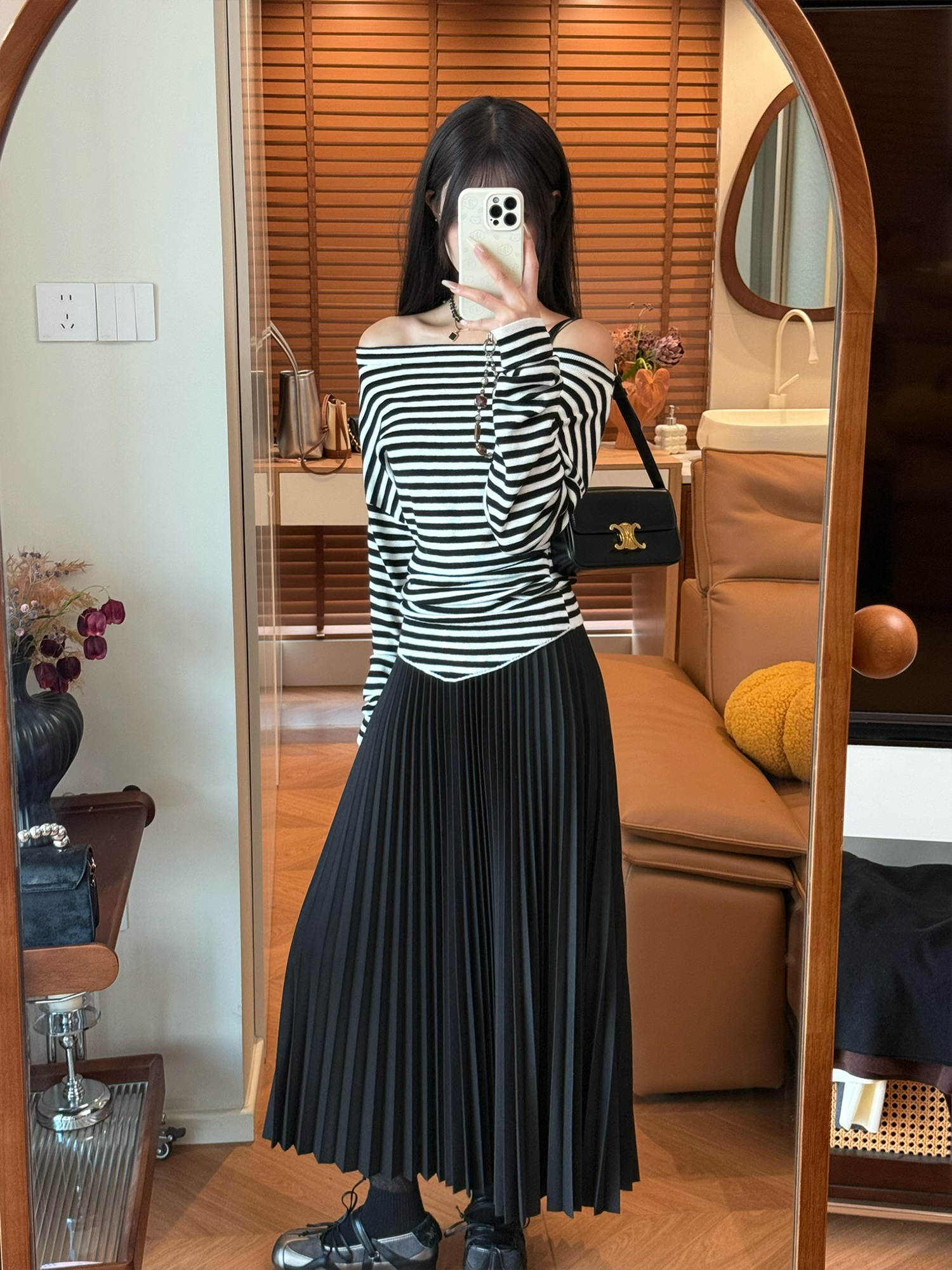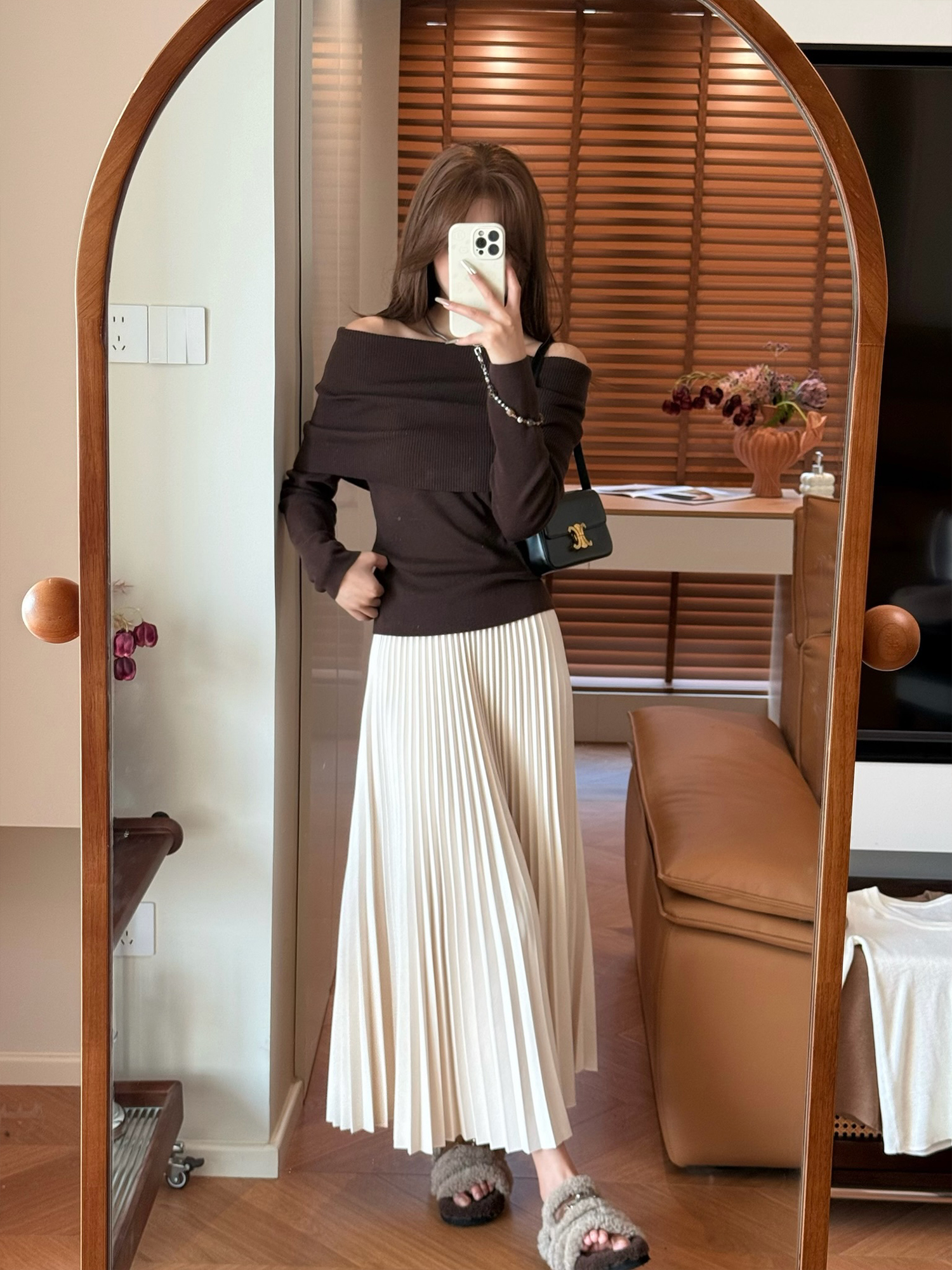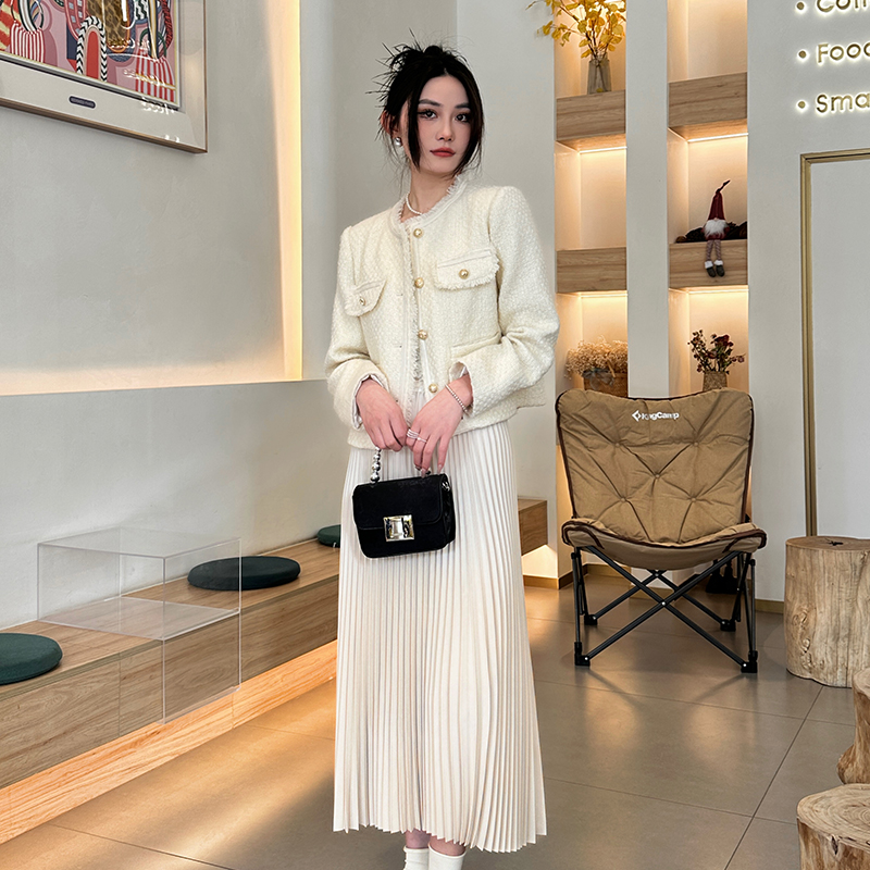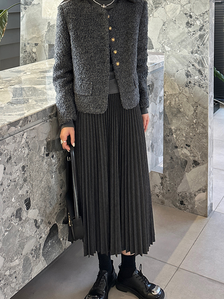 2025秋冬新款百褶裙半身裙女气质通勤百搭高腰小个子a字中长裙子