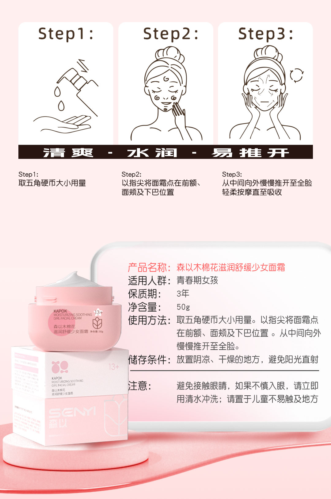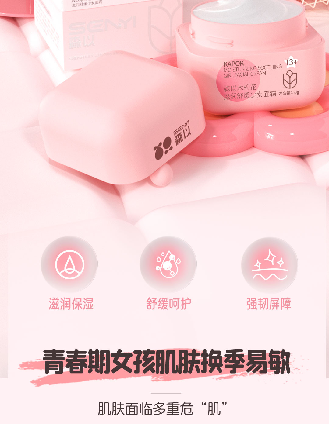 森以木棉花面霜乳液护肤品保湿舒缓青春期女孩初高中女学生护肤霜