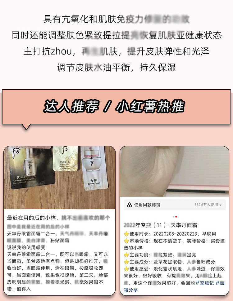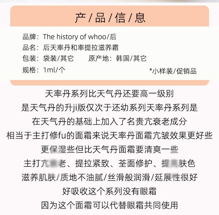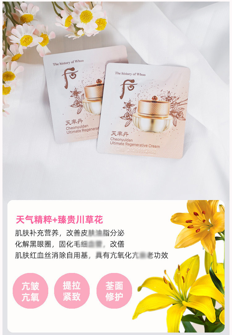正品 whoo后天率丹面霜眼霜小样二合一和率提拉滋养霜提拉紧致