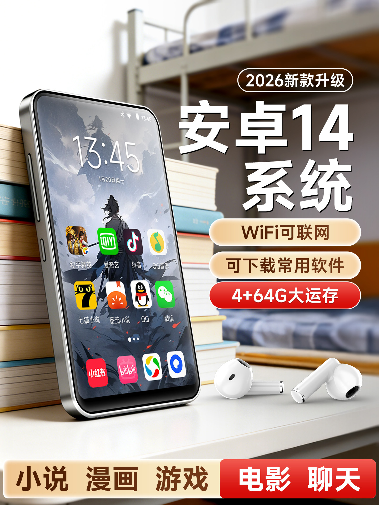 梵沐mp4wifi可上网看番茄小说阅读器漫画游戏听歌蓝牙专用播放器