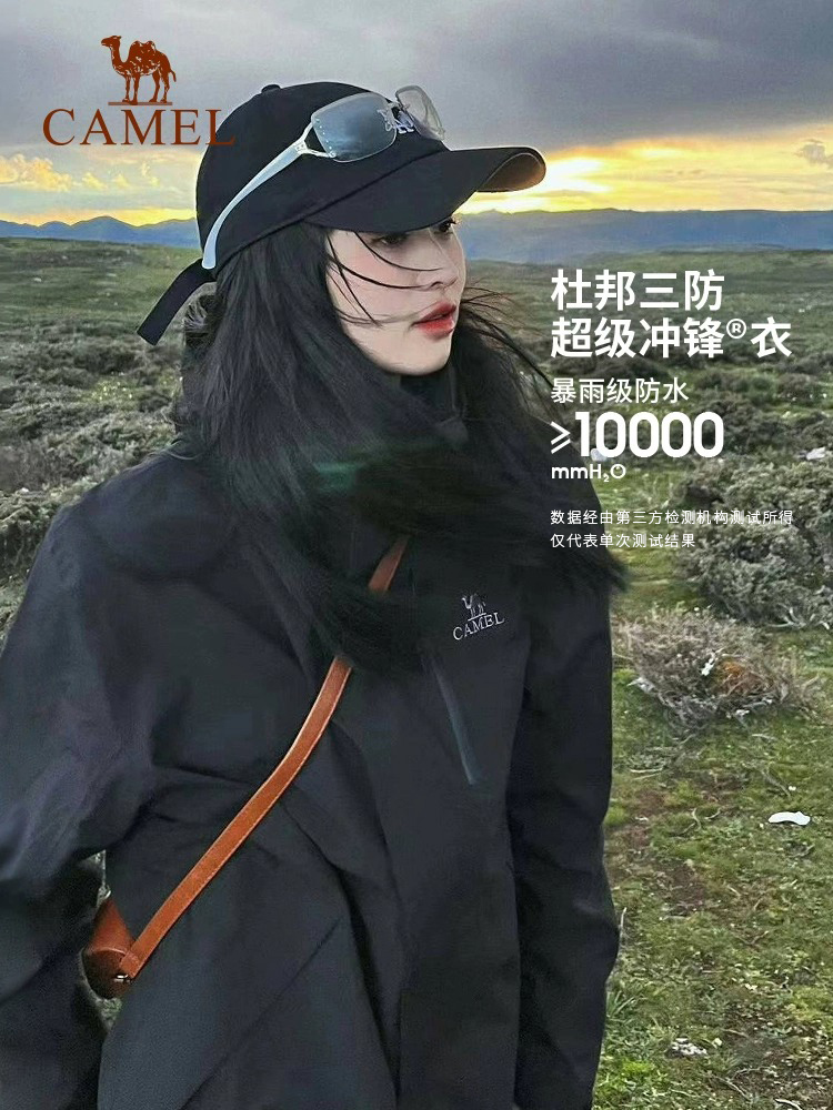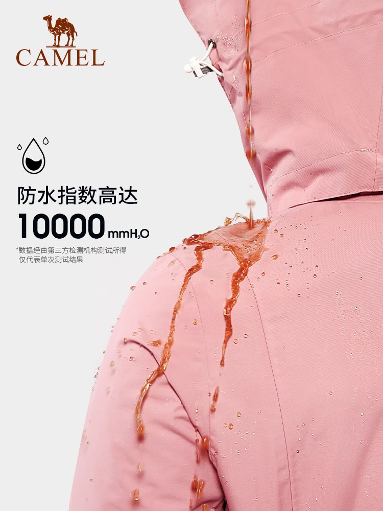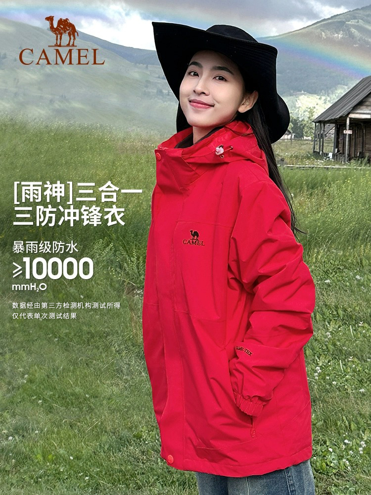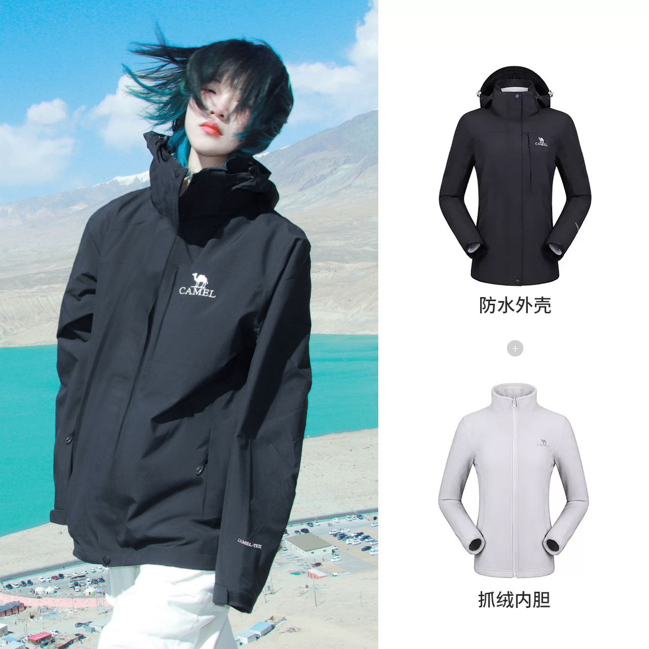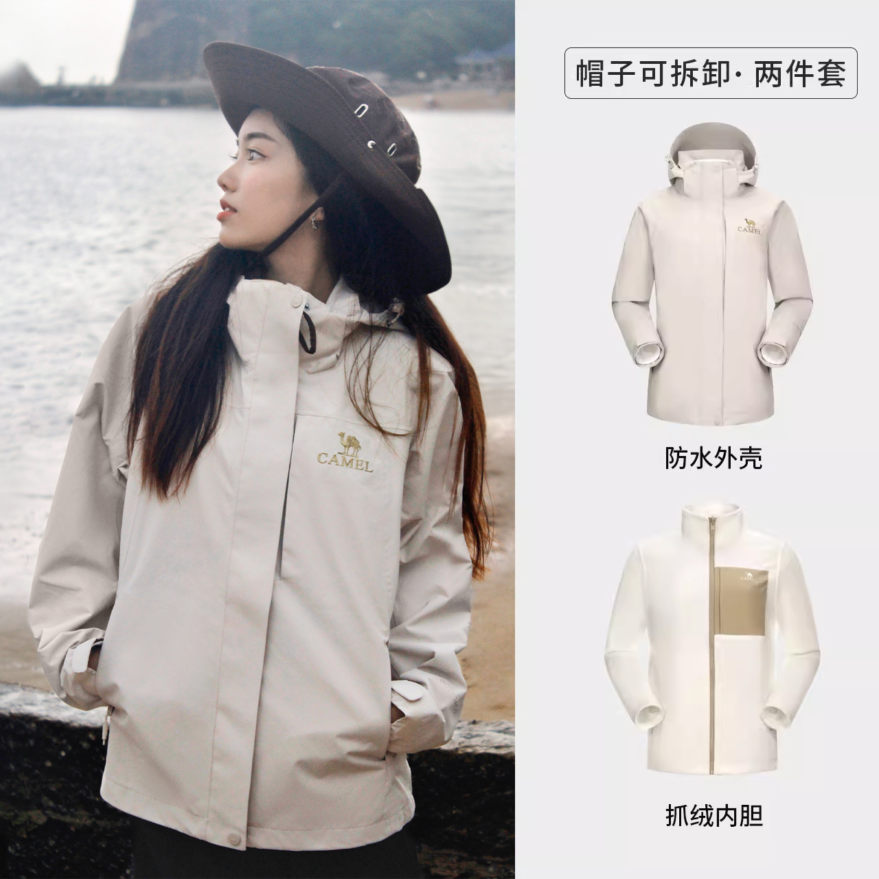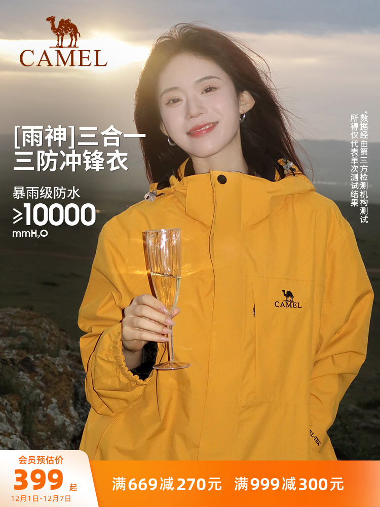 骆驼户外谷子黄色冲锋衣男女款三合一羽绒服三防防水登山服外套冬