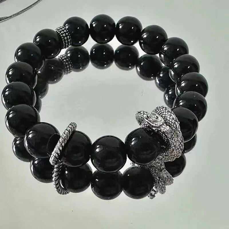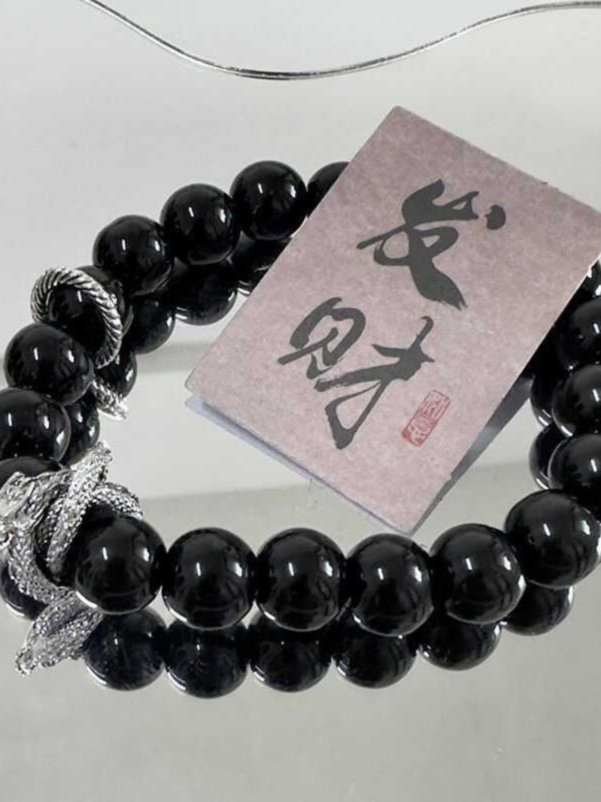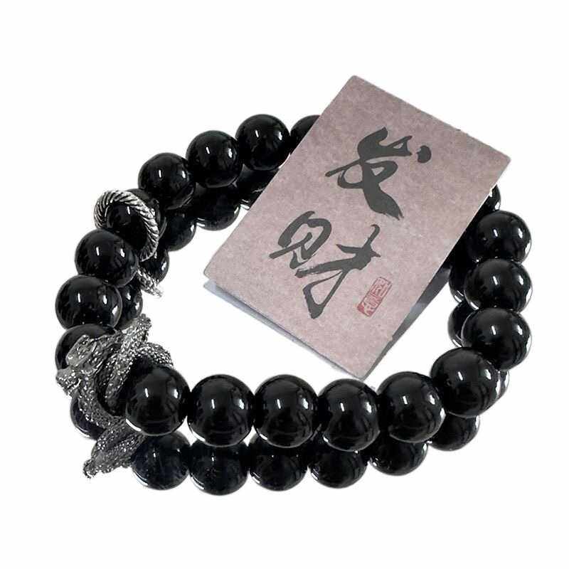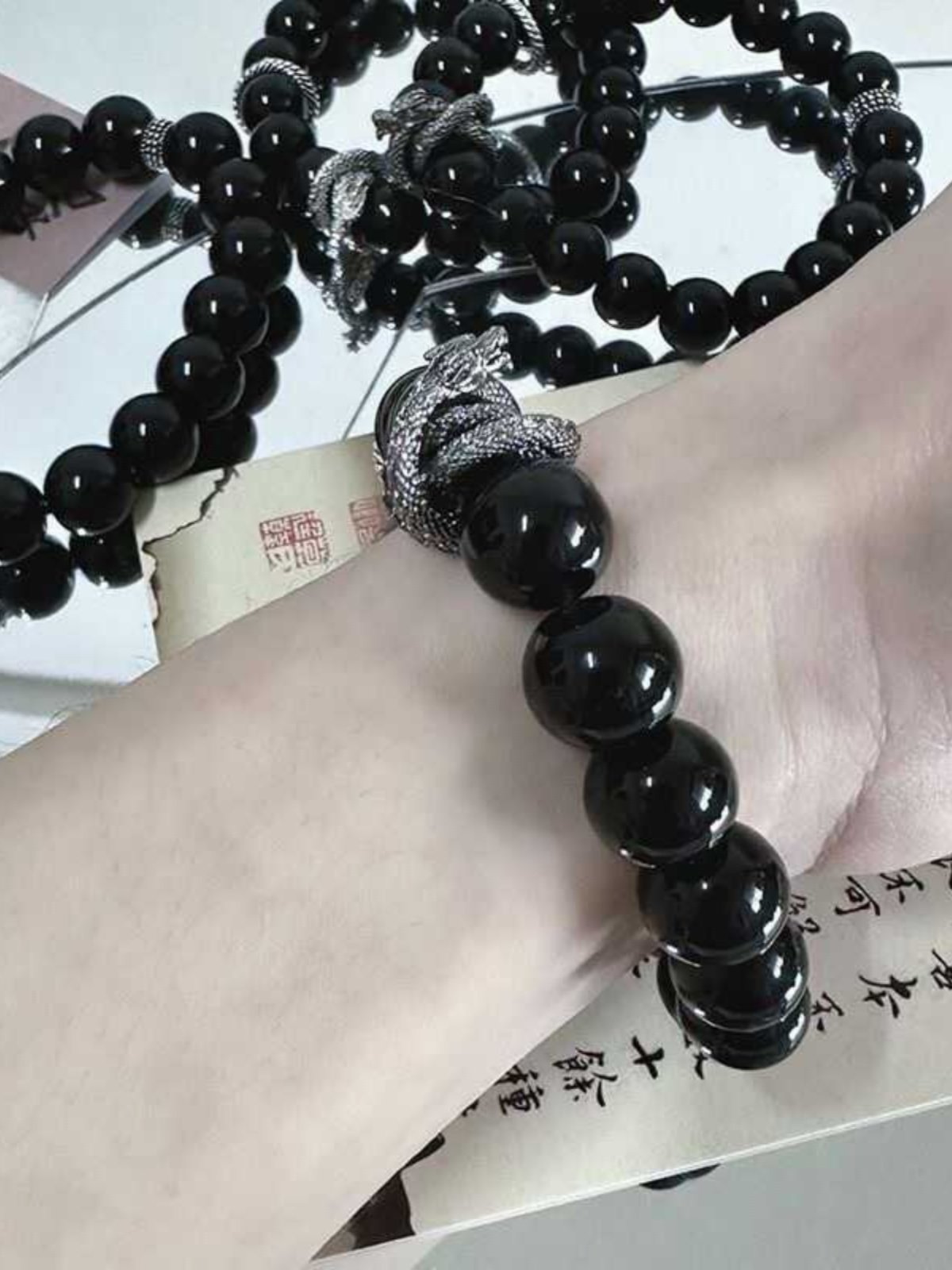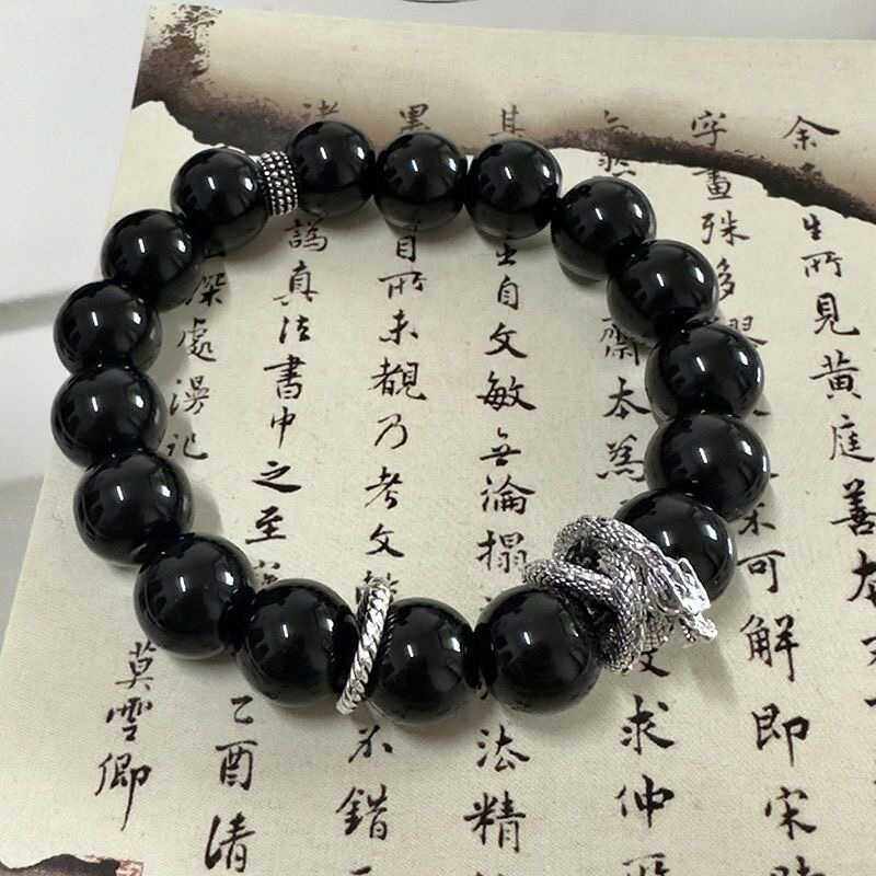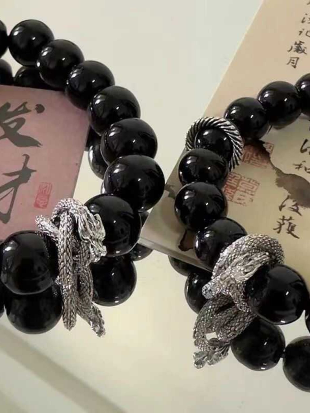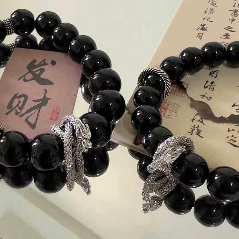 龙年小众新款不撞款个性盘龙中式国风招财设计手串黑珠手链男女款