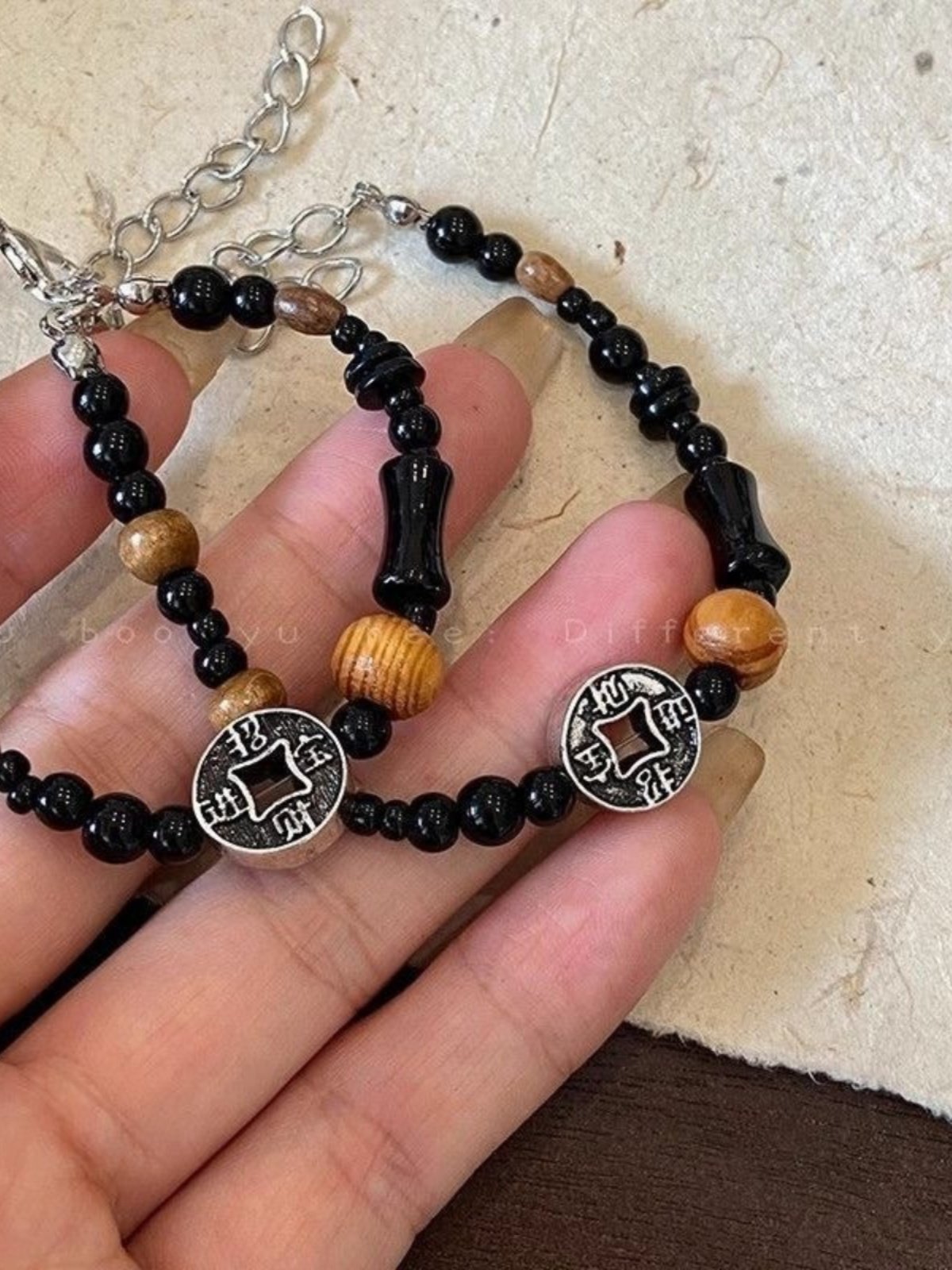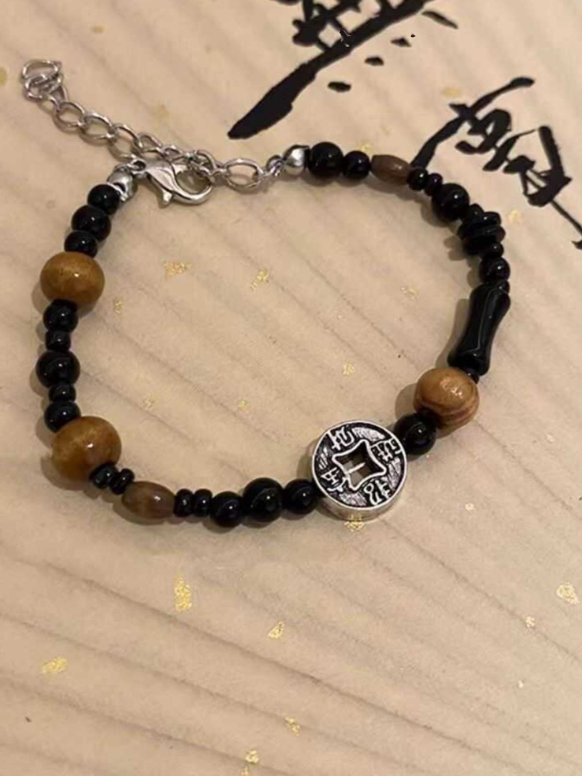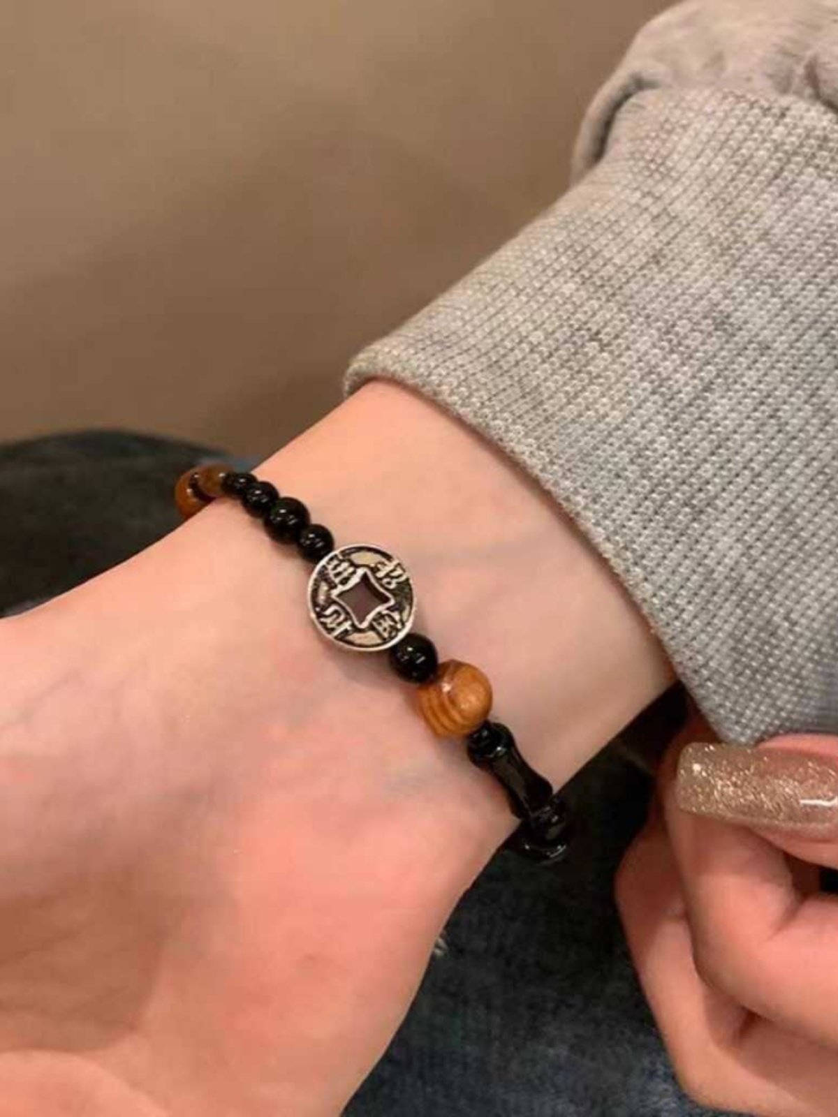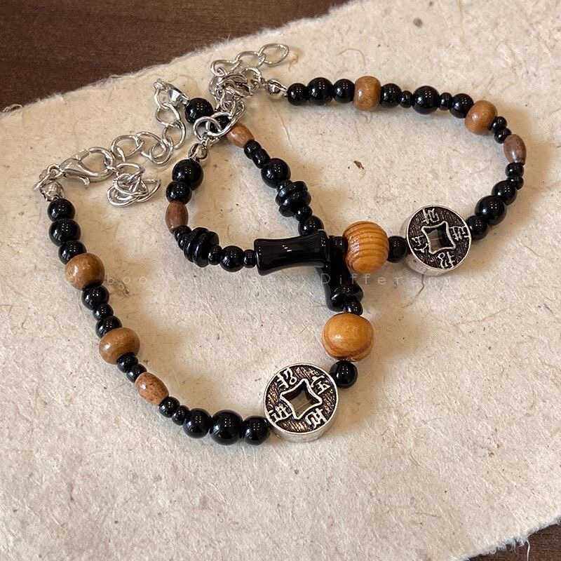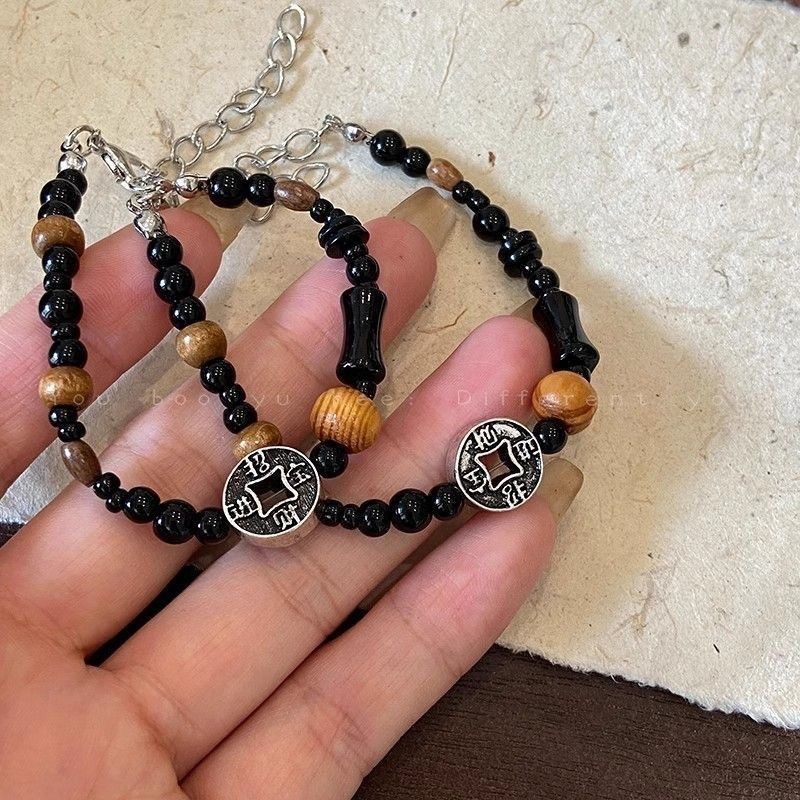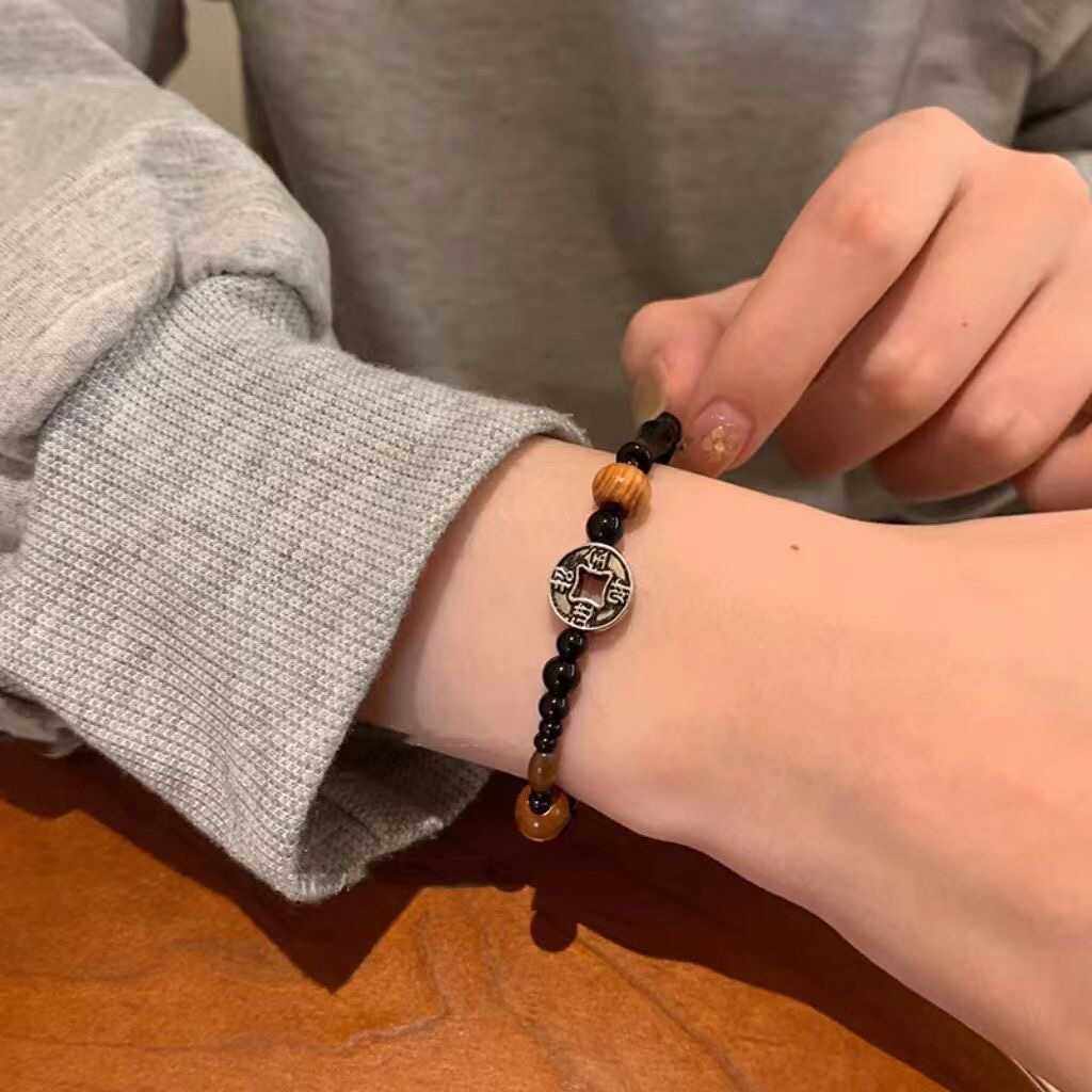 复古铜钱串珠手链女款新中式国潮ins小众设计感闺蜜情侣手饰