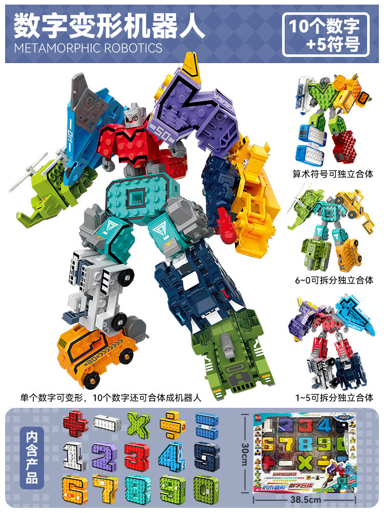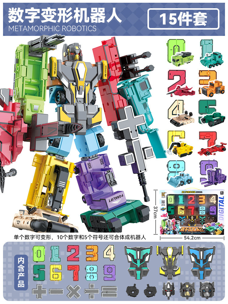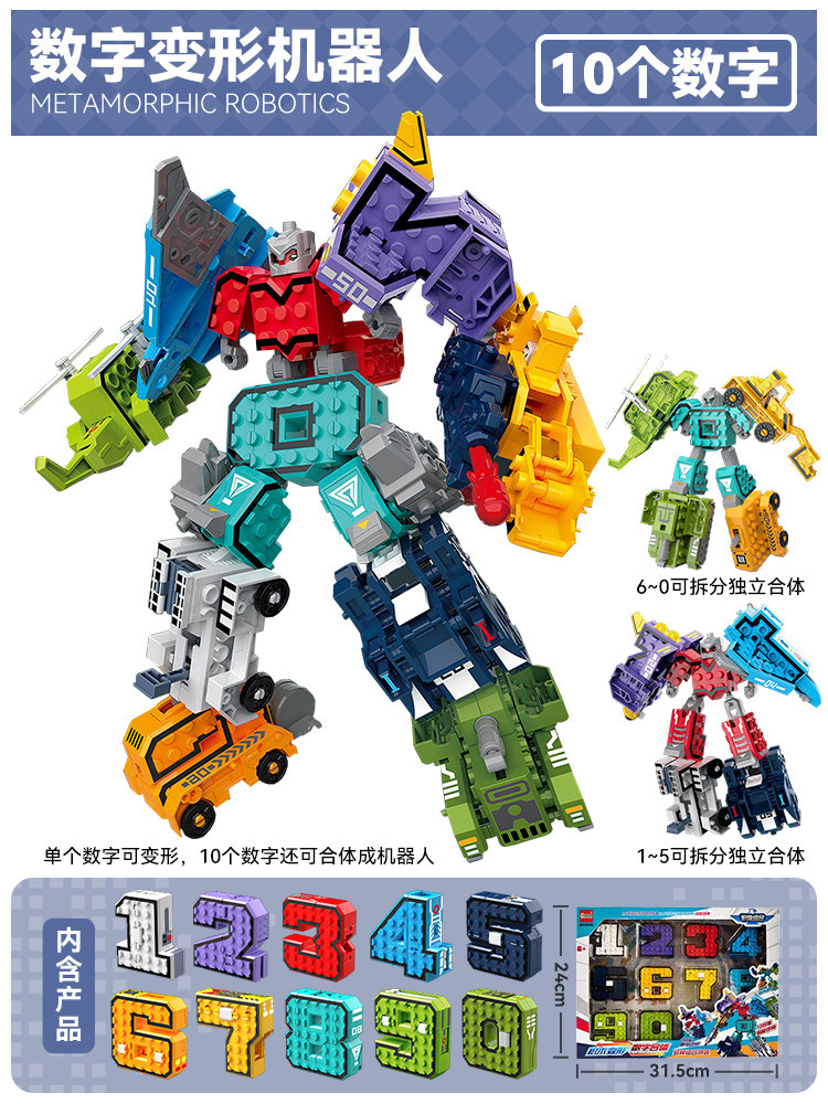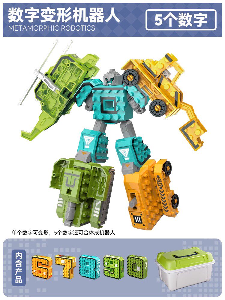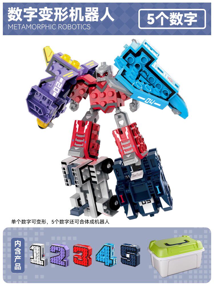 加大儿童数字变形男孩金刚益智拼装汽车玩具积木男童字母机器人