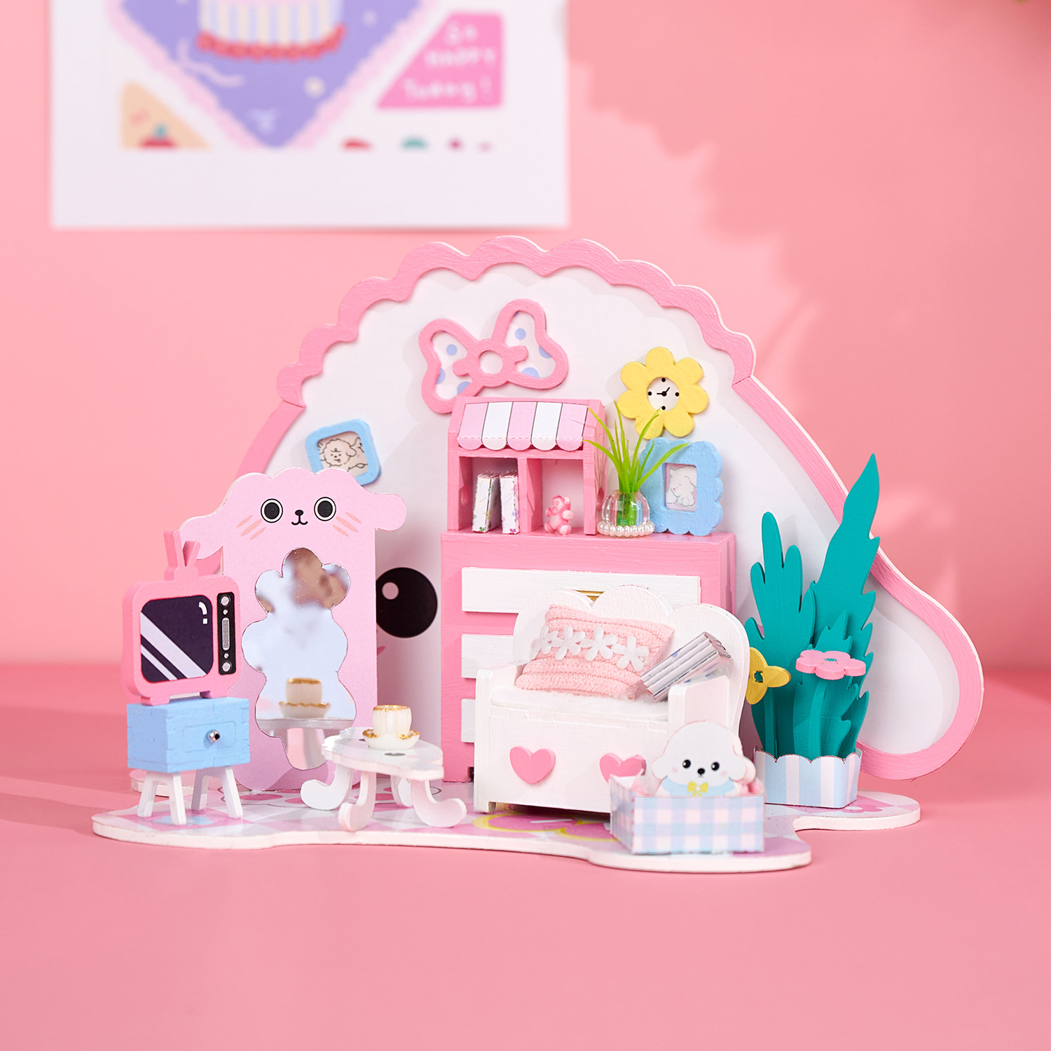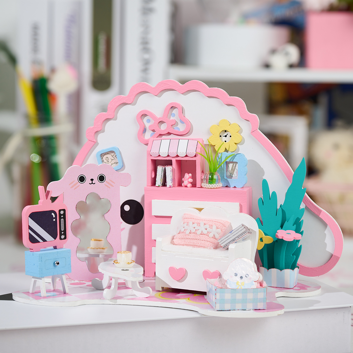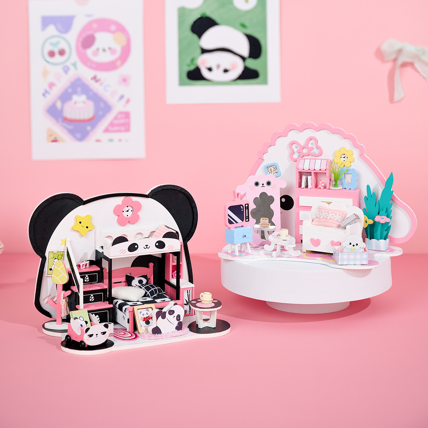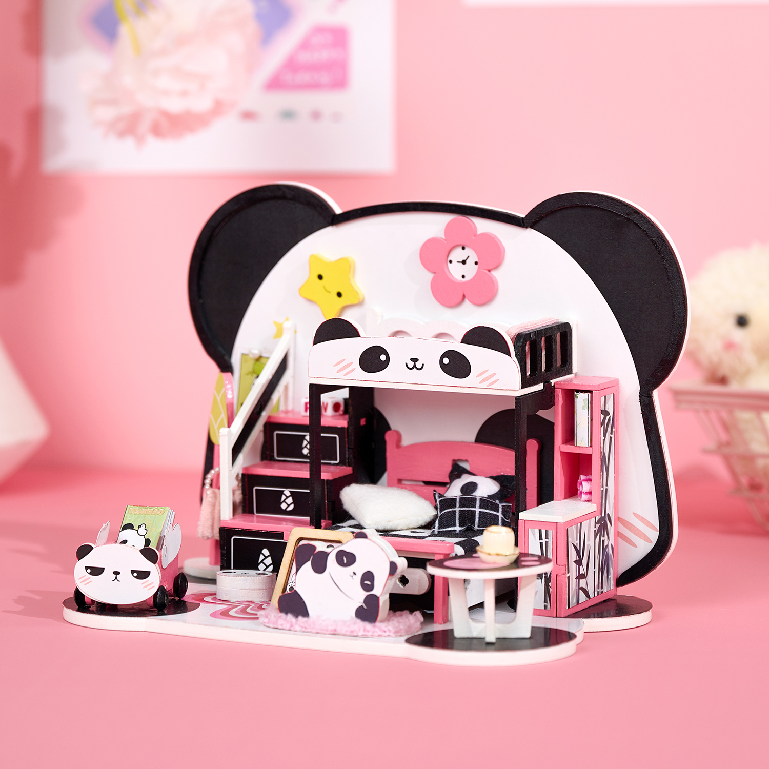 熊猫和狗狗小屋带家具亮灯小房子diy手工拼装有床玩具屋女孩礼物