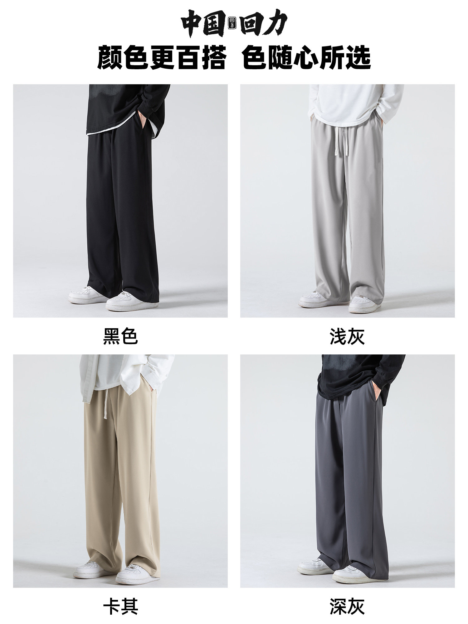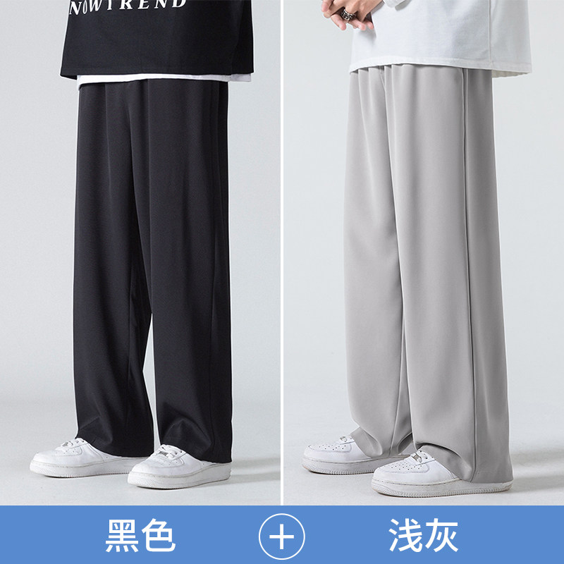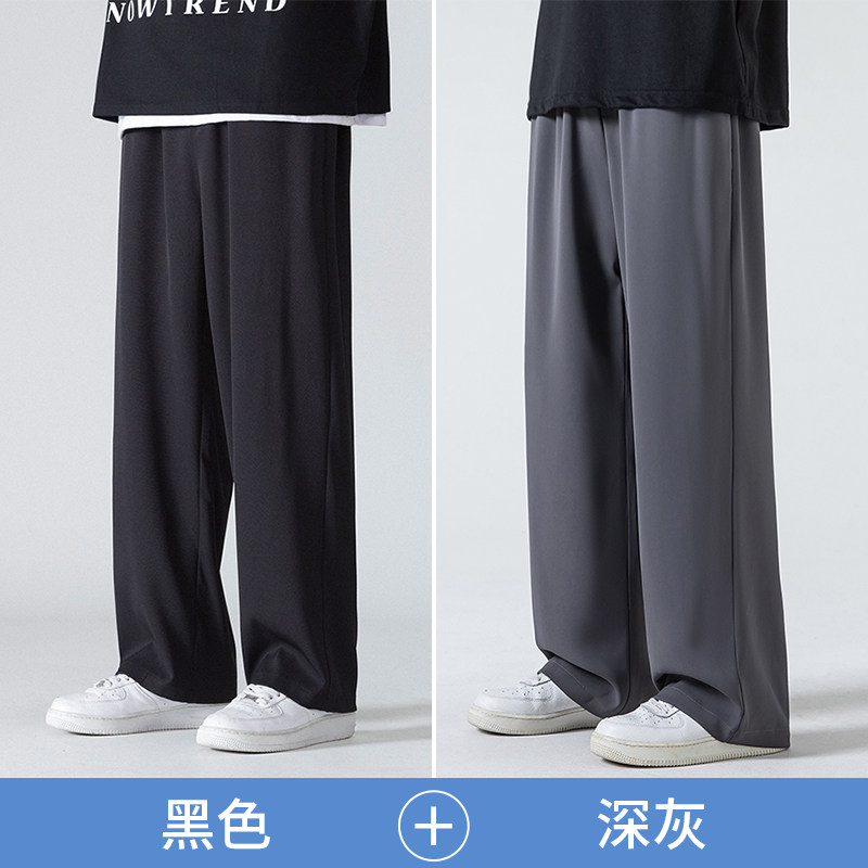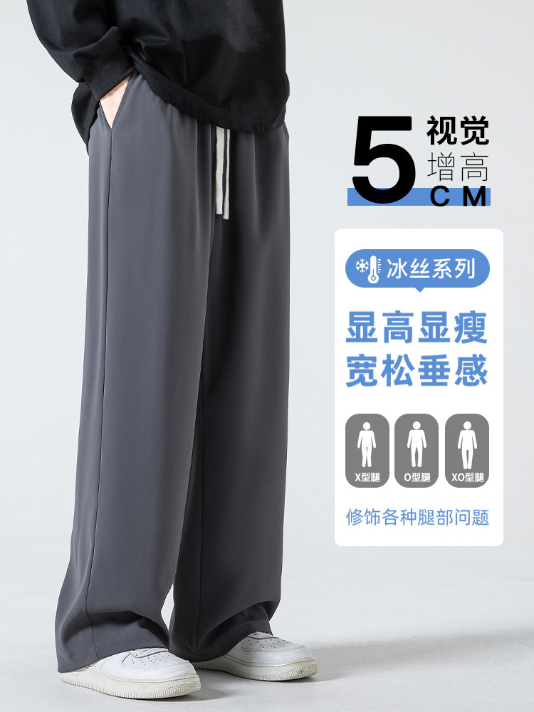 回力冰丝裤子男士夏季2025新款宽松直筒西裤男生阔腿运动休闲长裤
