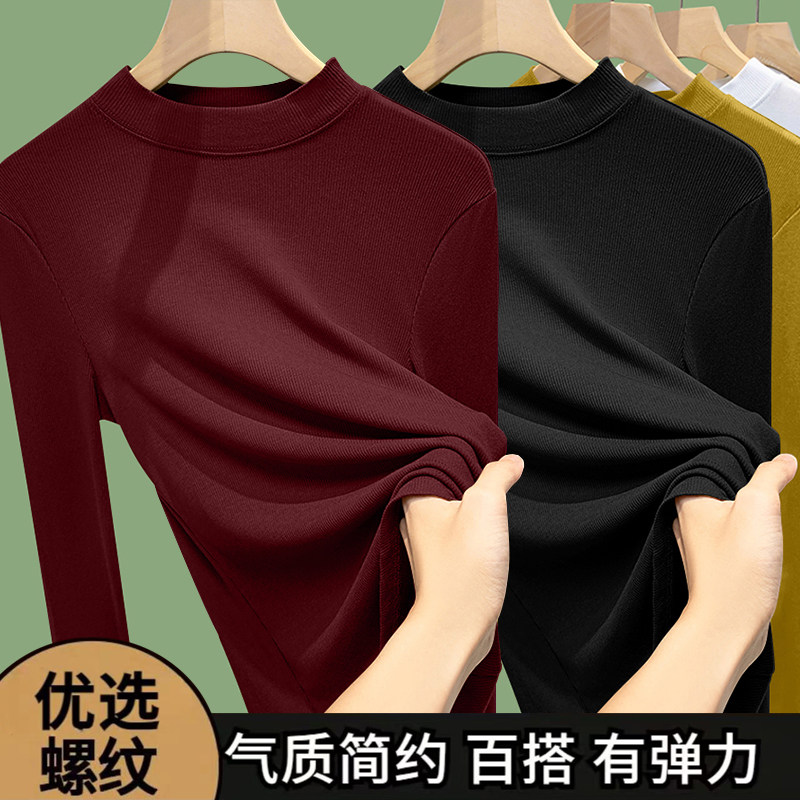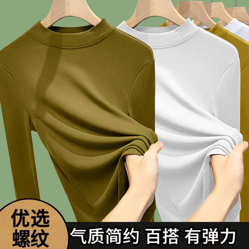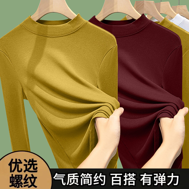 半高领打底衫女内搭春秋冬2026新款外穿秋衣大码中领螺纹长袖上衣