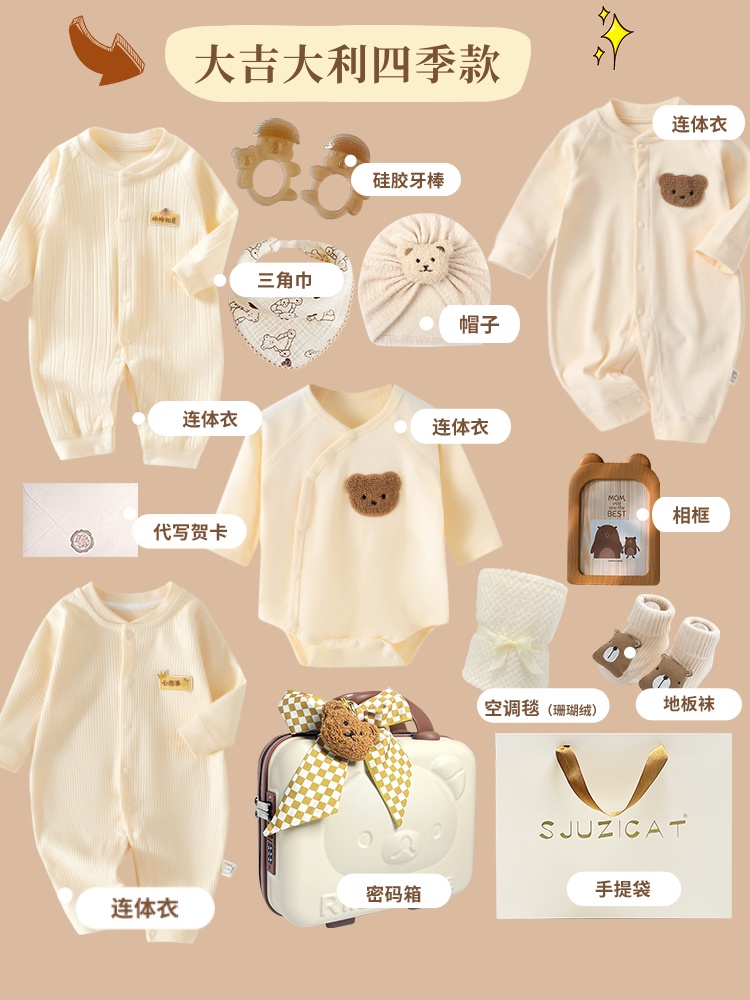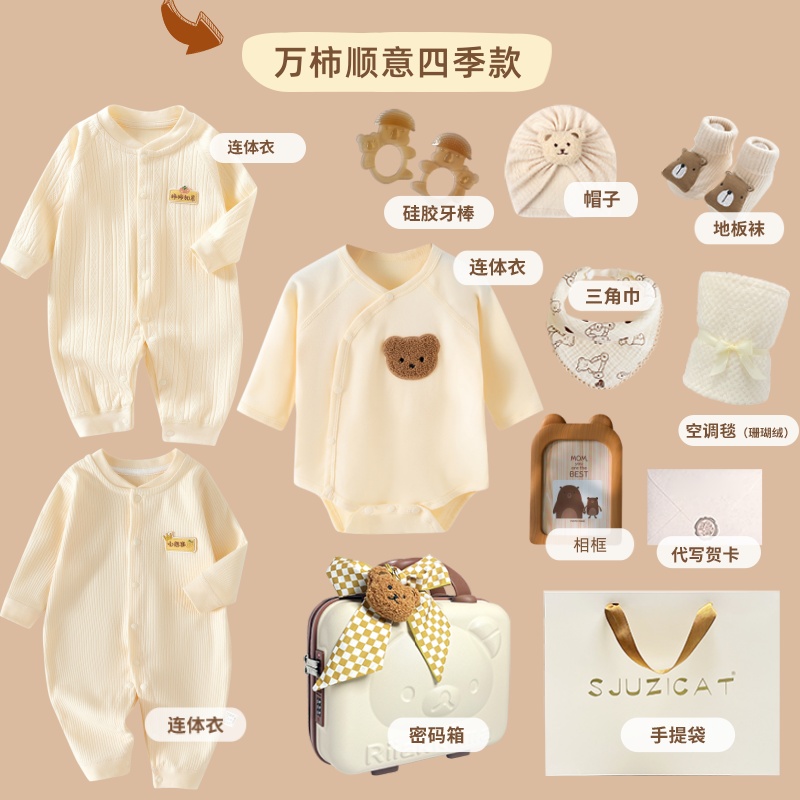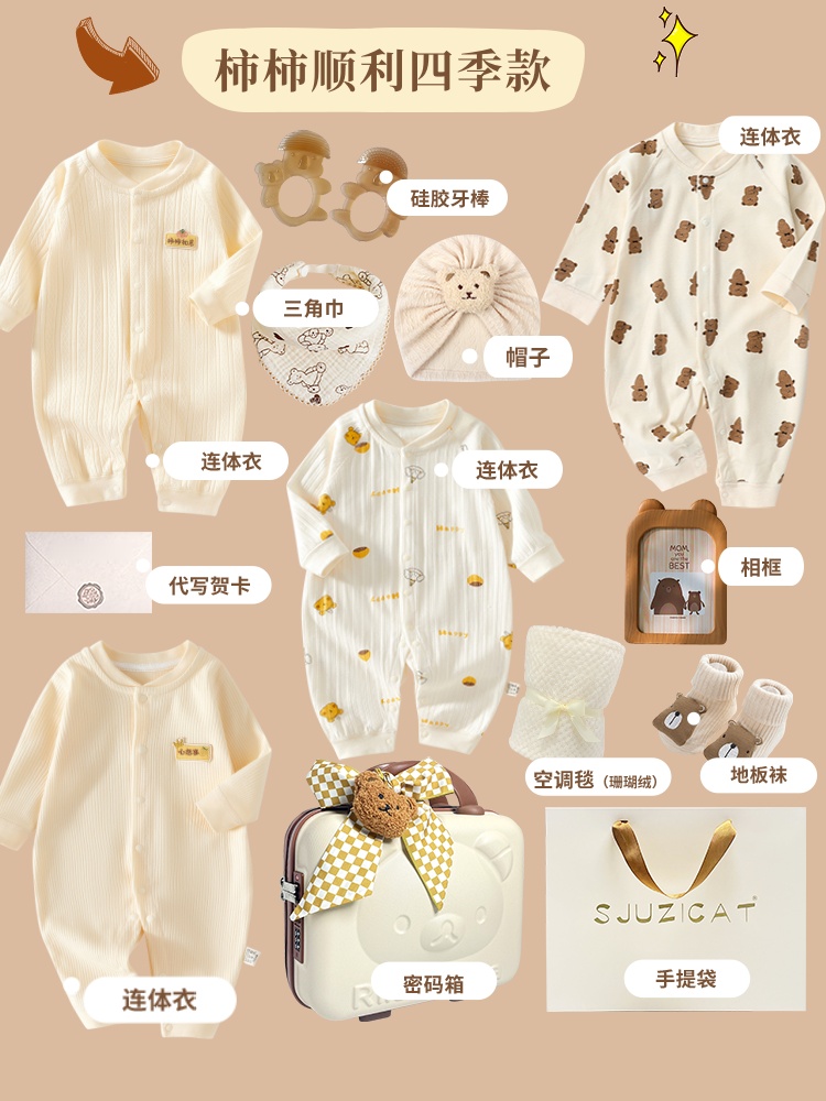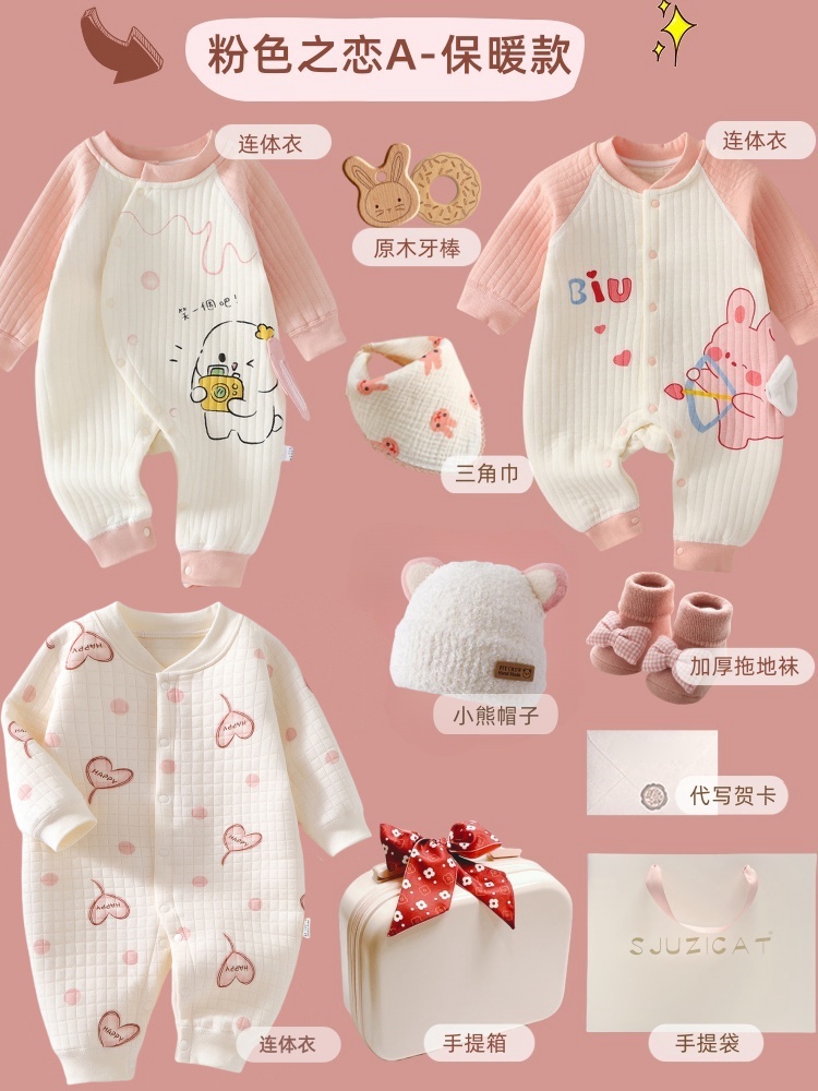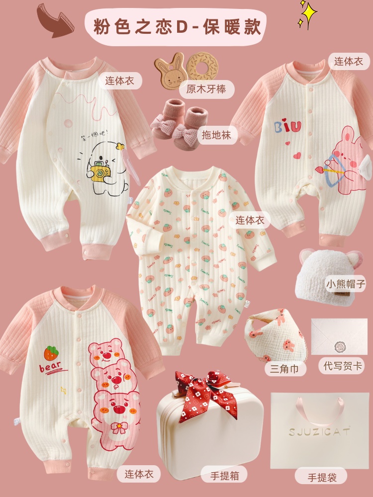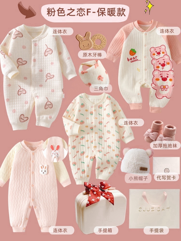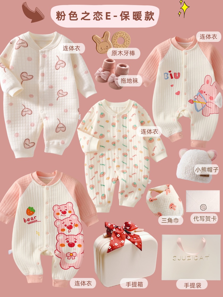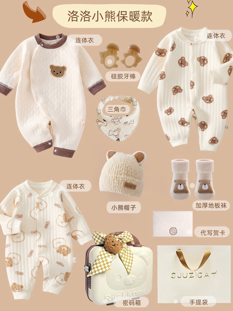 新生婴儿秋冬纯棉衣服套装刚出生宝宝满月见面礼物百岁周岁高档礼