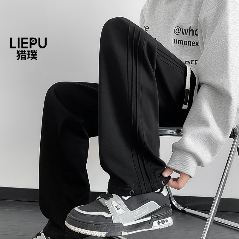 猎璞运动裤男黑色宽松休闲裤男生长裤男士直筒裤卫裤加绒冬季裤子