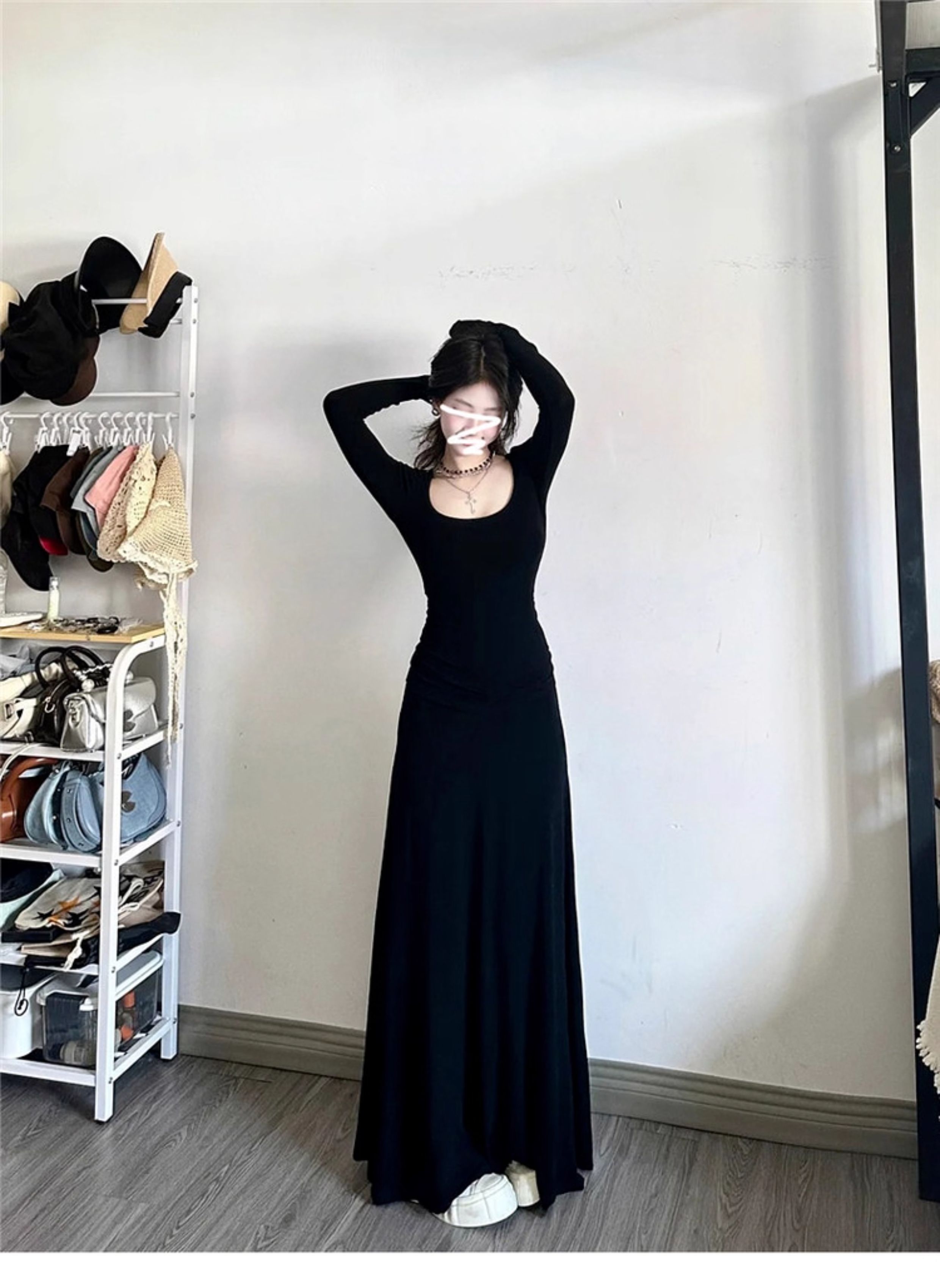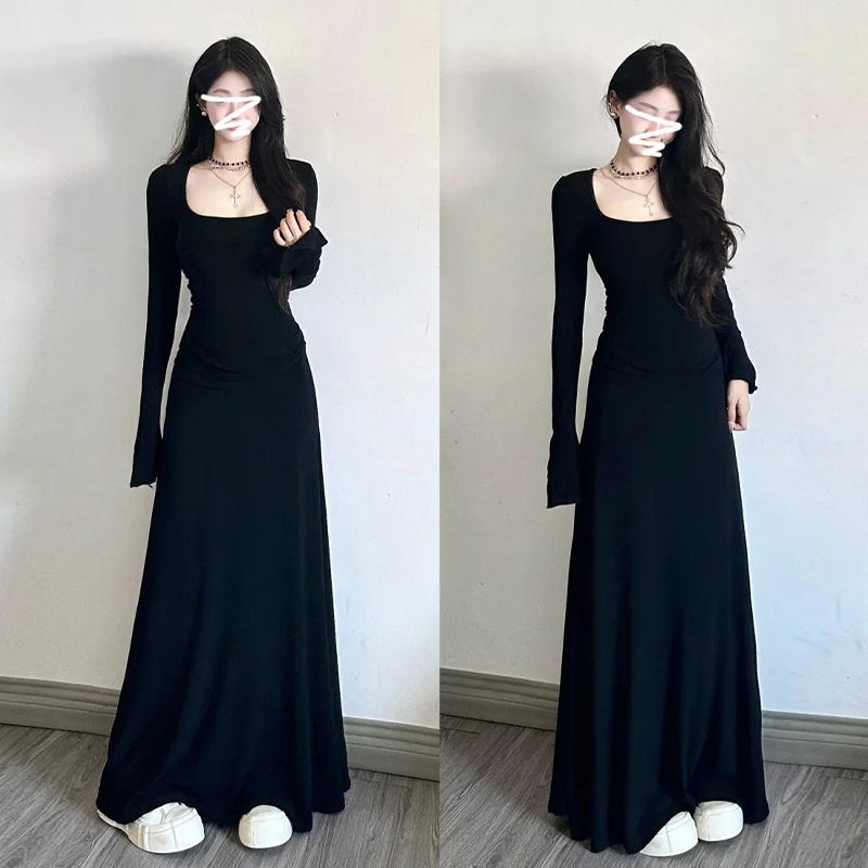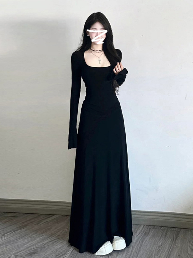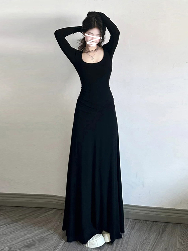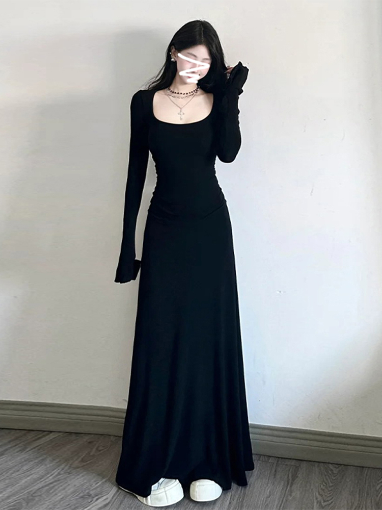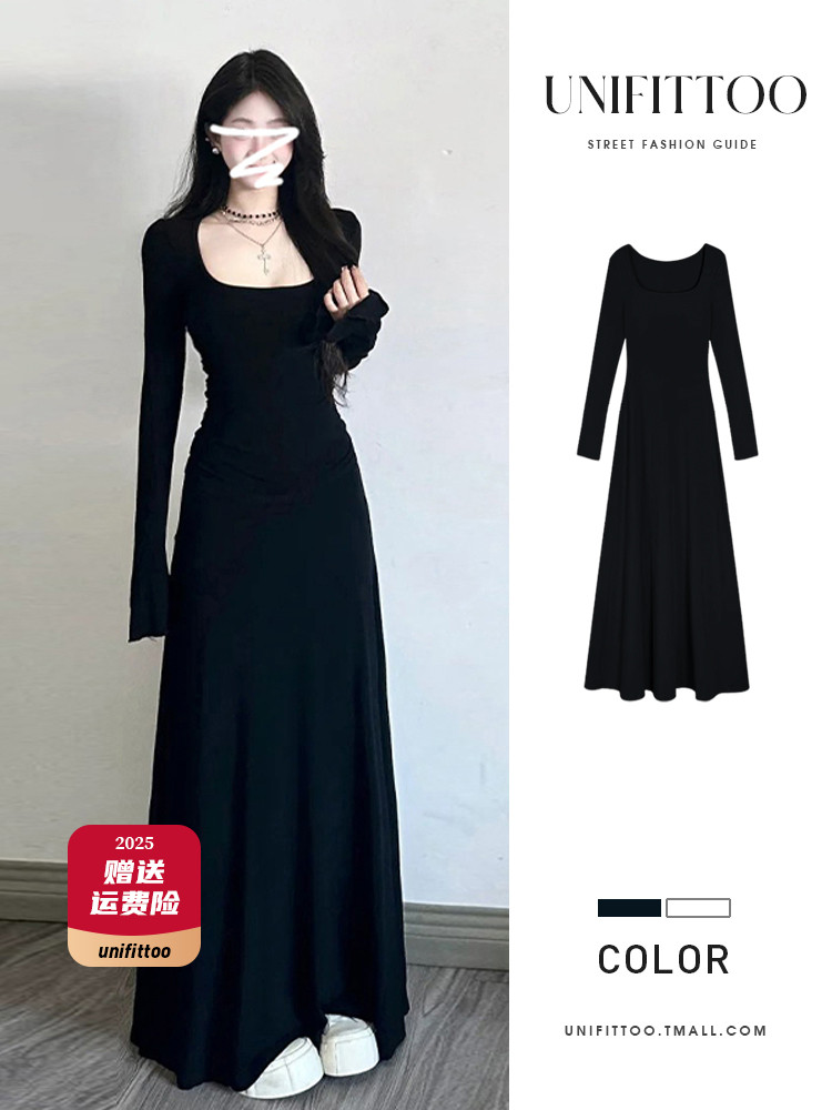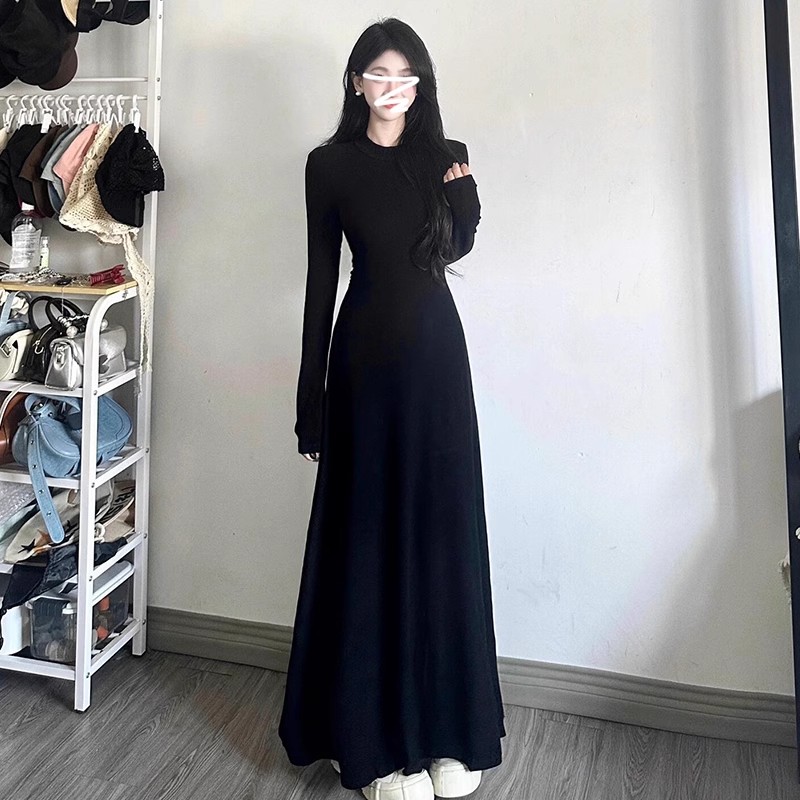 高级感黑色修身连衣裙女装内搭法式掐腰裙长裙子秋冬穿搭2025新款