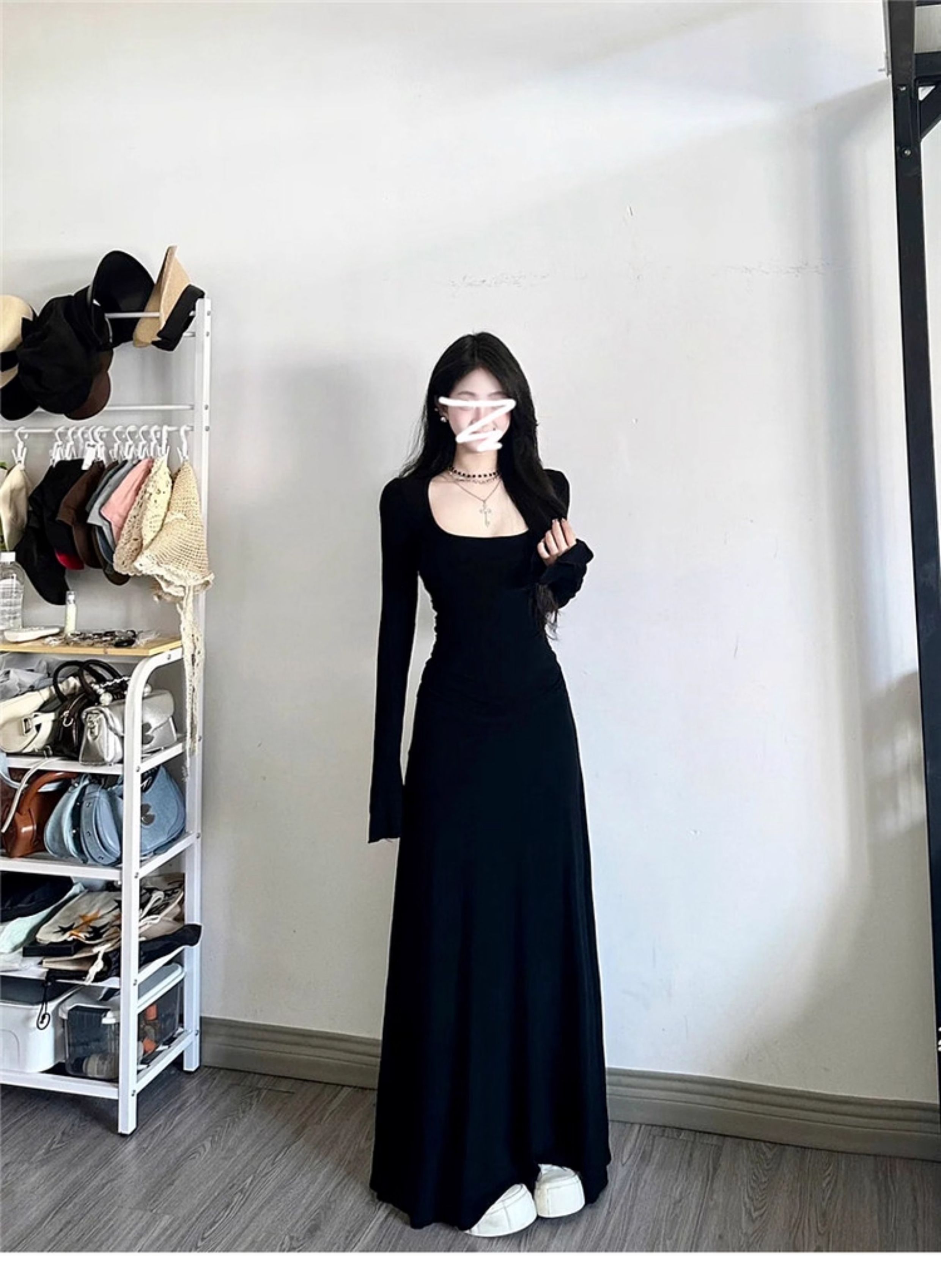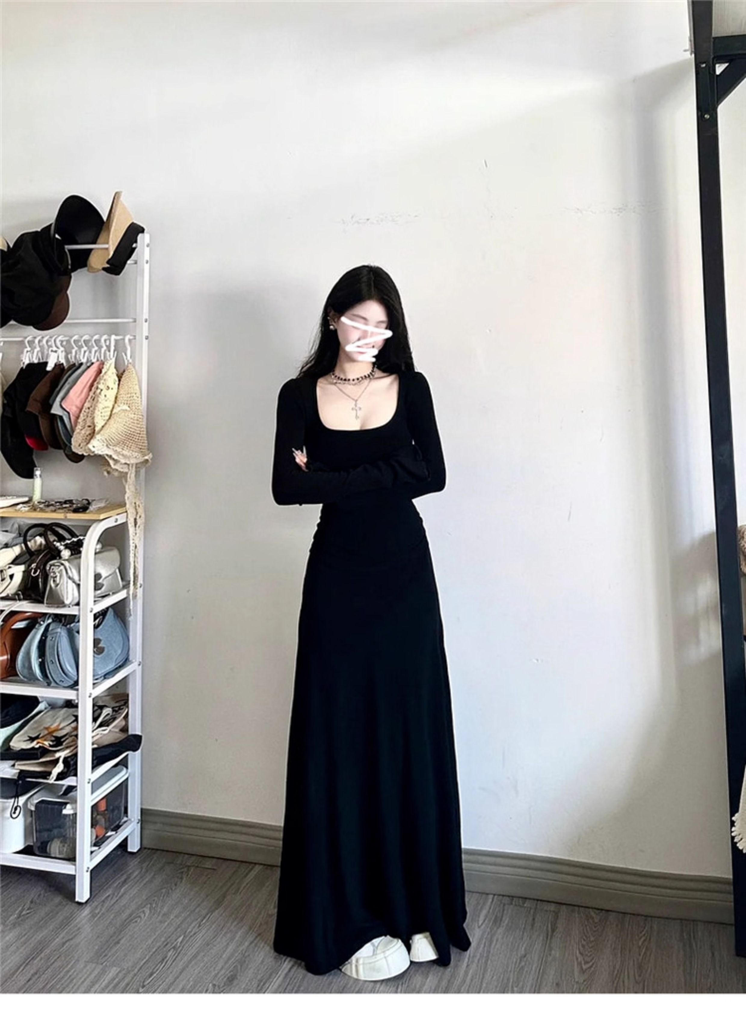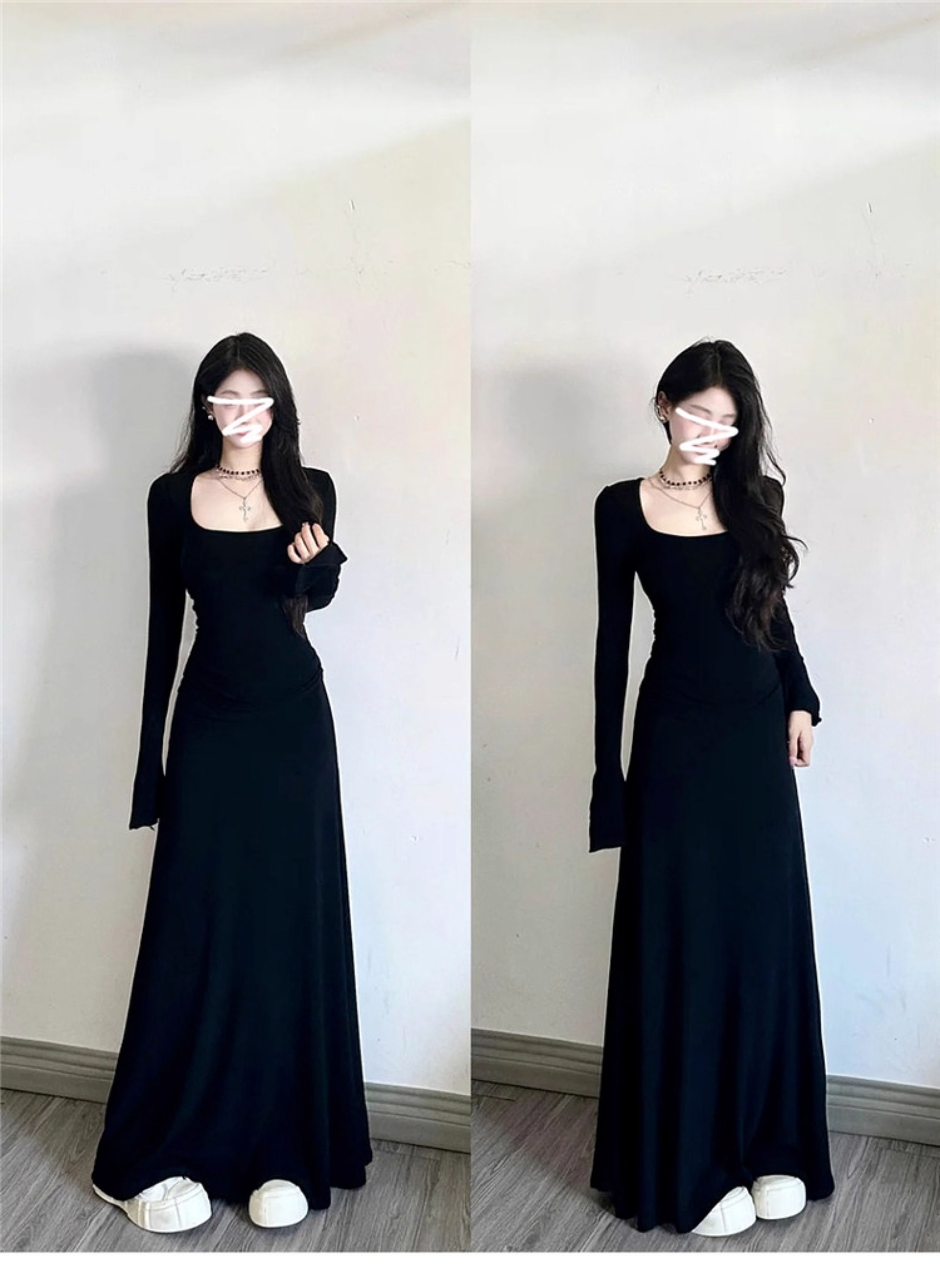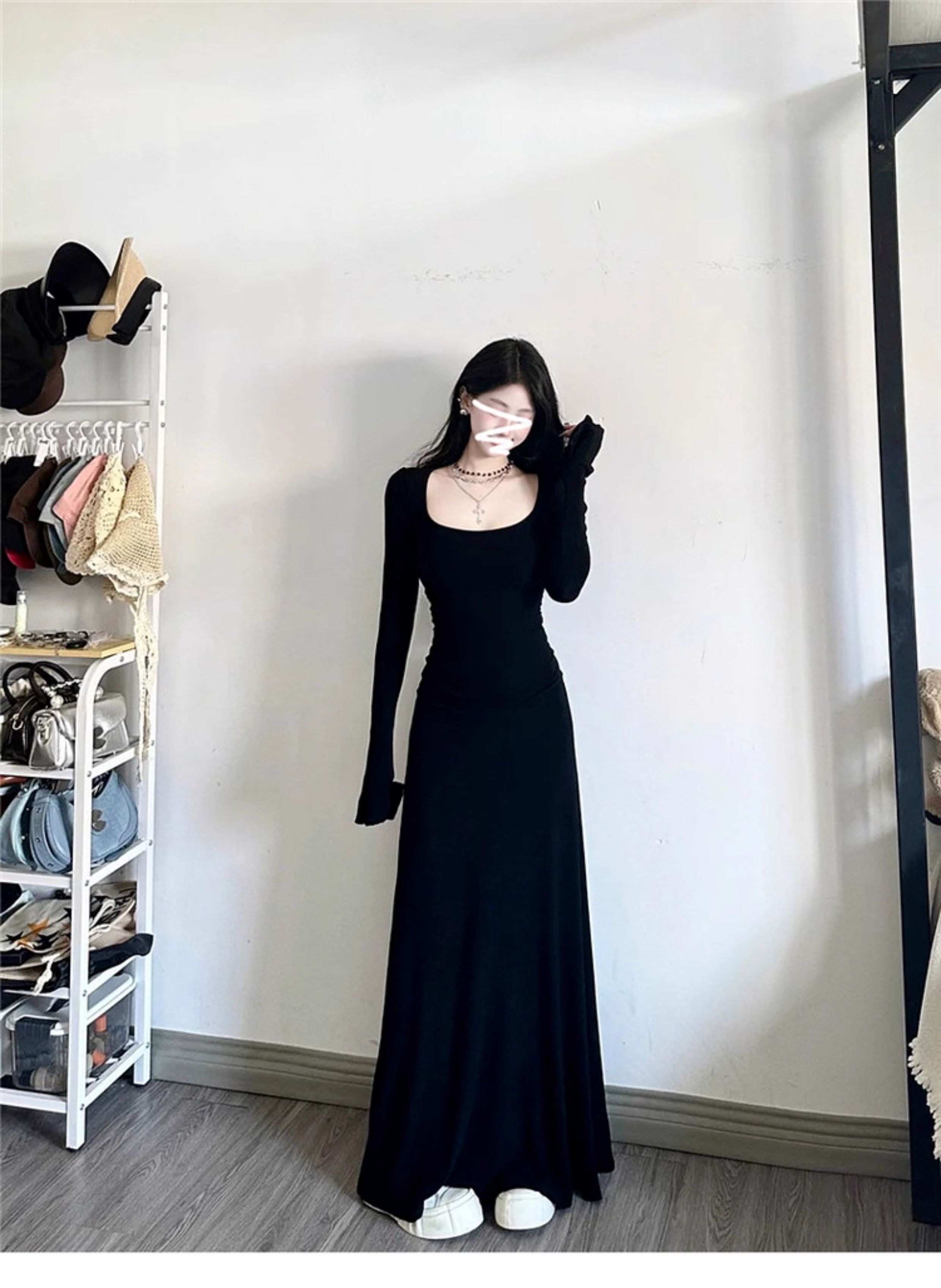 高级感黑色修身连衣裙女装内搭法式掐腰裙长裙子秋冬穿搭2025新款