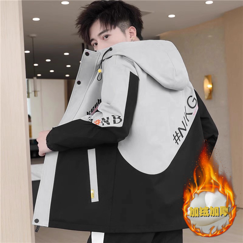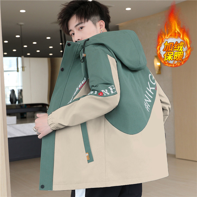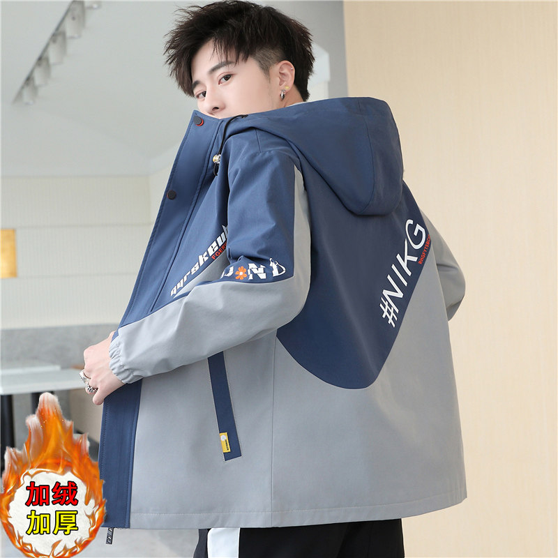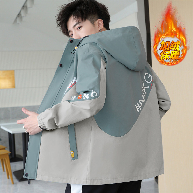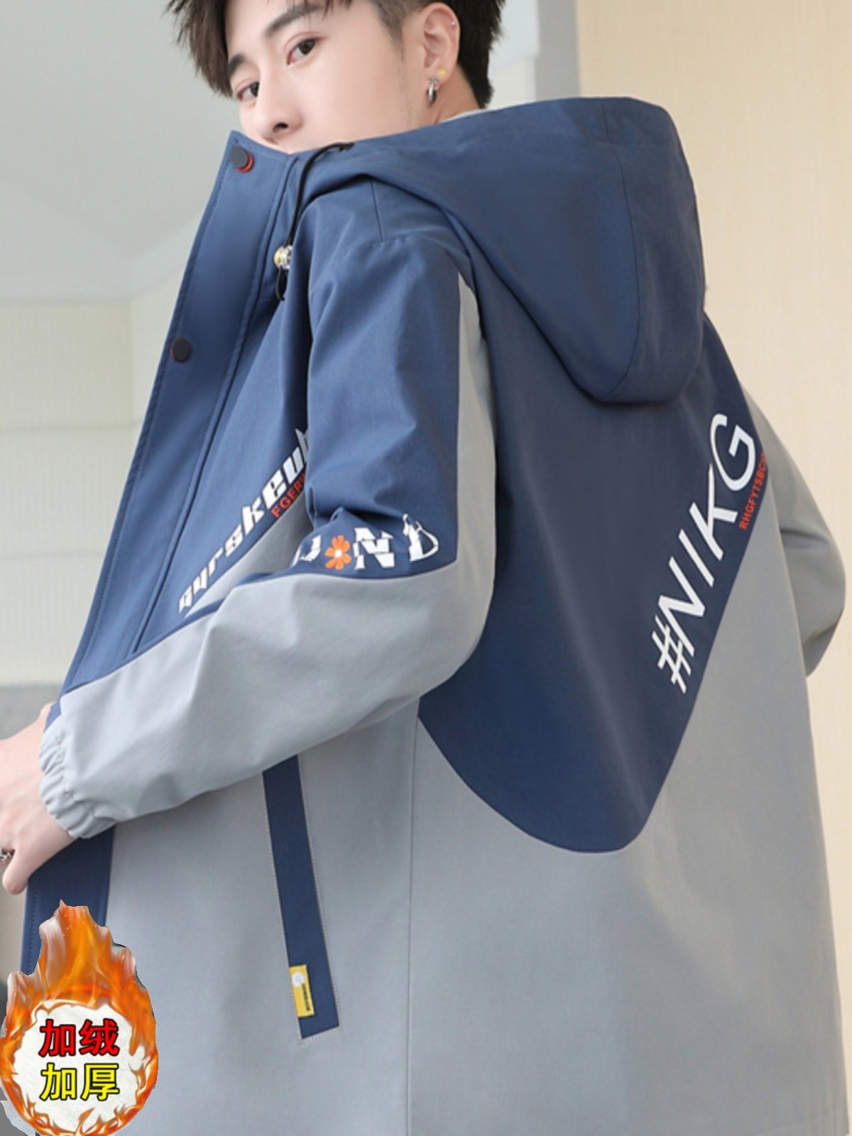 青少年夹克2025年新款秋冬季男生休闲男士中学生上衣加绒加厚外套