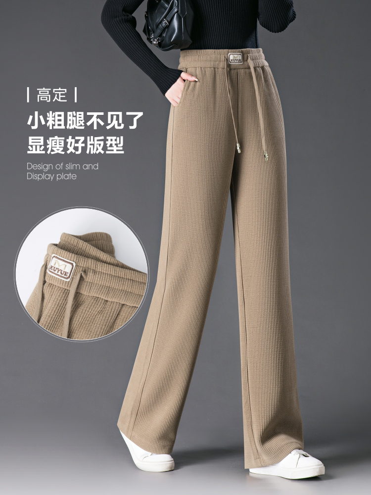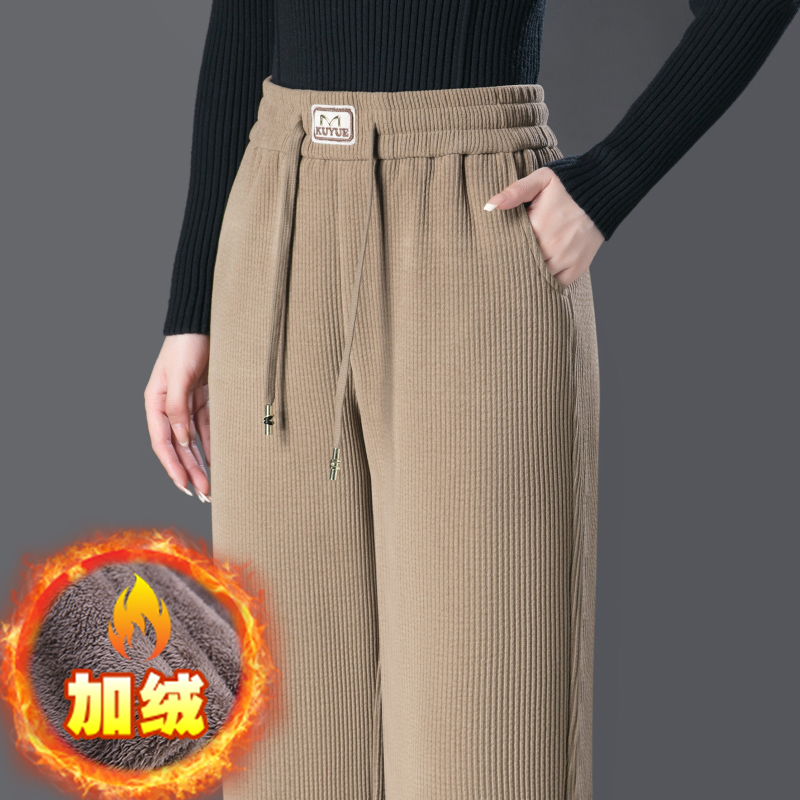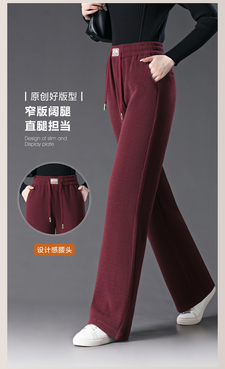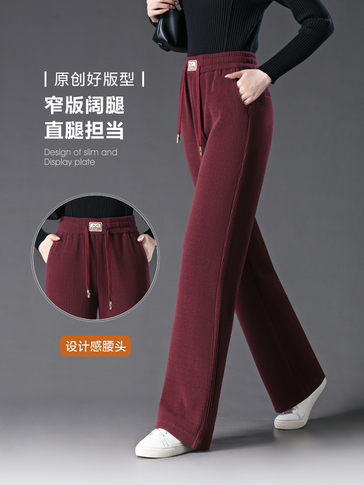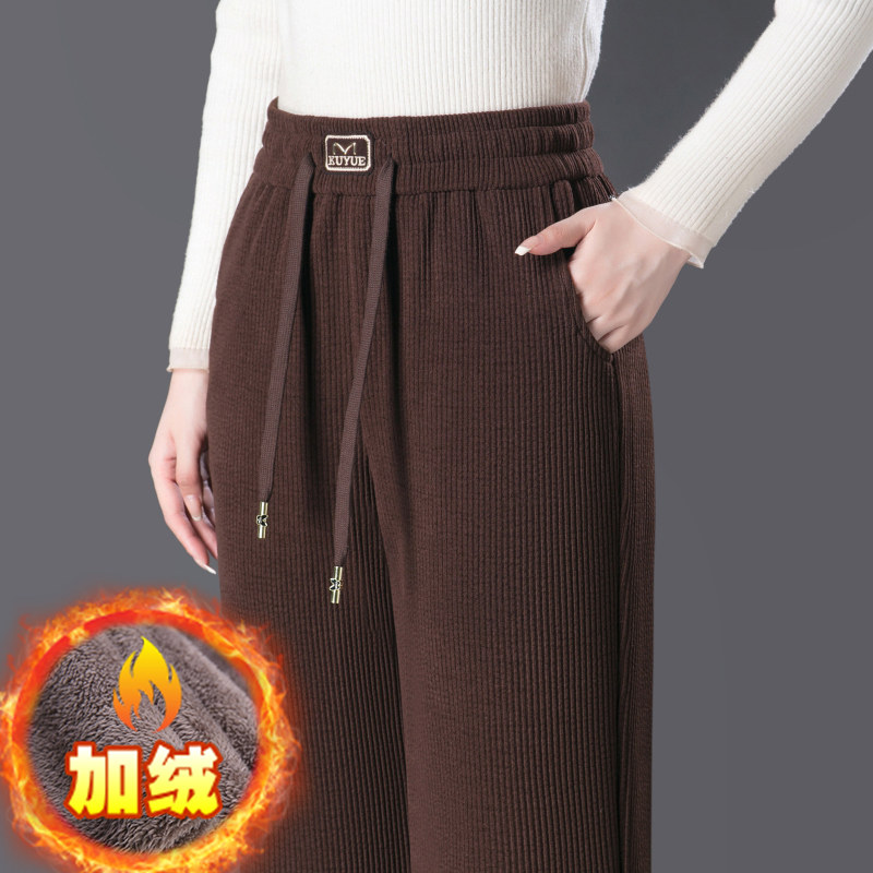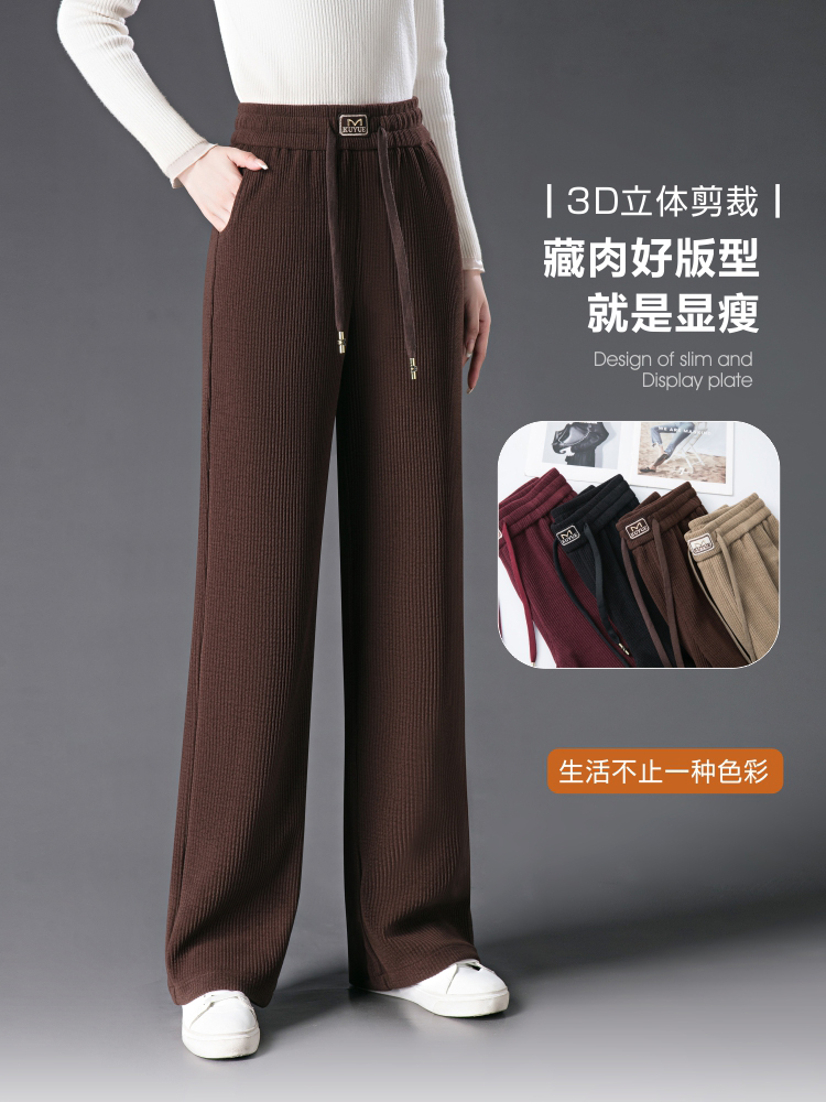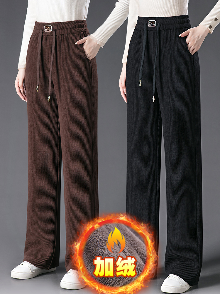 雪尼尔窄版阔腿裤女秋冬加绒2025新款高腰直筒妈妈裤小个子拖地裤