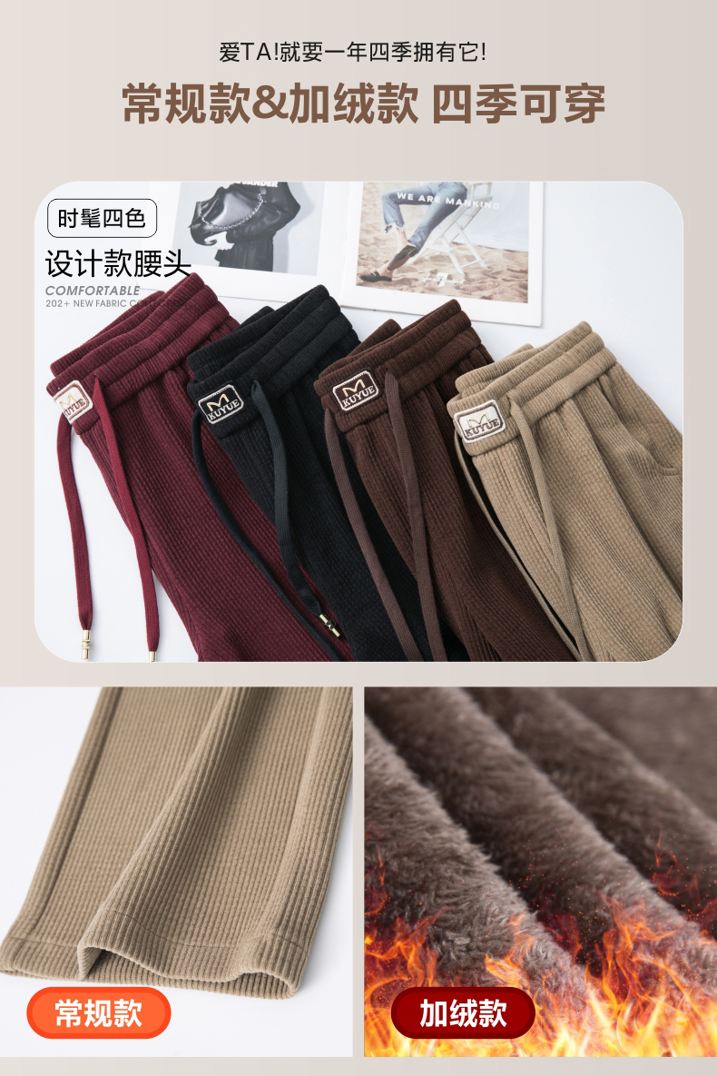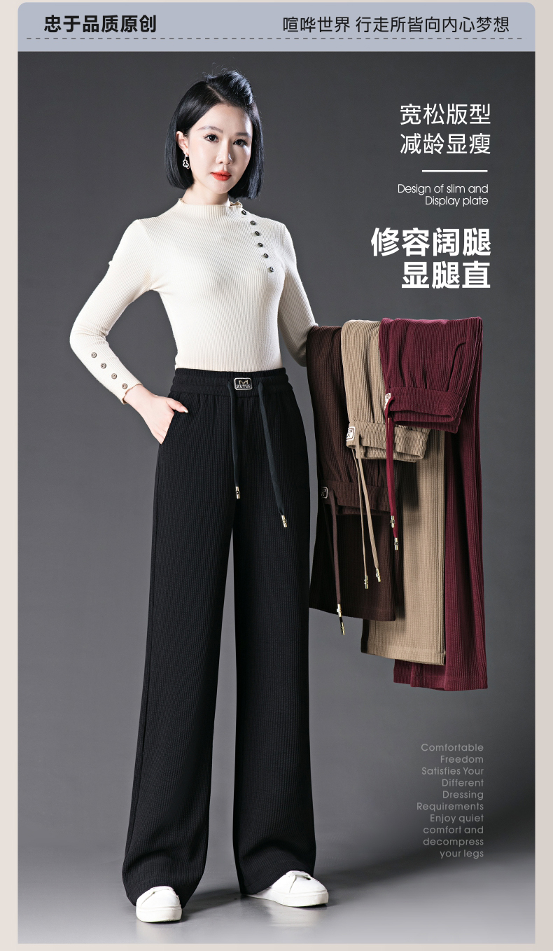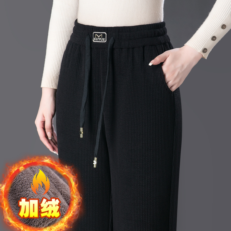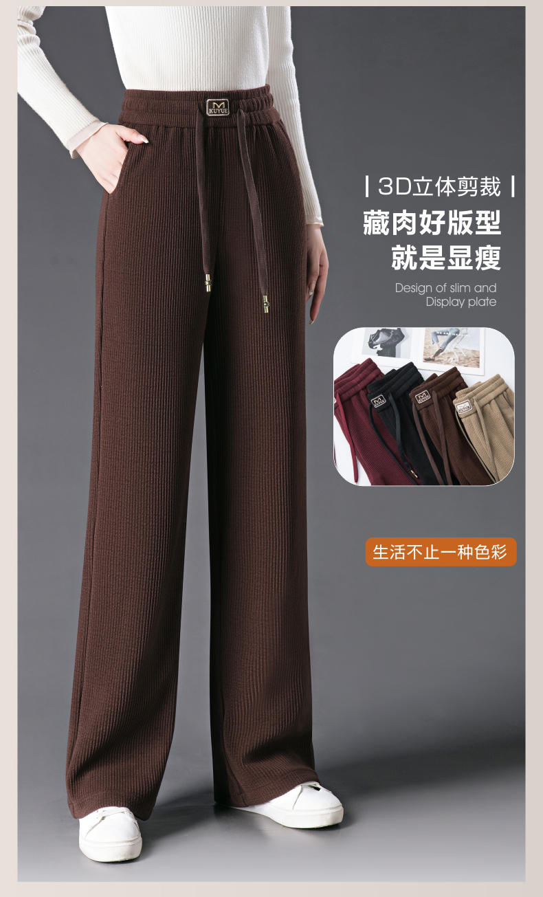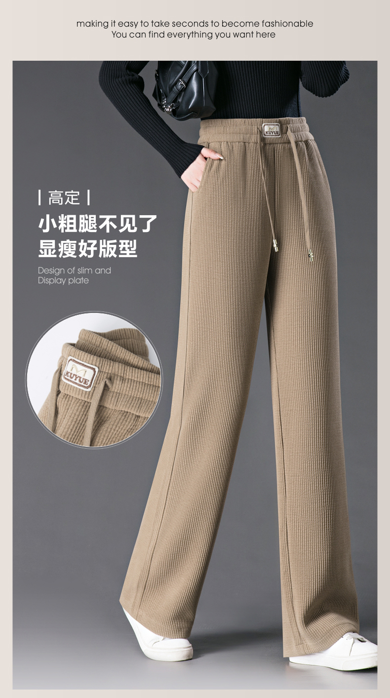 雪尼尔窄版阔腿裤女秋冬加绒2025新款高腰直筒妈妈裤小个子拖地裤