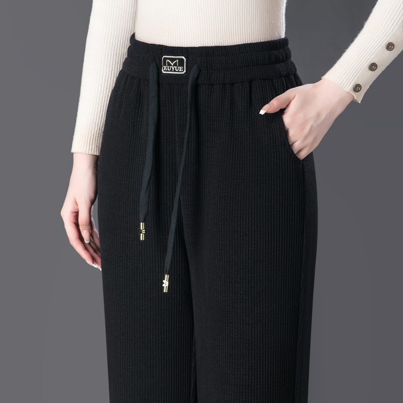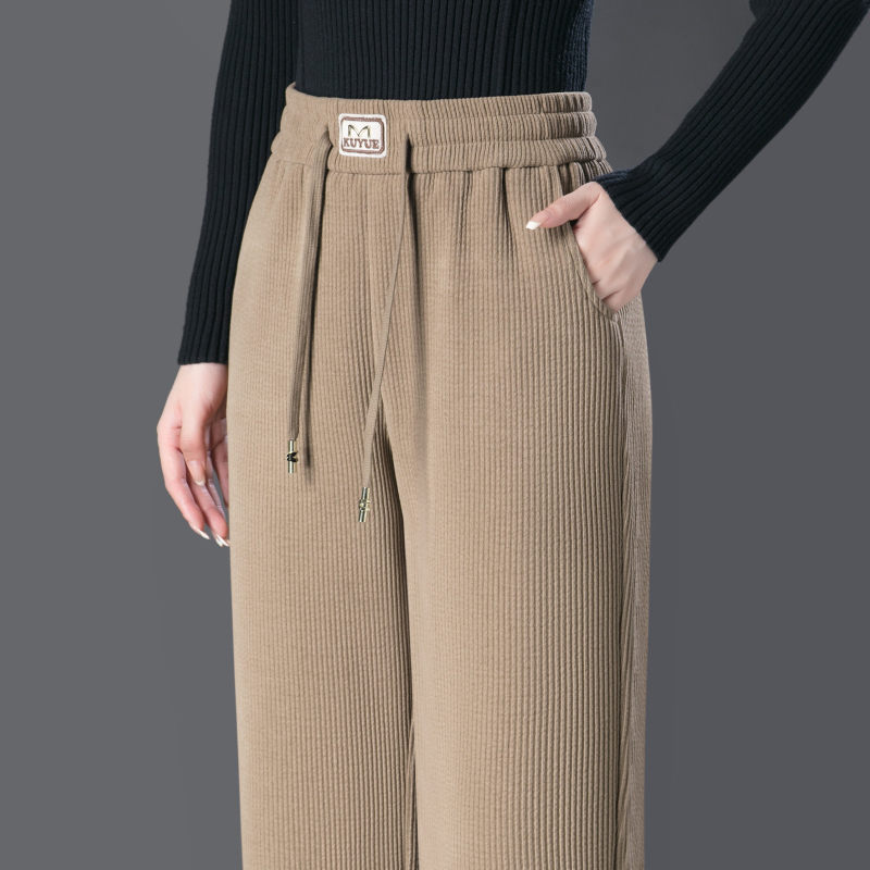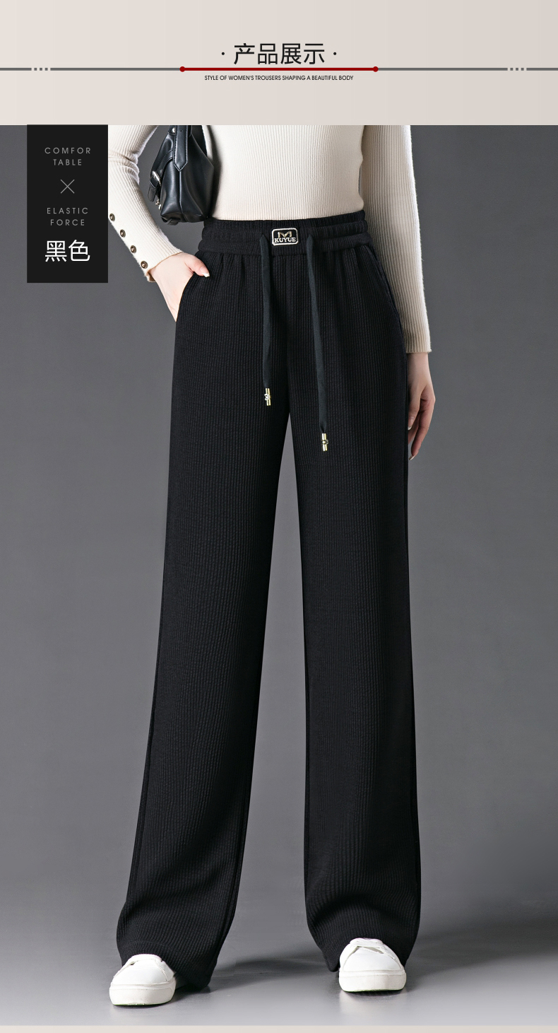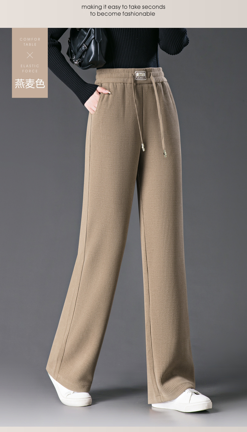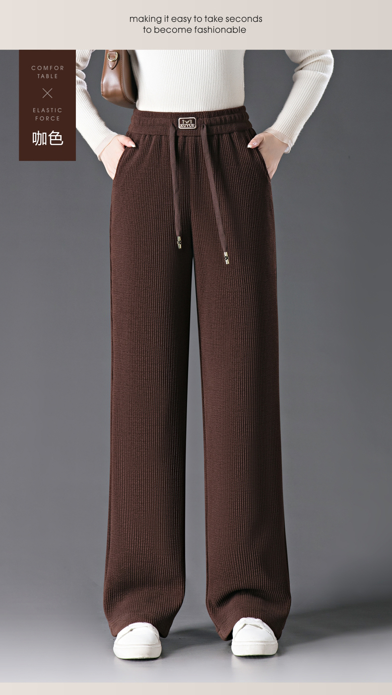 雪尼尔窄版阔腿裤女秋冬加绒2025新款高腰直筒妈妈裤小个子拖地裤