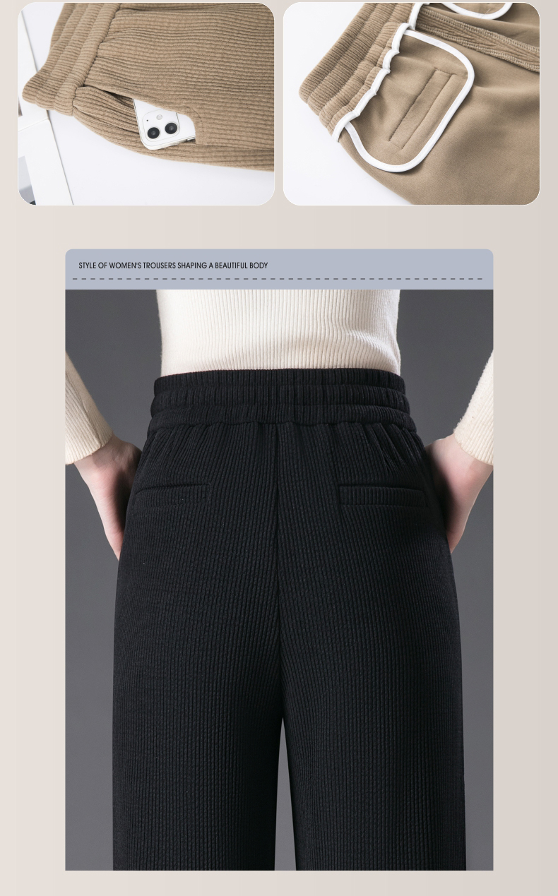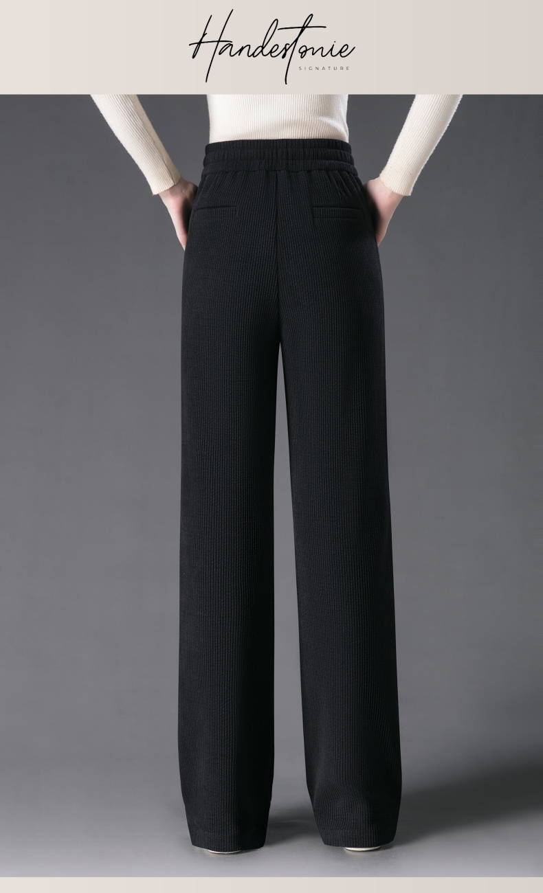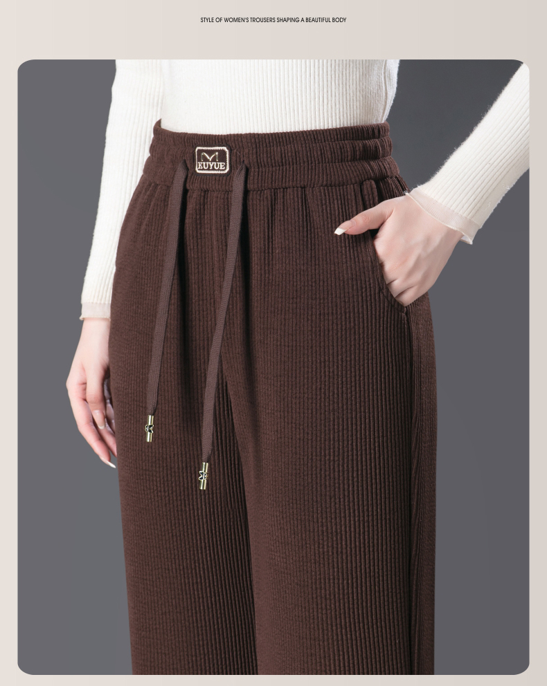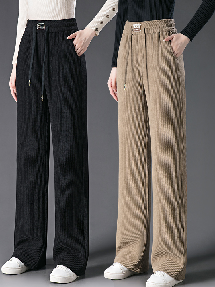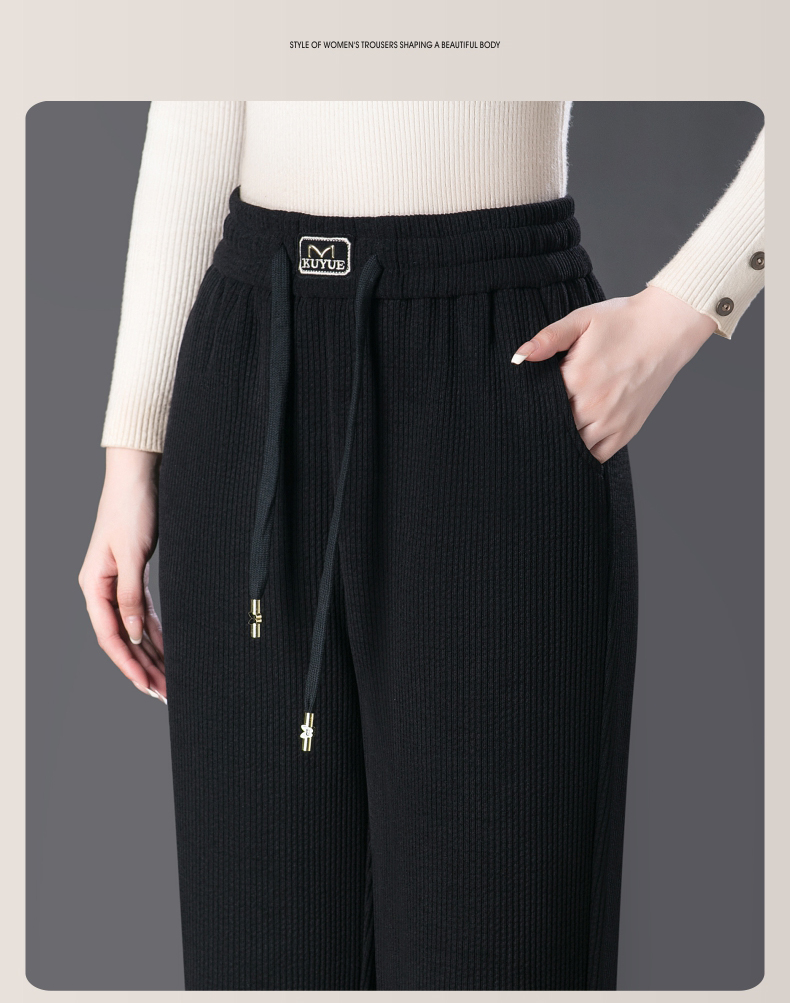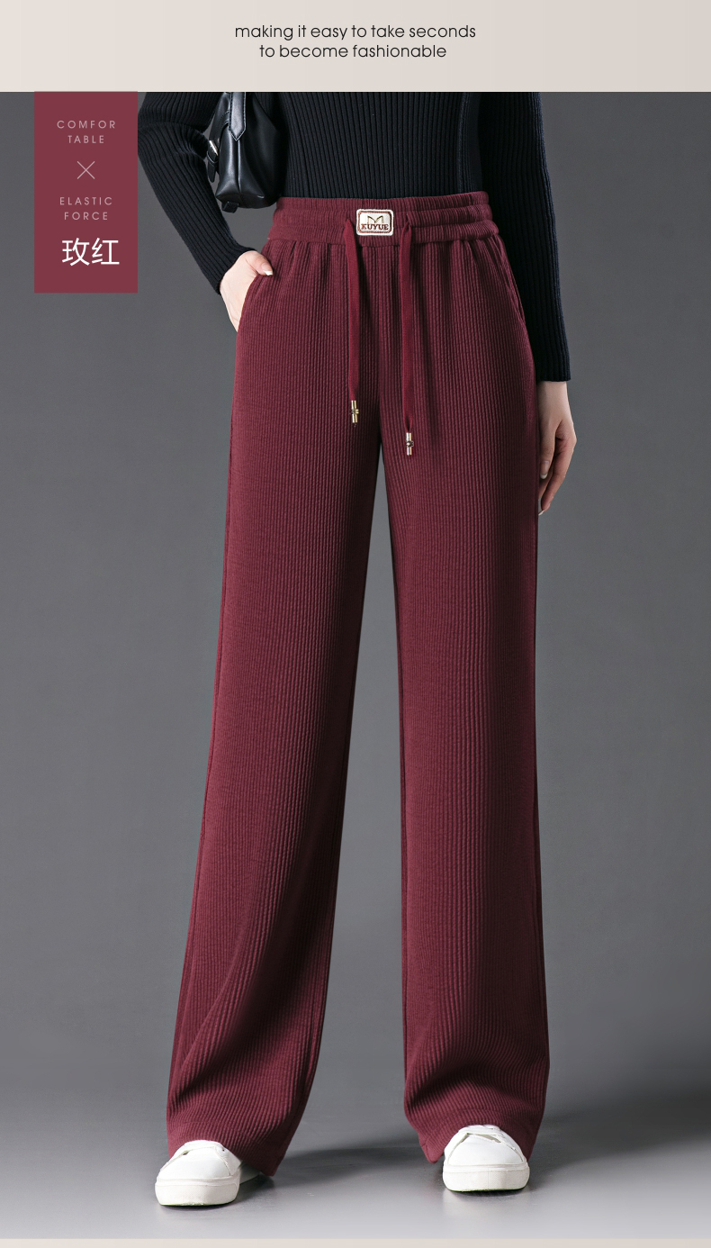 雪尼尔窄版阔腿裤女秋冬加绒2025新款高腰直筒妈妈裤小个子拖地裤