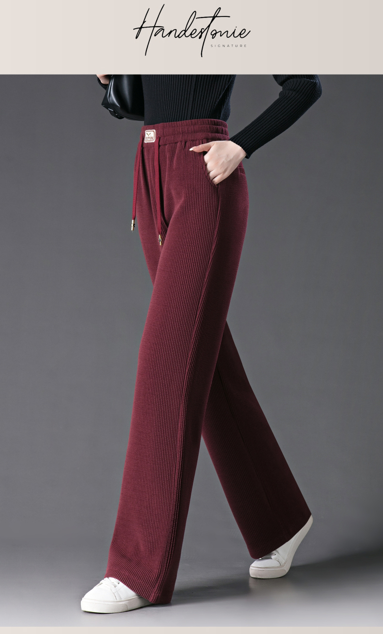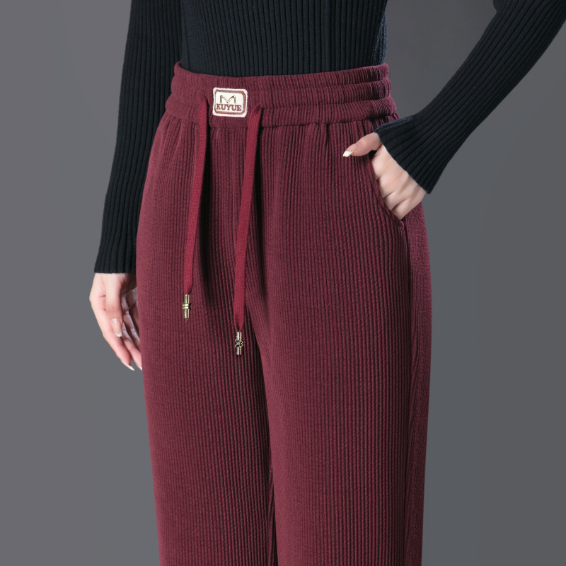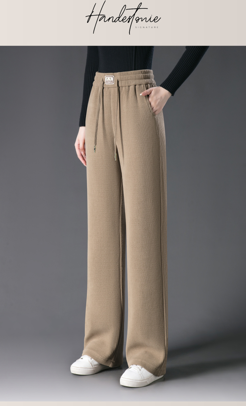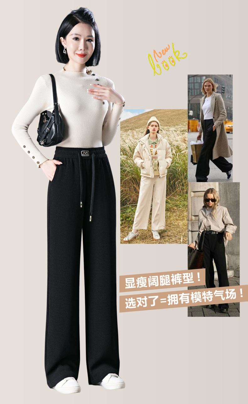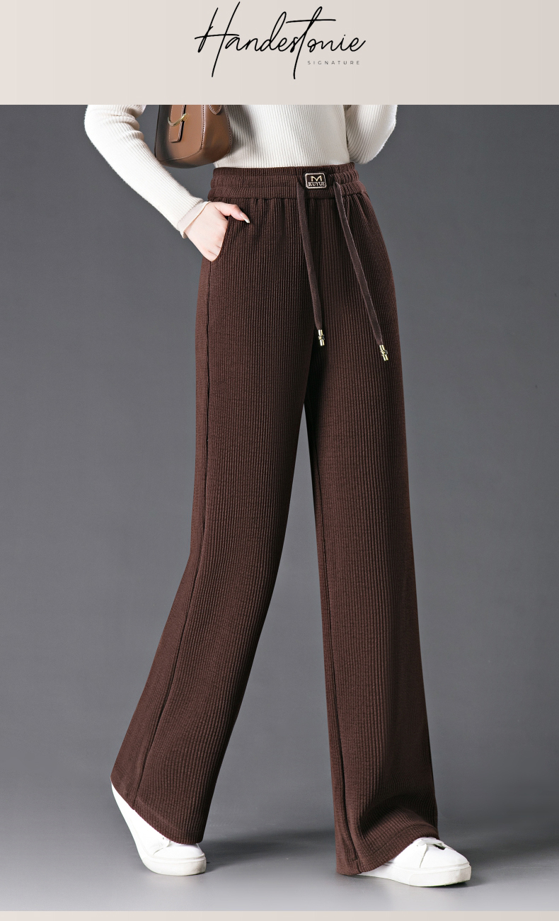 雪尼尔窄版阔腿裤女秋冬加绒2025新款高腰直筒妈妈裤小个子拖地裤