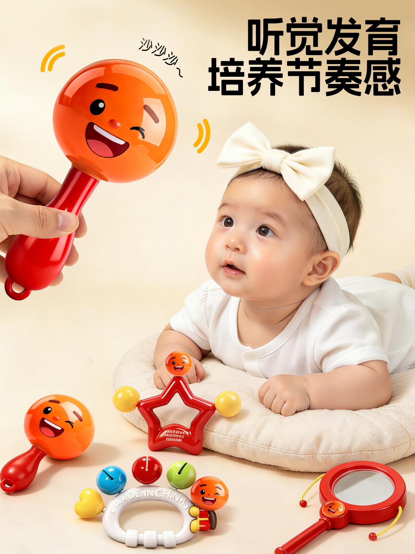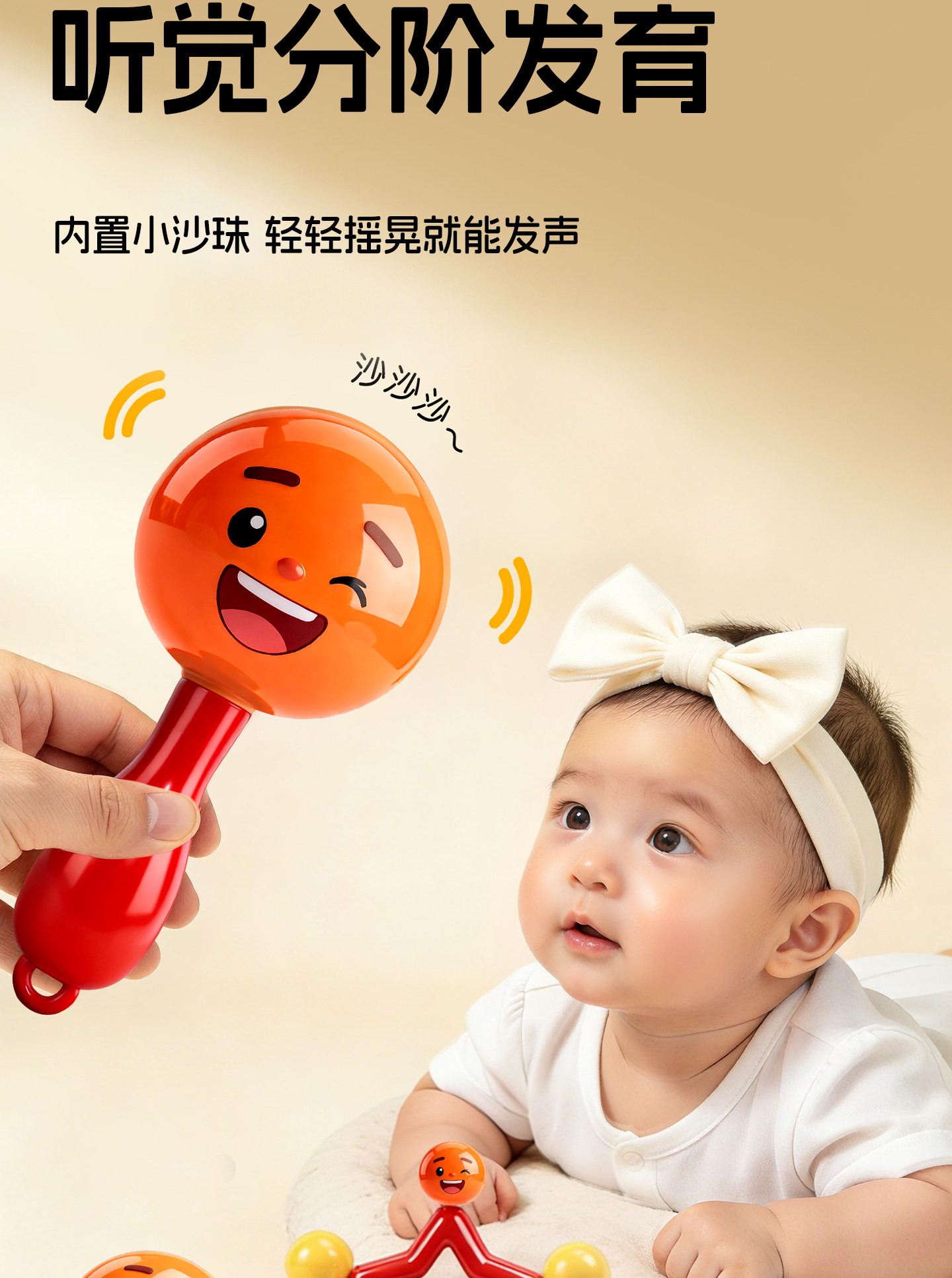 面包手摇铃超人新生婴儿玩具0到6个月3拨浪鼓小月龄宝宝抓握沙锤