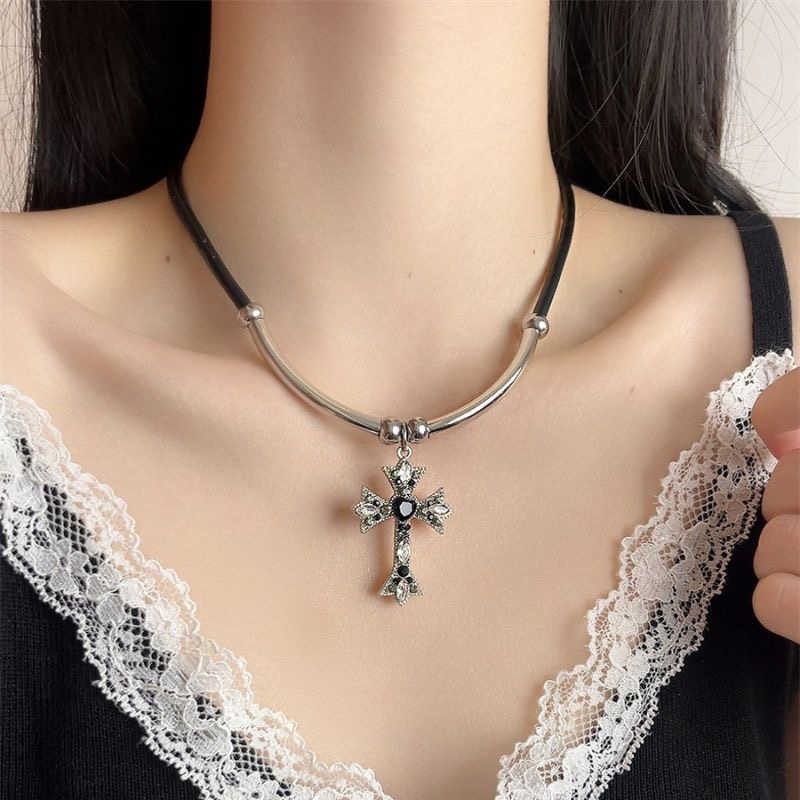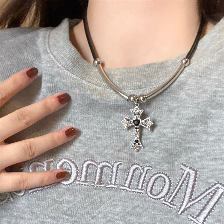 冷淡风十字架项链街头嘻哈饰品百搭小众个性中性卫衣链锁骨链