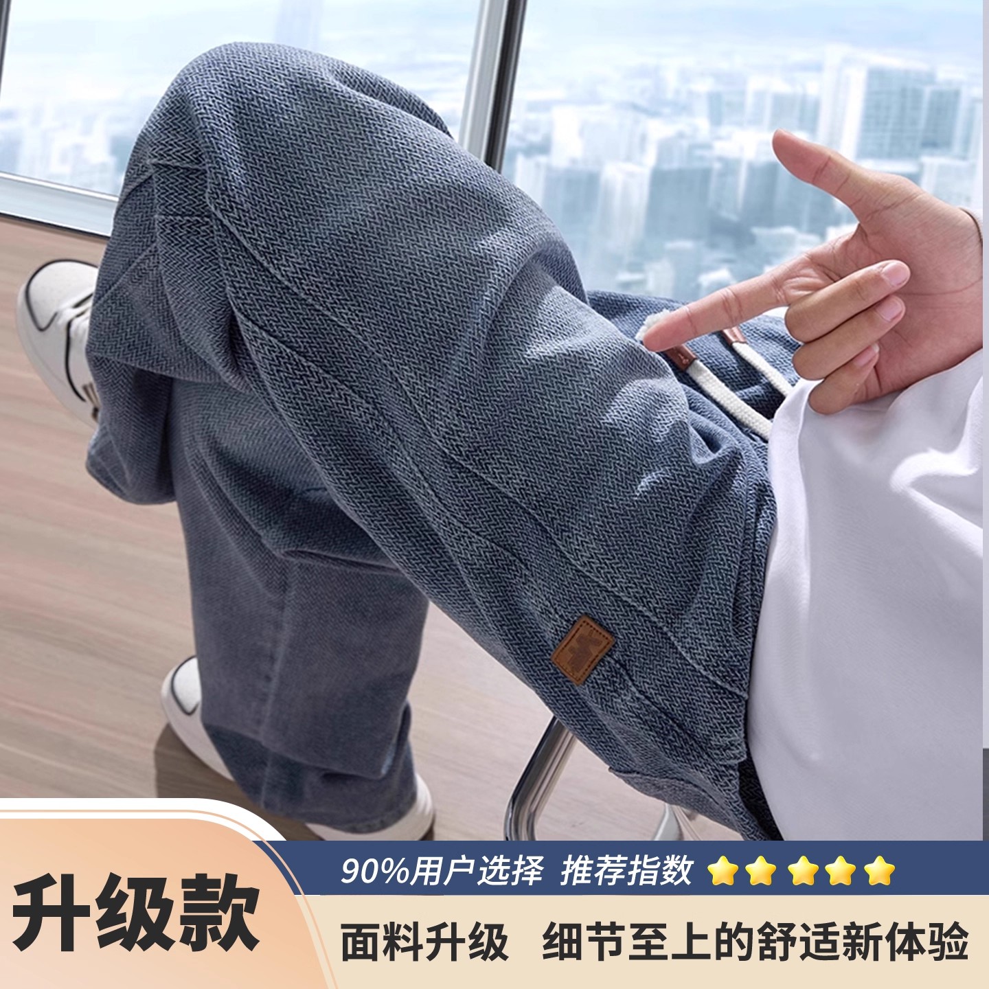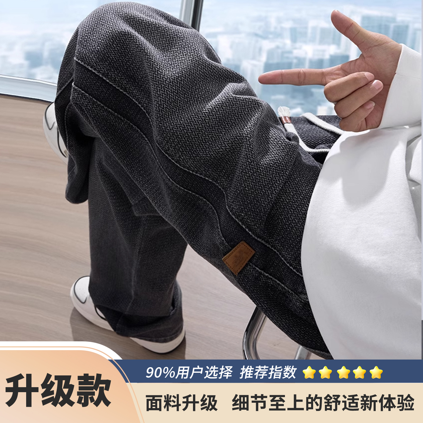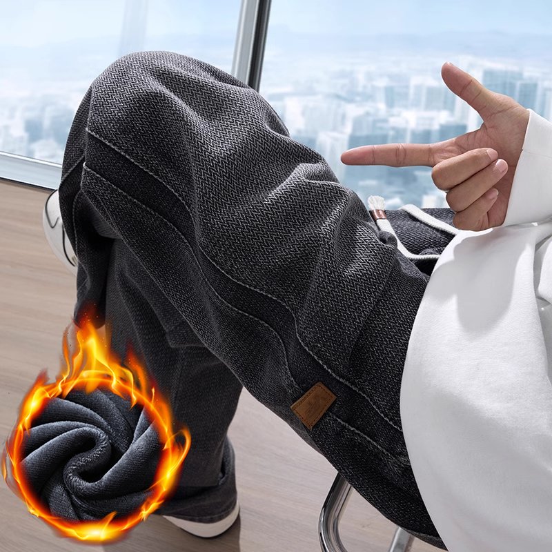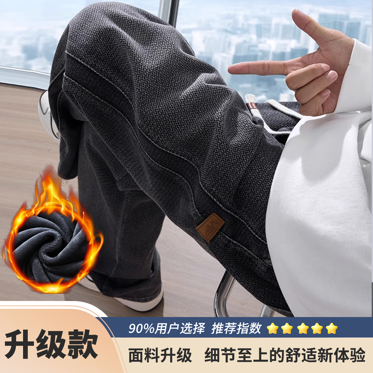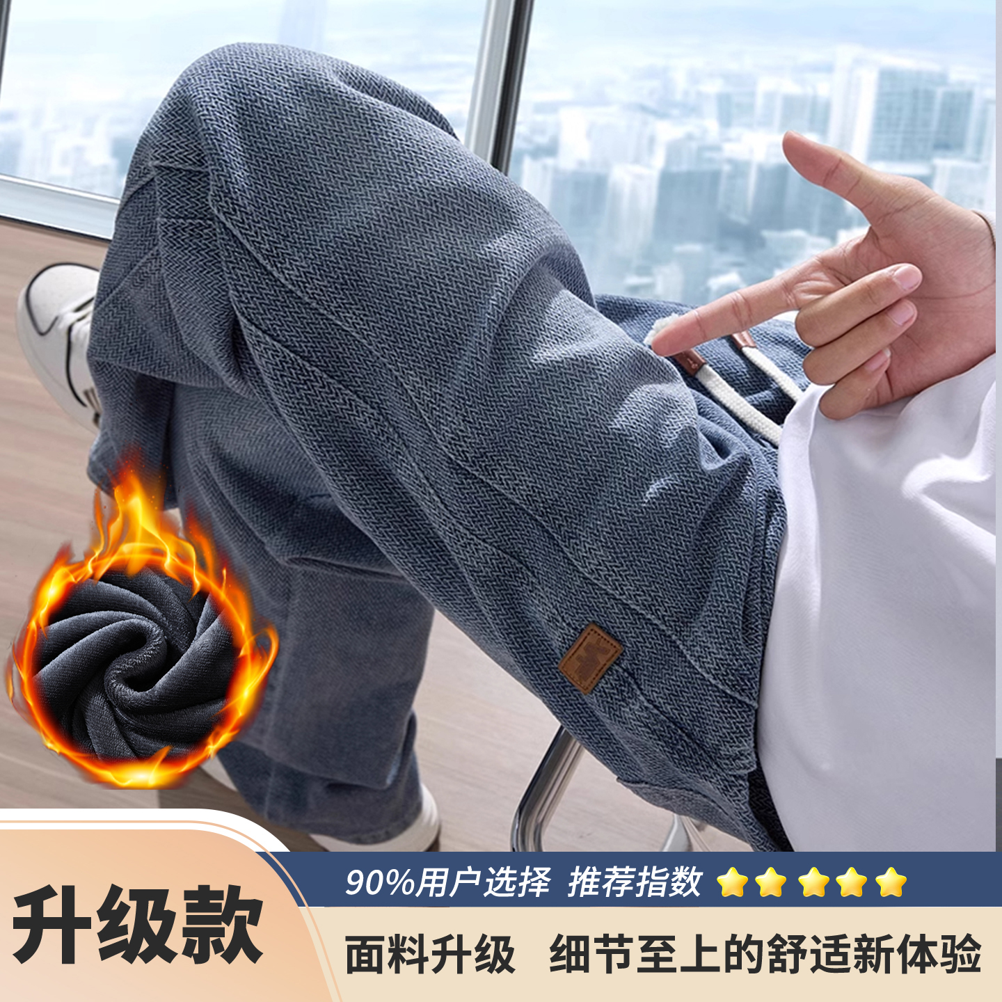 2025秋冬季加绒星空纹牛仔裤男士美式高街宽松直筒水洗休闲裤子潮