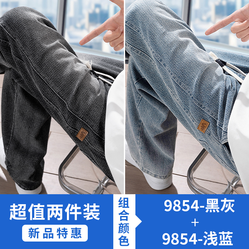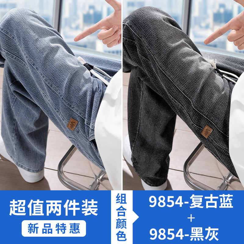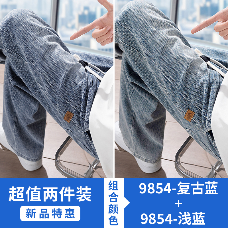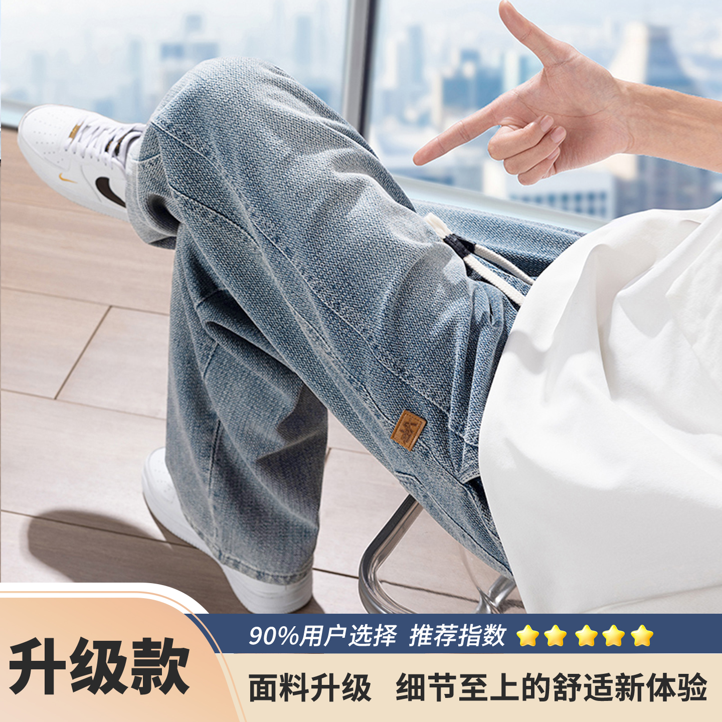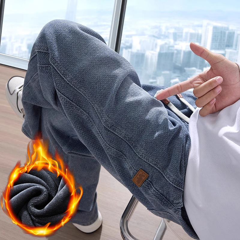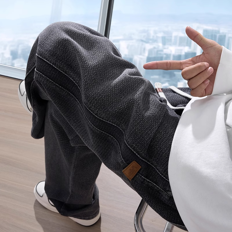 2025秋冬季加绒星空纹牛仔裤男士美式高街宽松直筒水洗休闲裤子潮