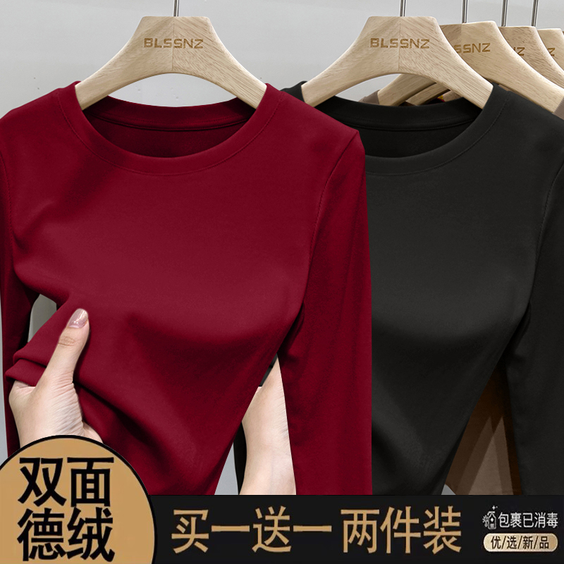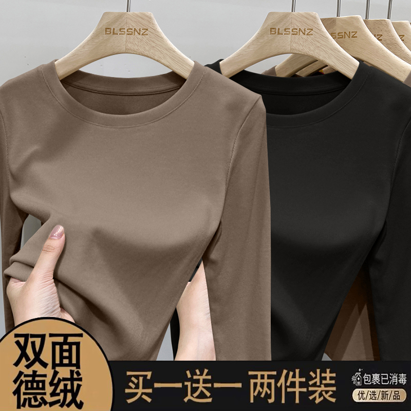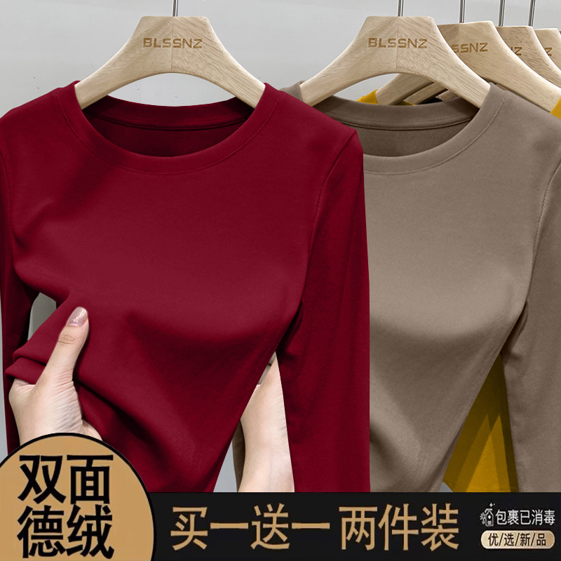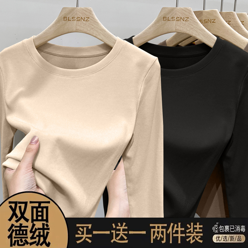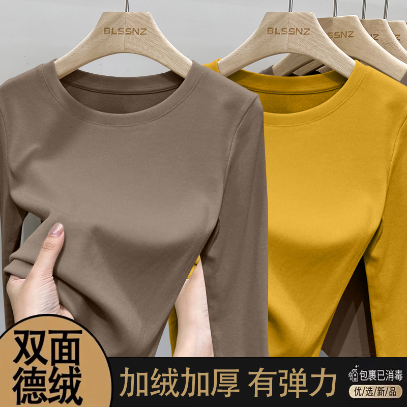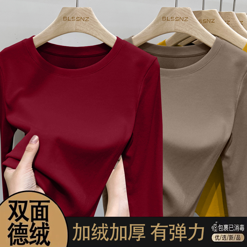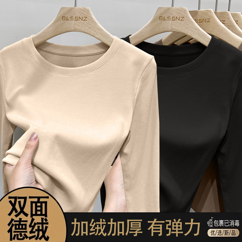 双面德绒圆领打底衫女内搭秋冬2025新款加绒加厚大码外穿长袖上衣