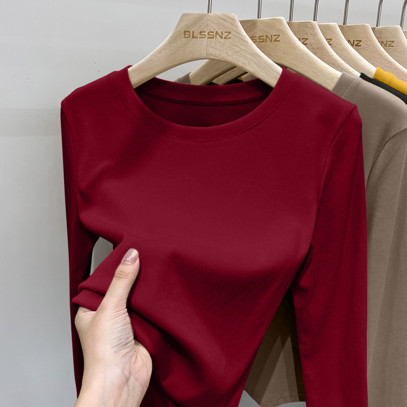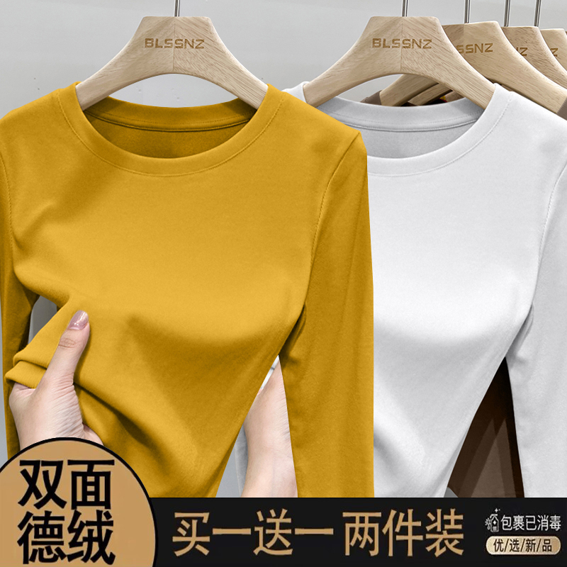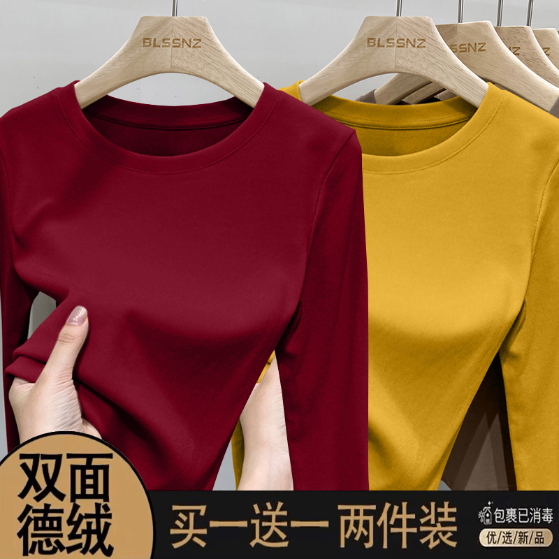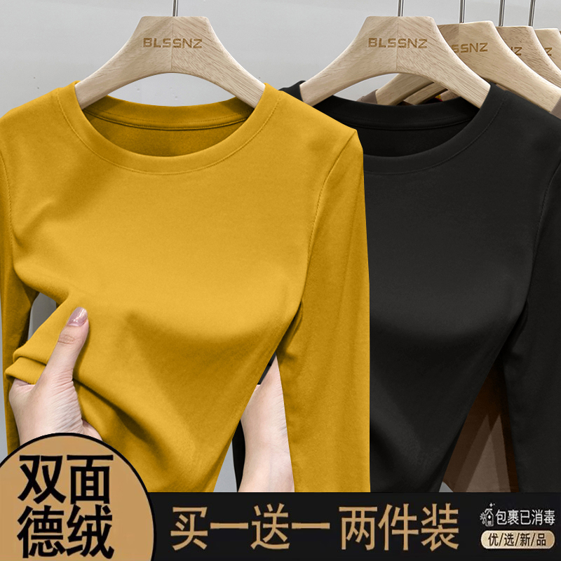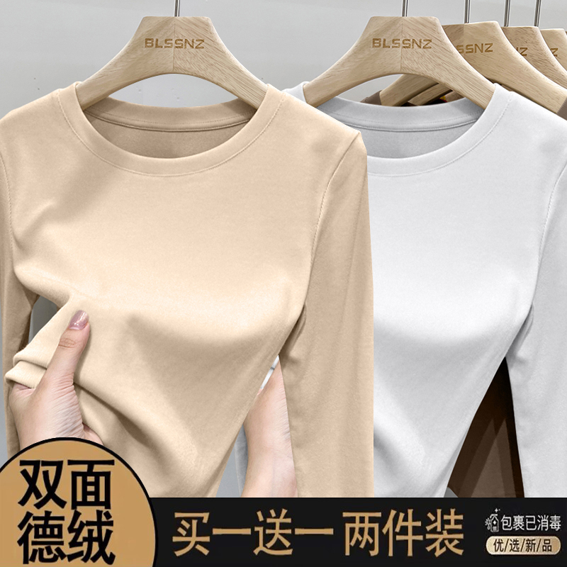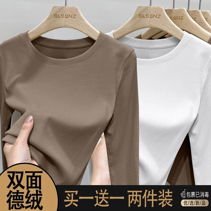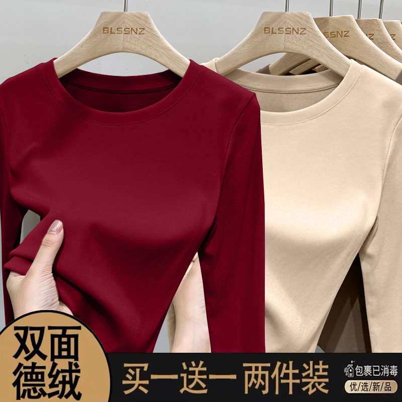 双面德绒圆领打底衫女内搭秋冬2025新款加绒加厚大码外穿长袖上衣
