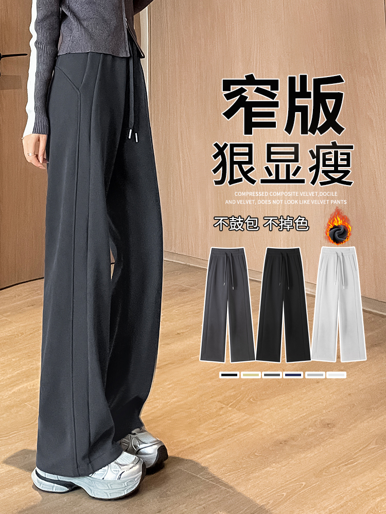 运动裤女秋冬加绒裤子女冬季加厚窄版阔腿裤2025新款休闲直筒卫裤