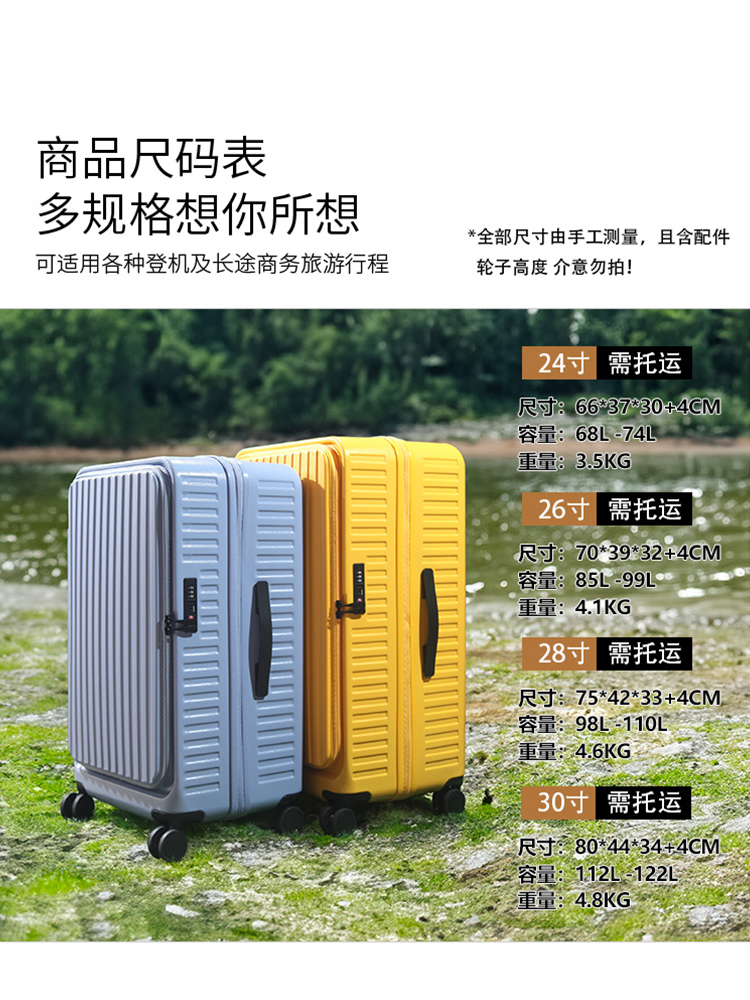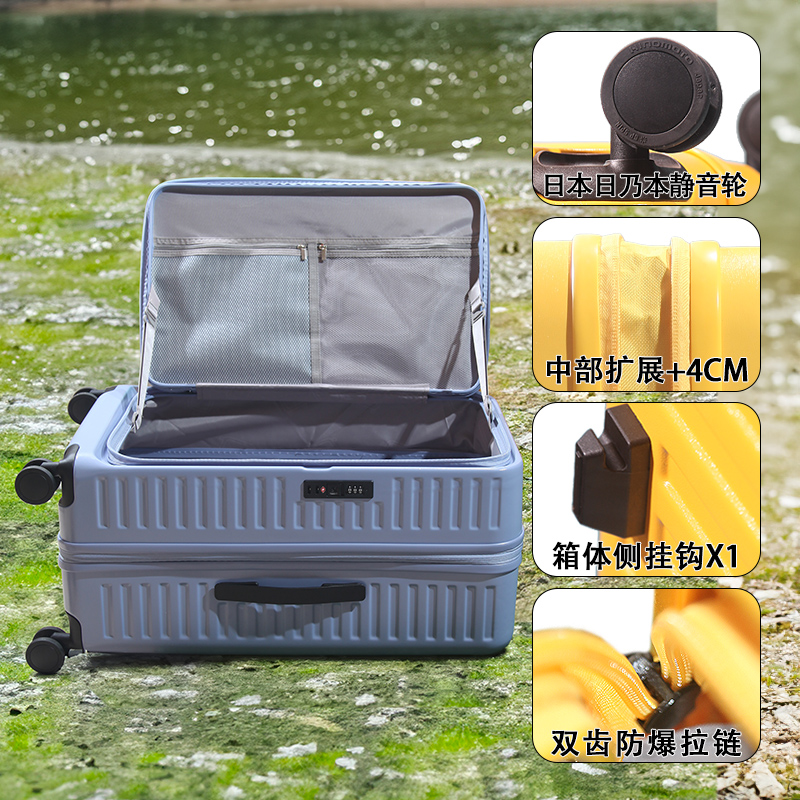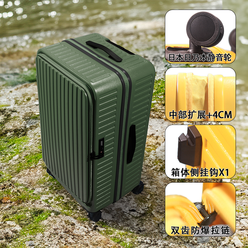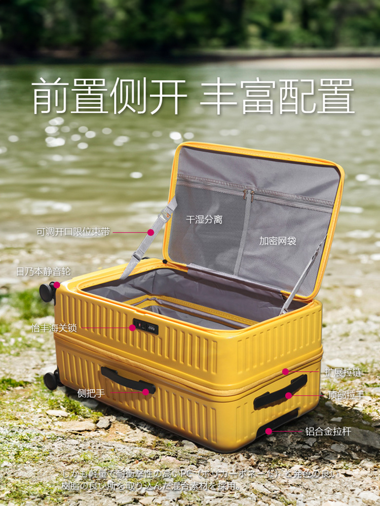日本hinomoto轮大型前置侧开口可扩展行李箱26寸男旅行拉杆箱28女