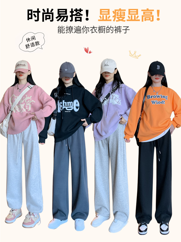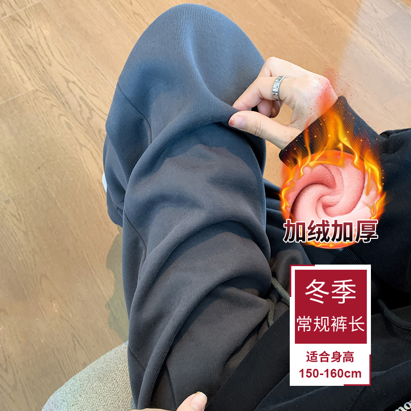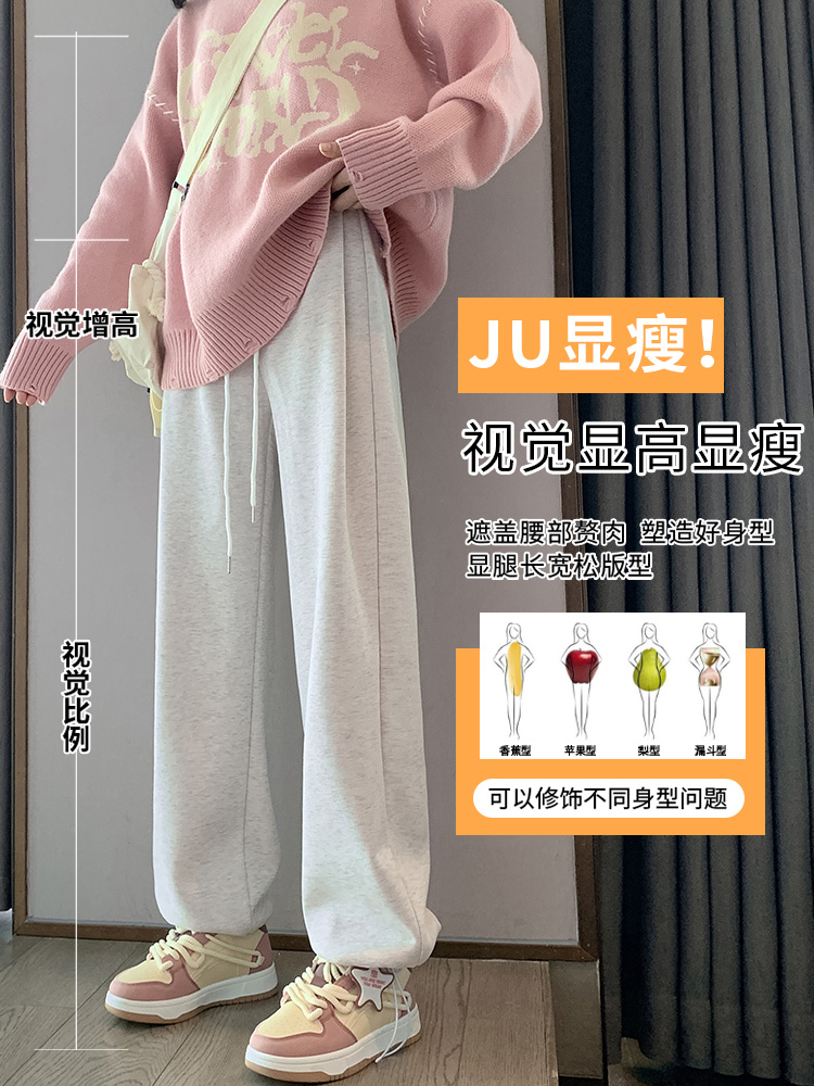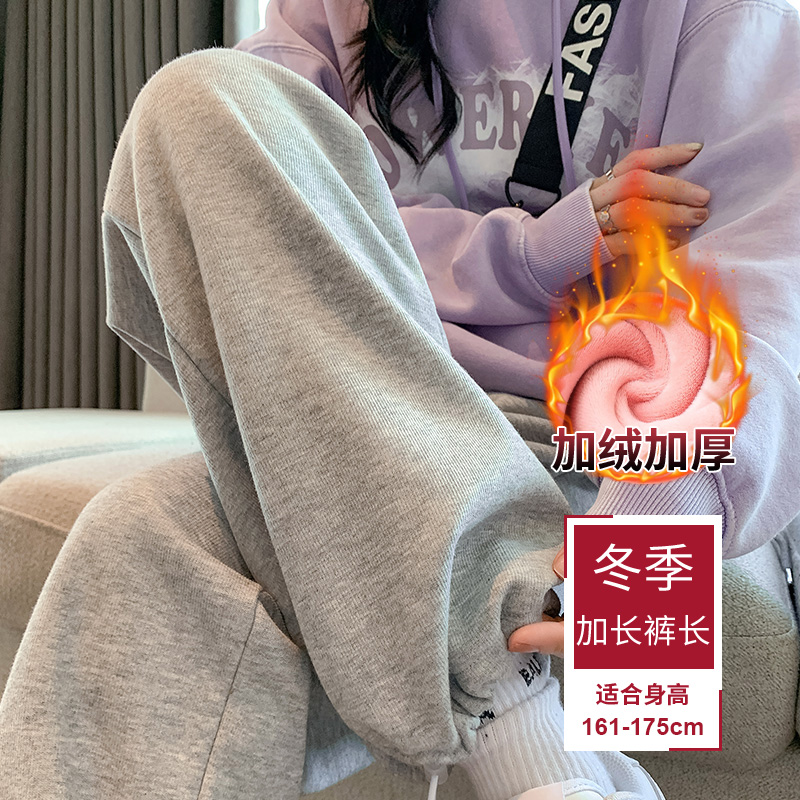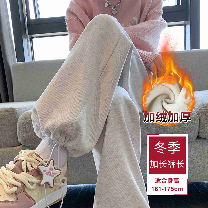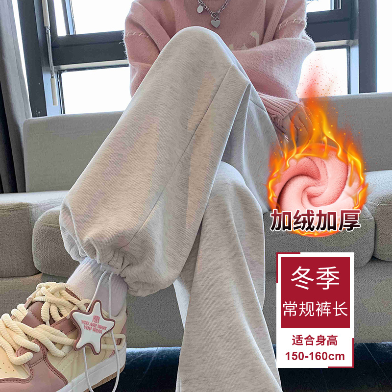 运动裤女冬季2025新款高腰宽松直筒美式束脚阔腿白灰色加绒卫裤子