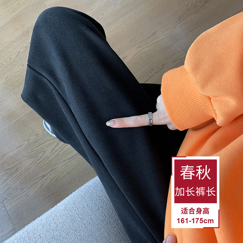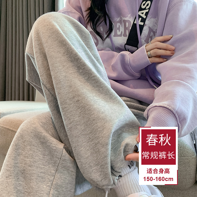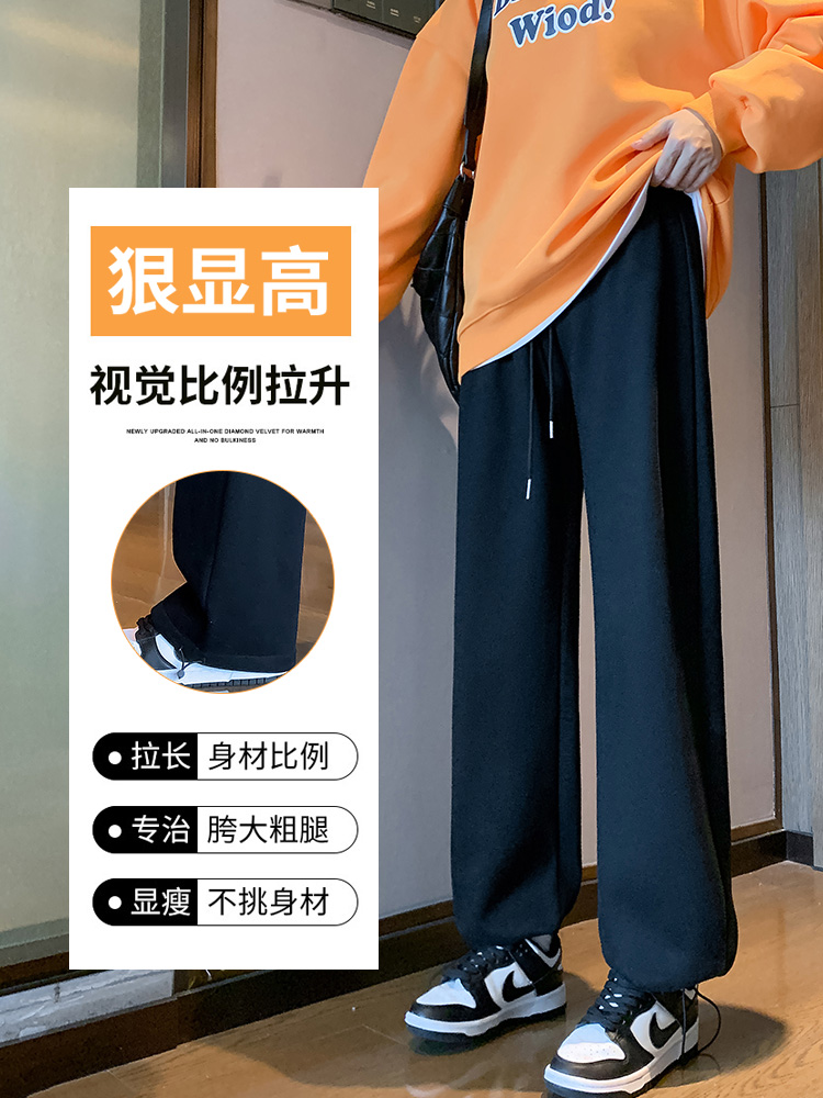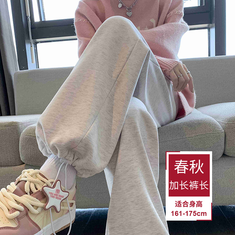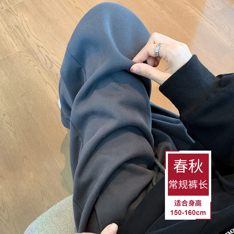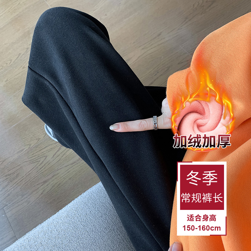 运动裤女冬季2025新款高腰宽松直筒美式束脚阔腿白灰色加绒卫裤子