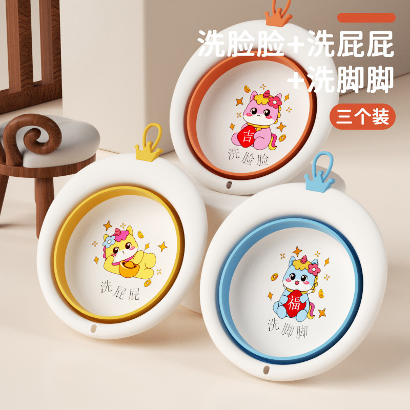 婴儿洗脸盆可折叠儿童脸盆三件套新生儿宝宝专用洗屁屁洗脚小盆子