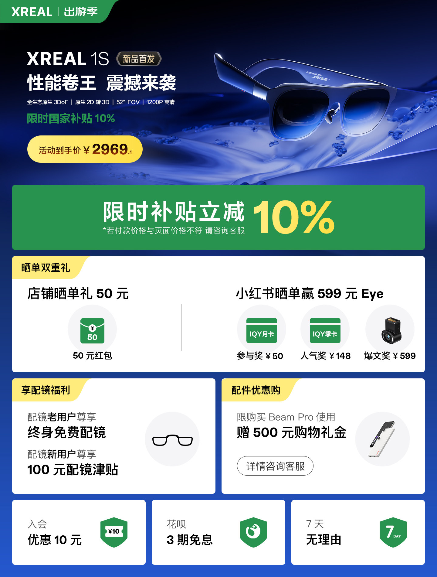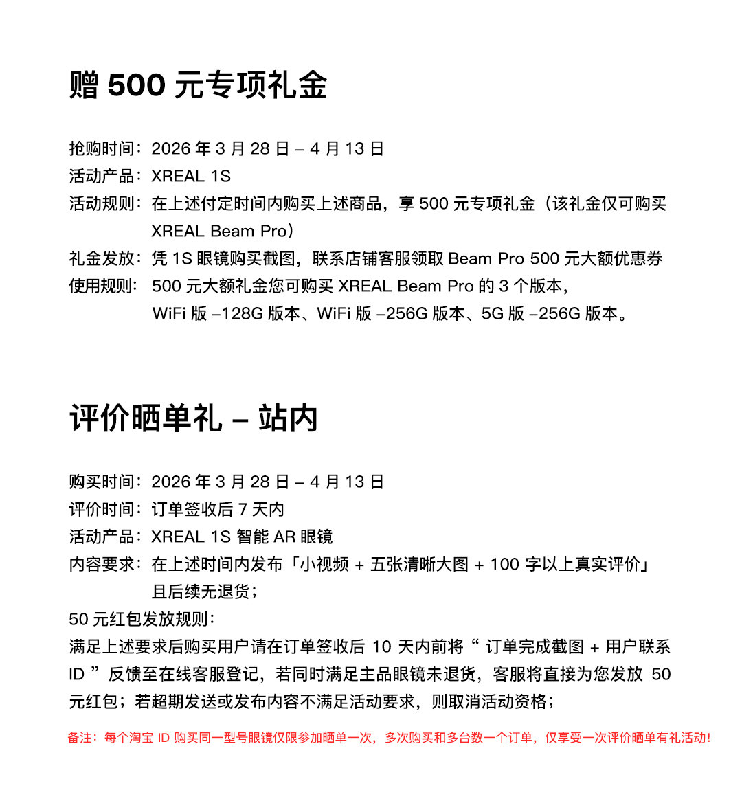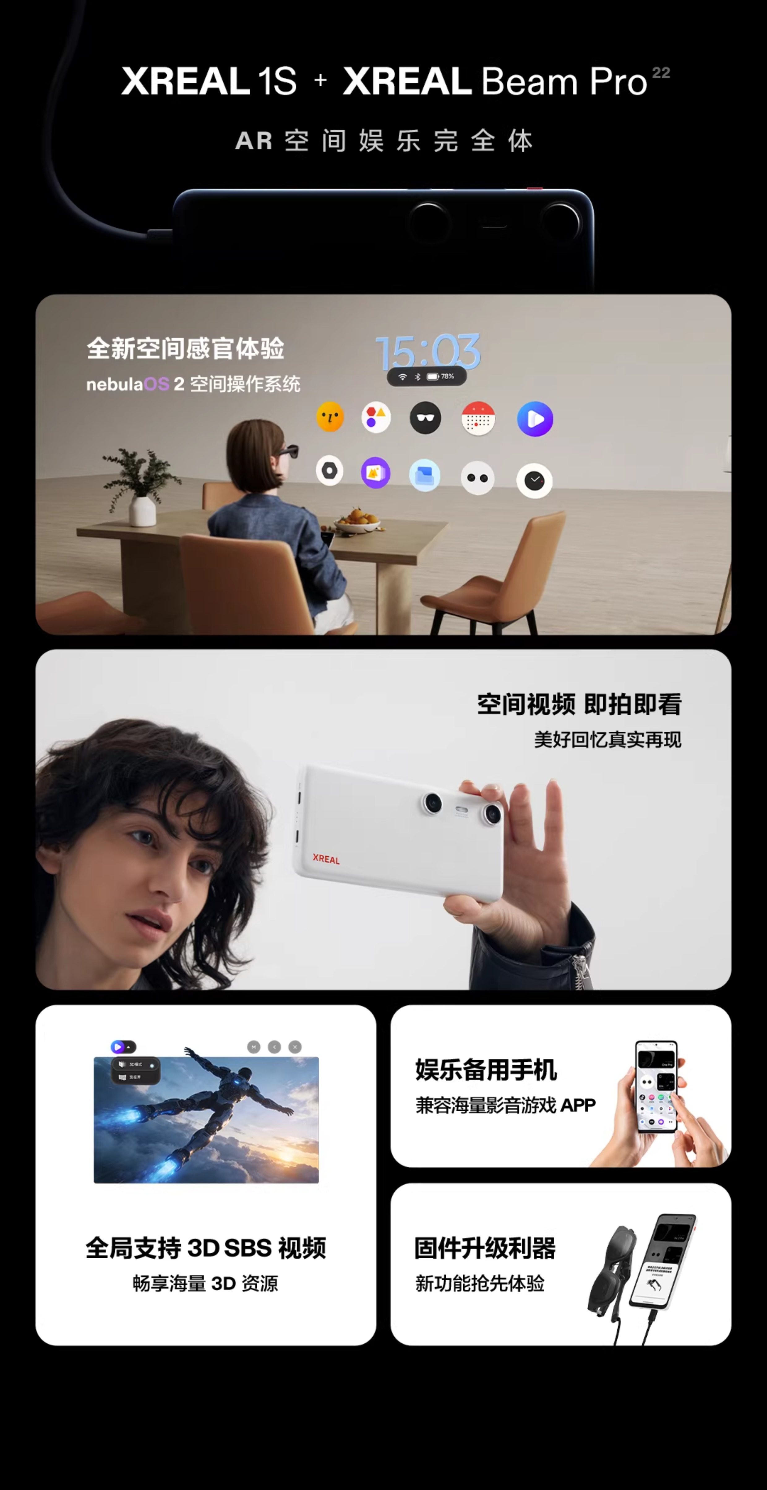 XREAL 1S AR智能眼镜 原生2D转3D 自研X1芯片空中巨幕500英寸 ar眼镜 非VR AI眼镜 移动虚拟大屏 3d电影