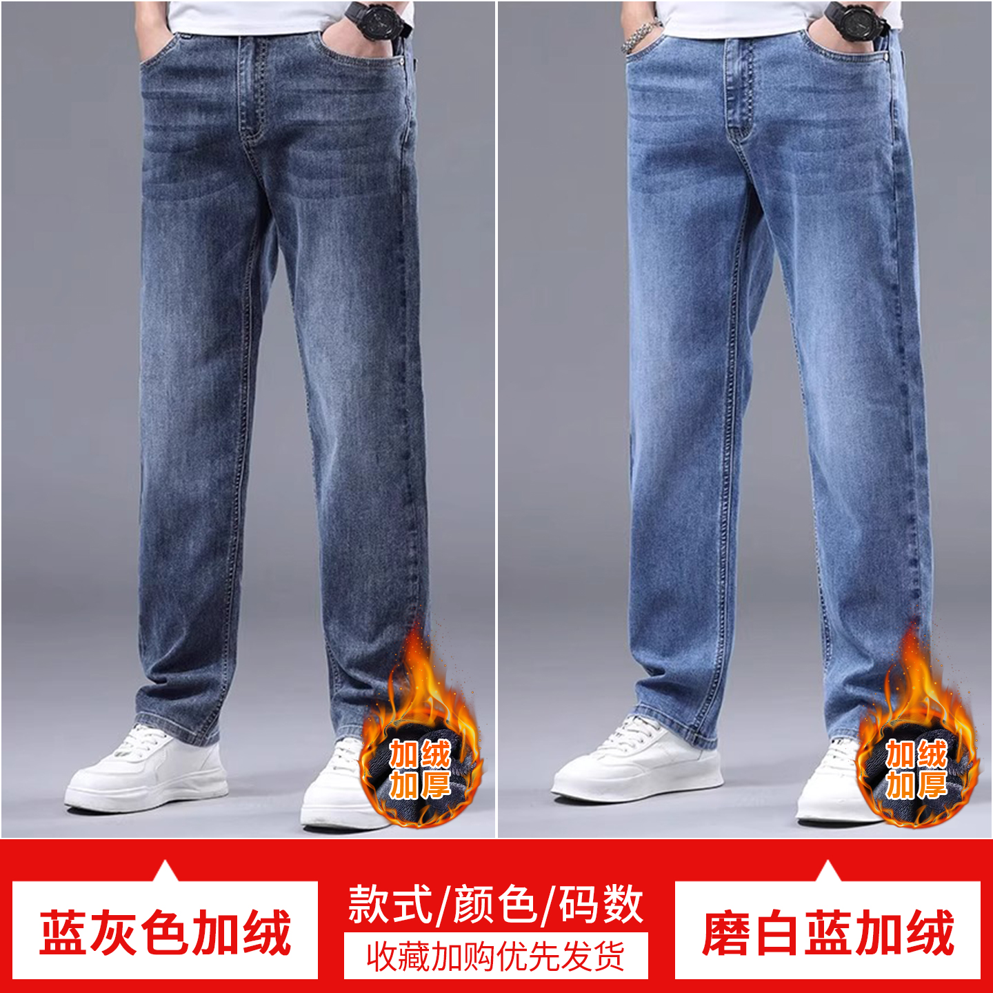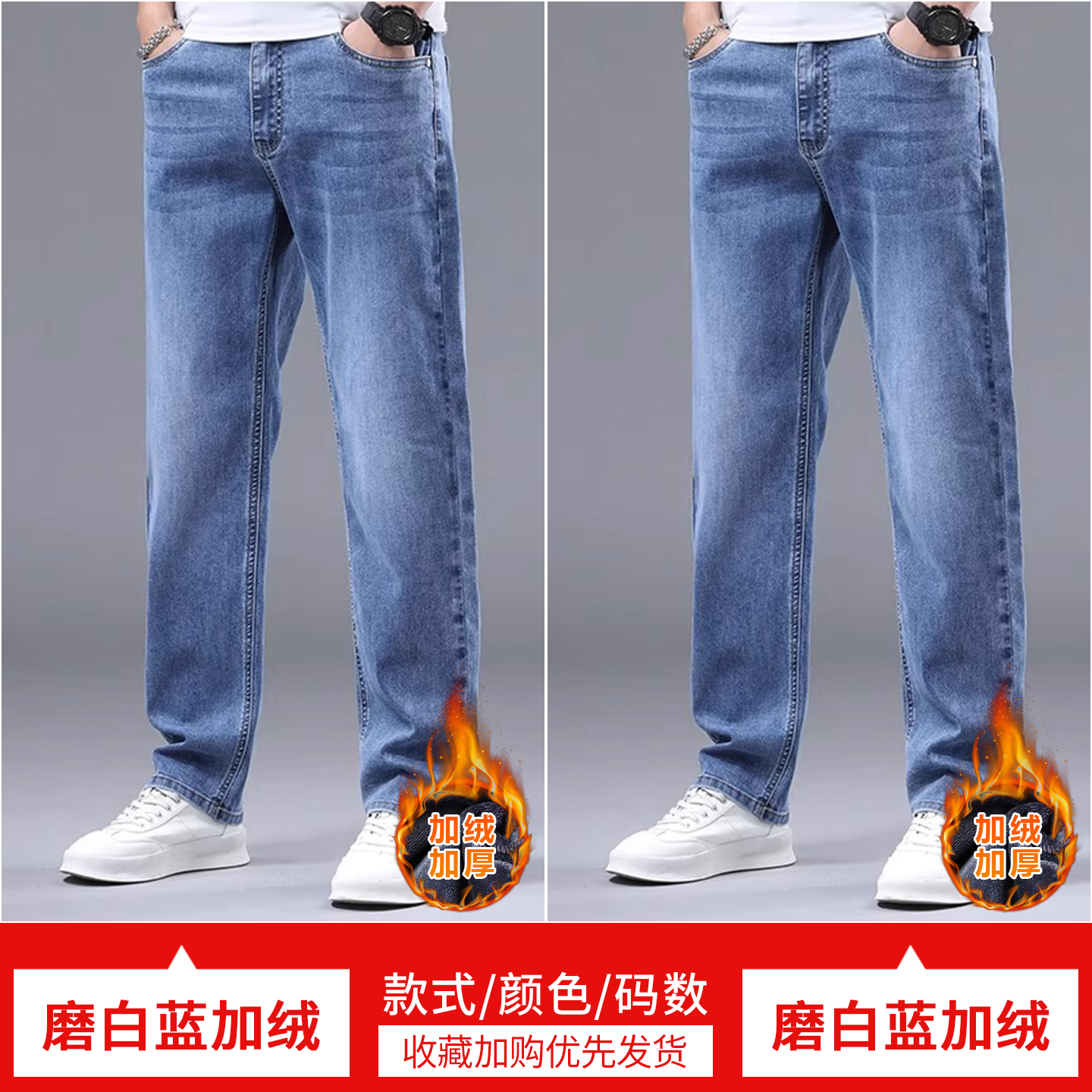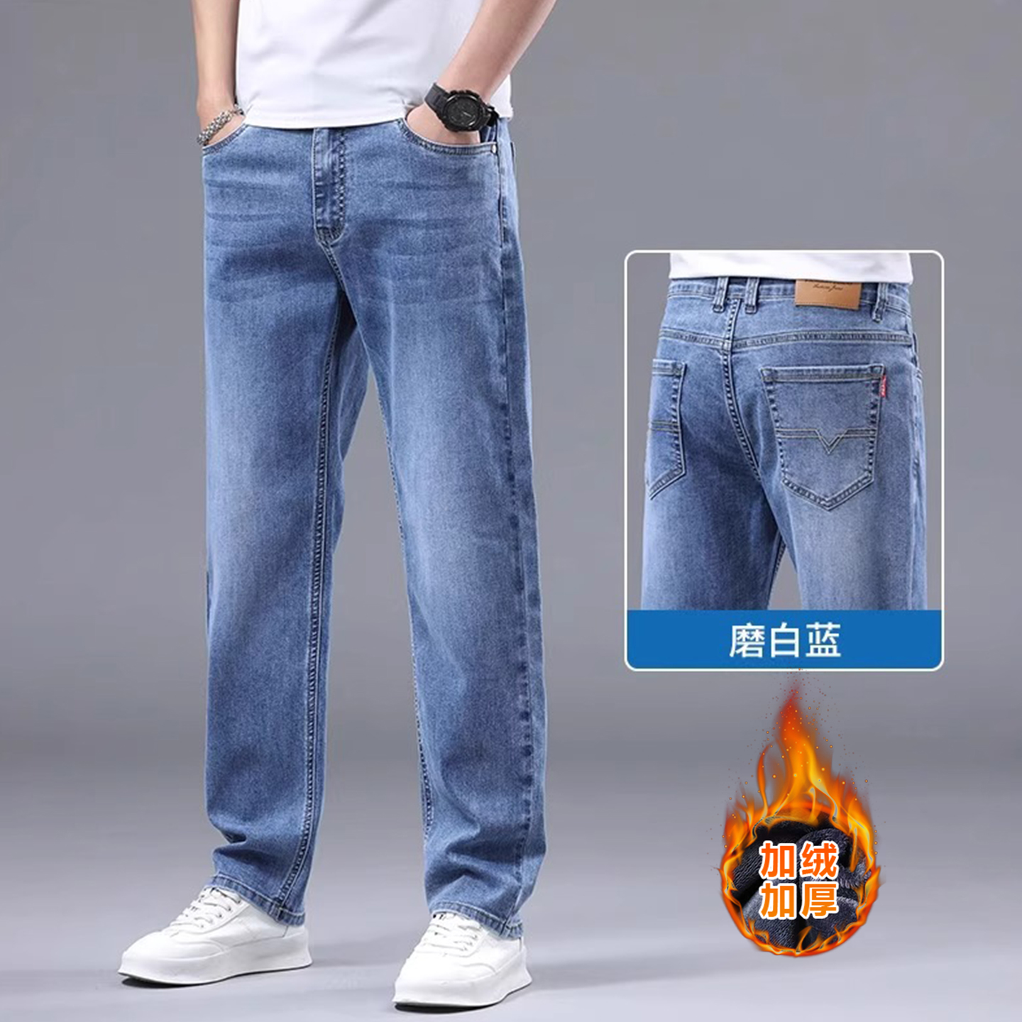真维斯秋冬季牛仔裤男士2025新款大码宽松直筒加绒休闲长裤子男款