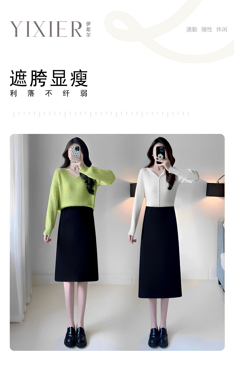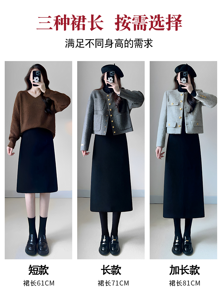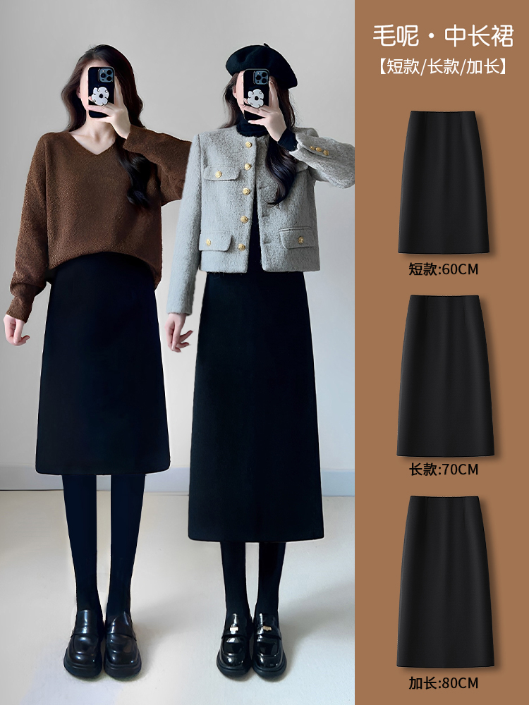 高级感黑色半身裙女秋冬2025新款显瘦毛呢a字直筒裙中长款包臀裙