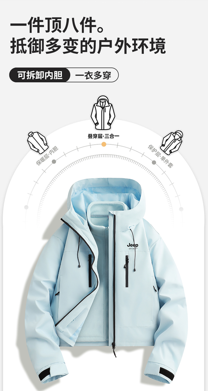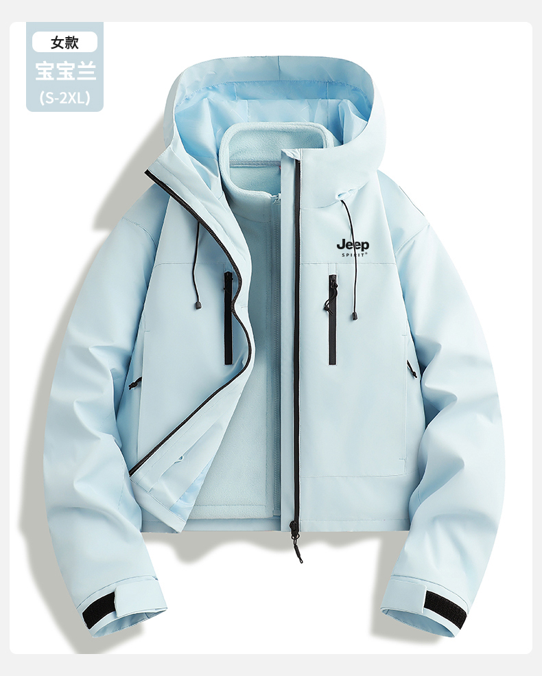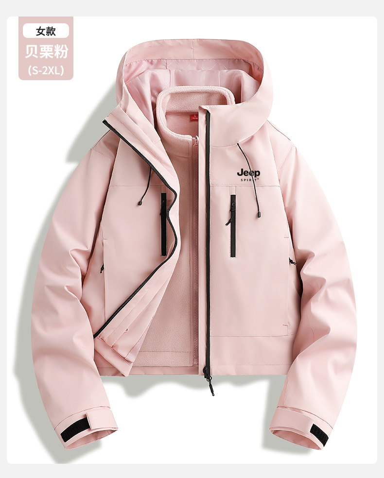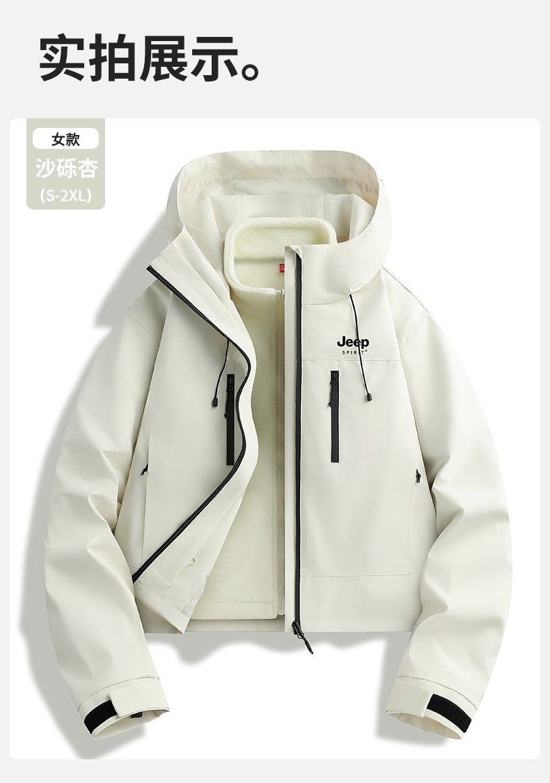 JEEP短款冲锋衣女款2025新款秋冬季三合一户外小个子防风运动外套