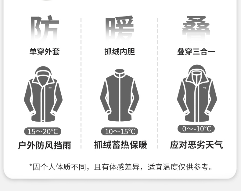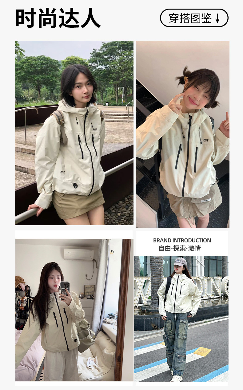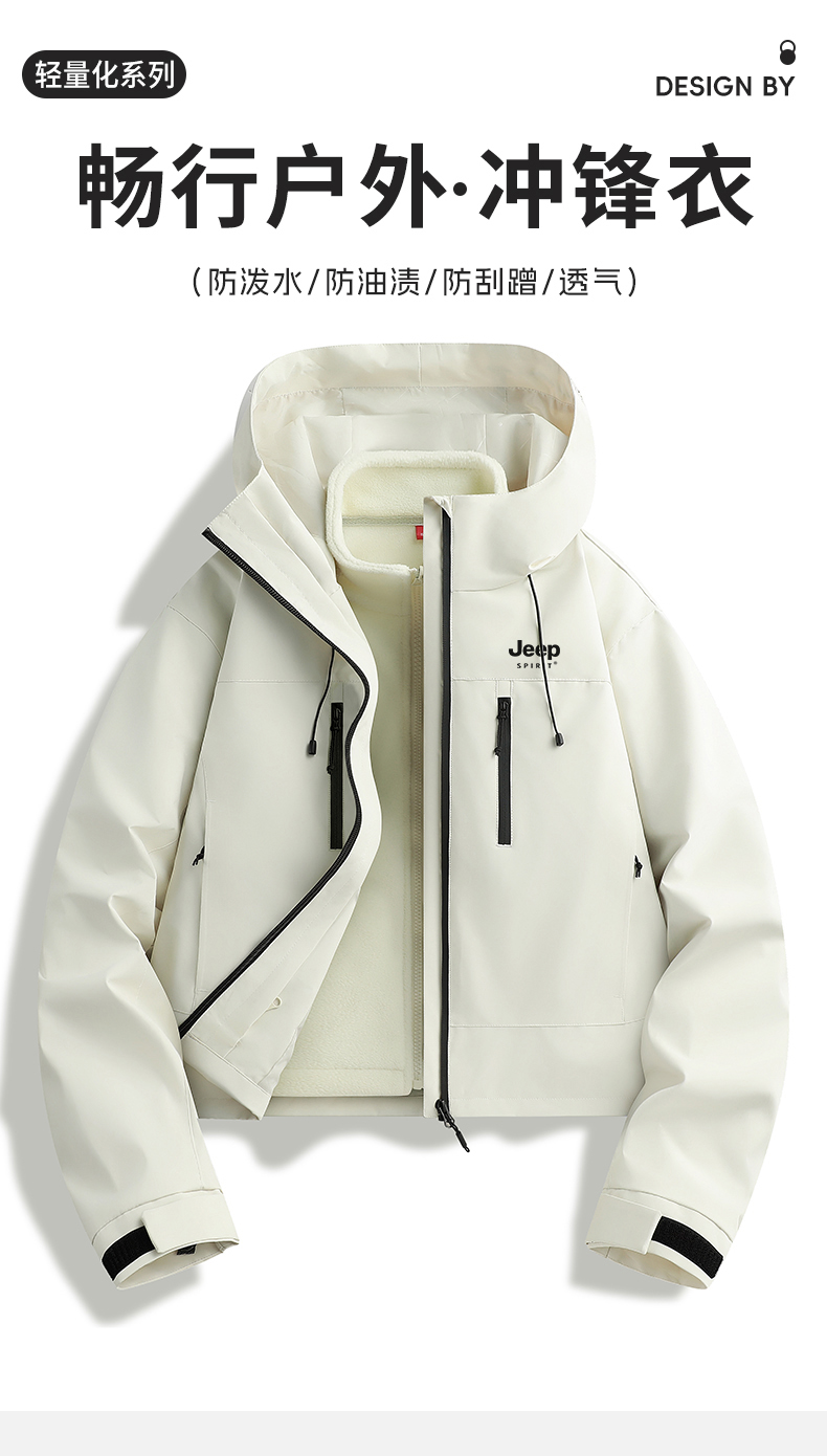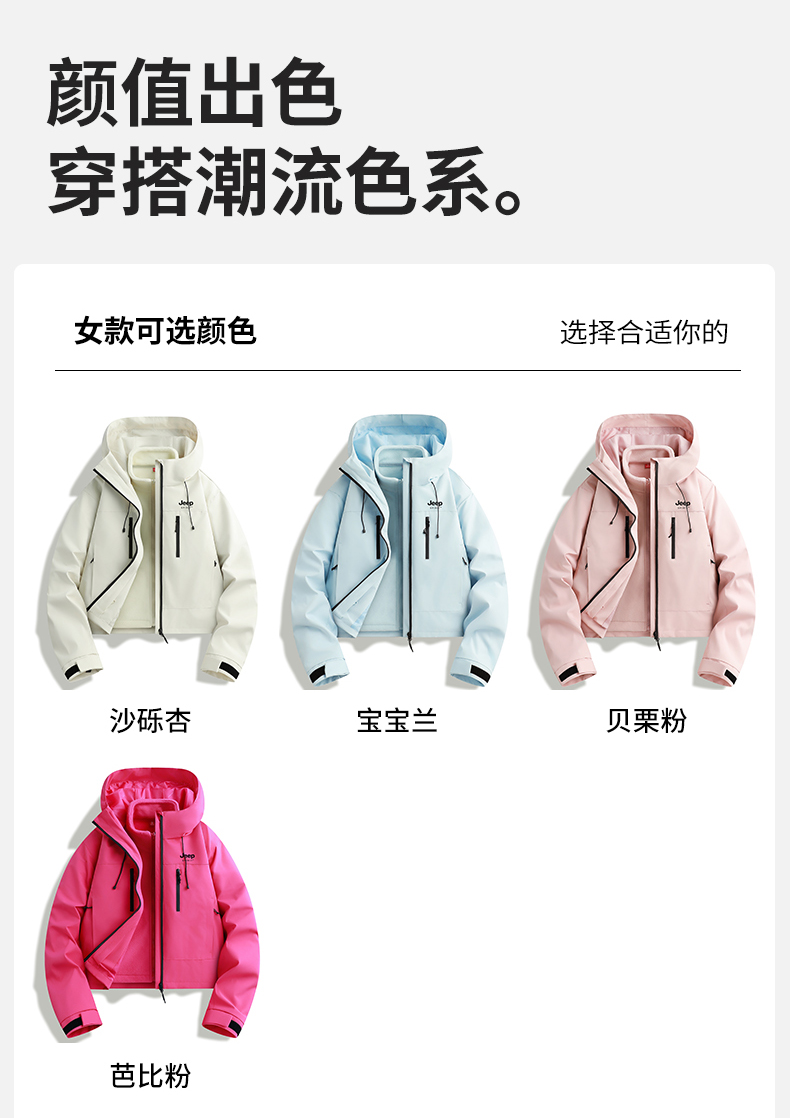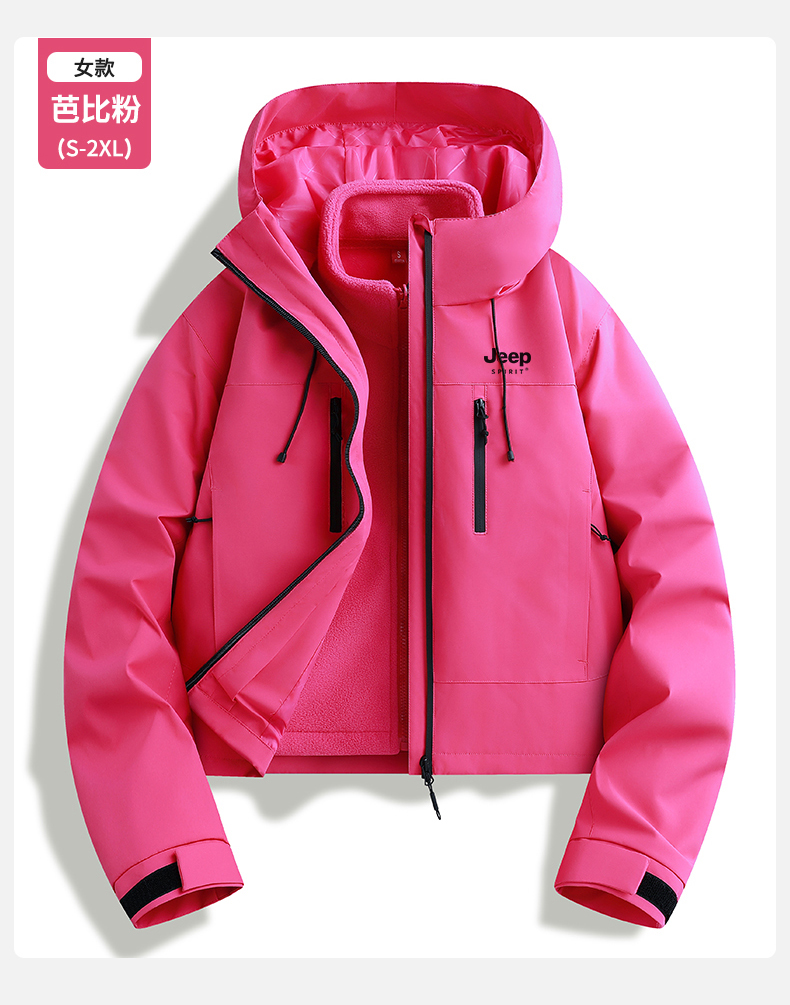 JEEP短款冲锋衣女款2025新款秋冬季三合一户外小个子防风运动外套