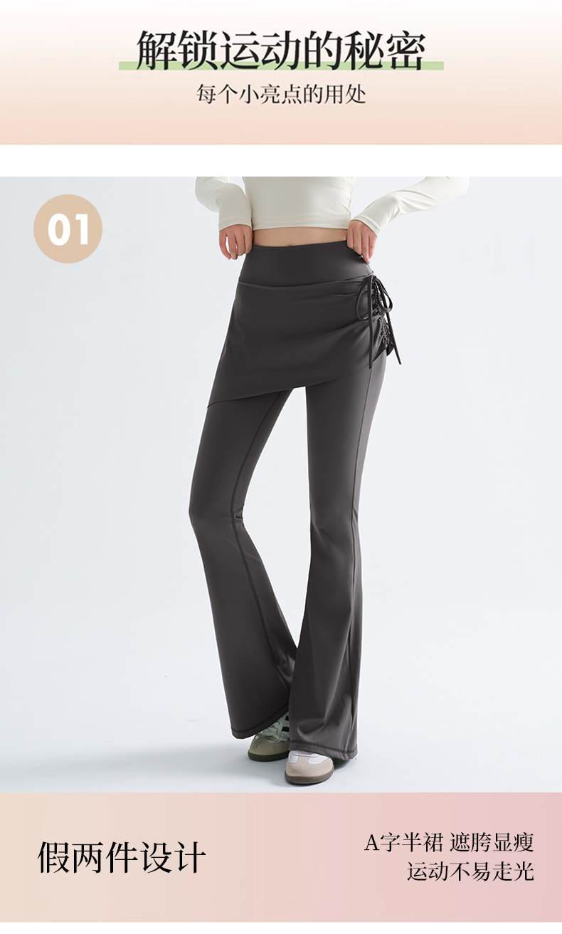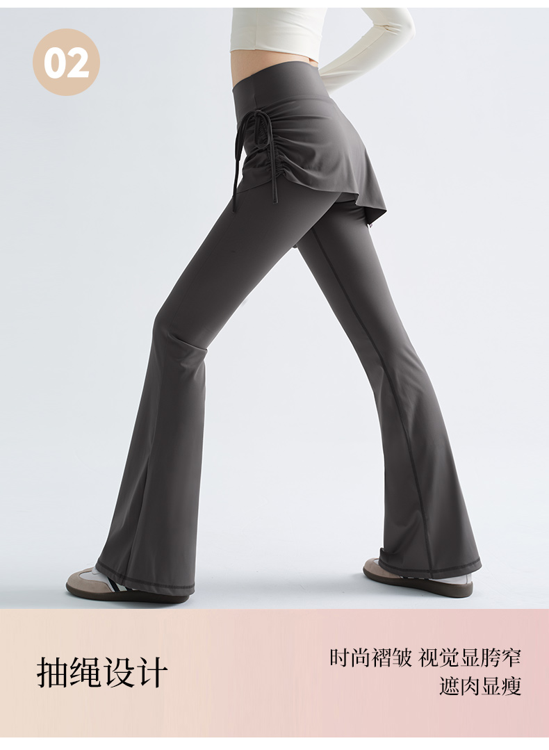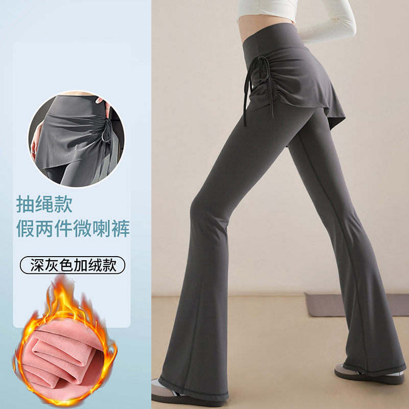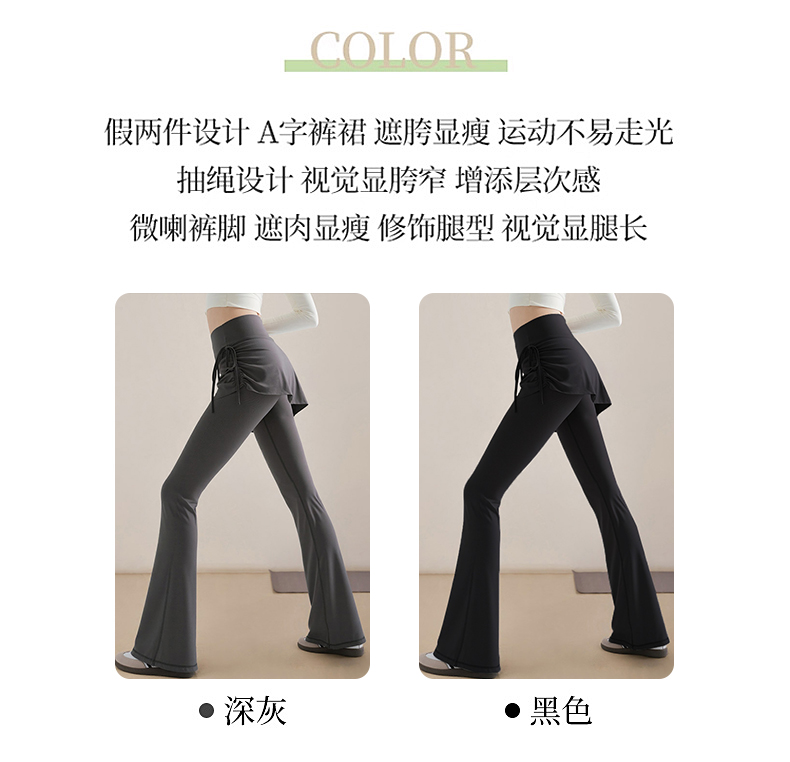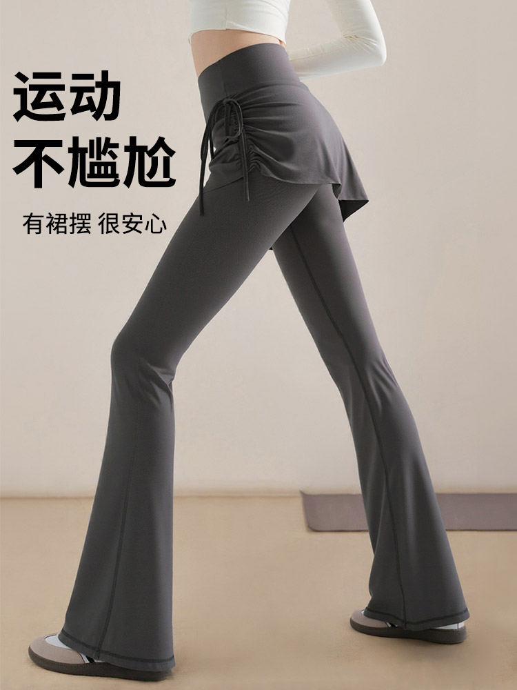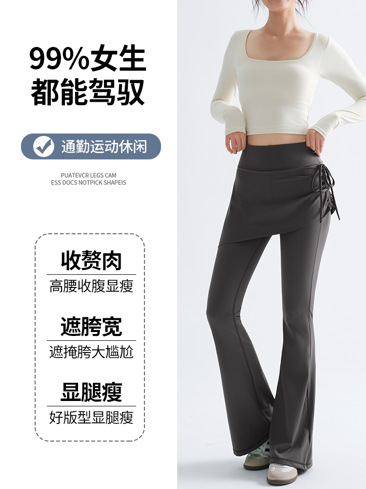 2025新款假两件微喇叭瑜伽裤女外穿大码胖mm高腰运动健身阔腿裤子