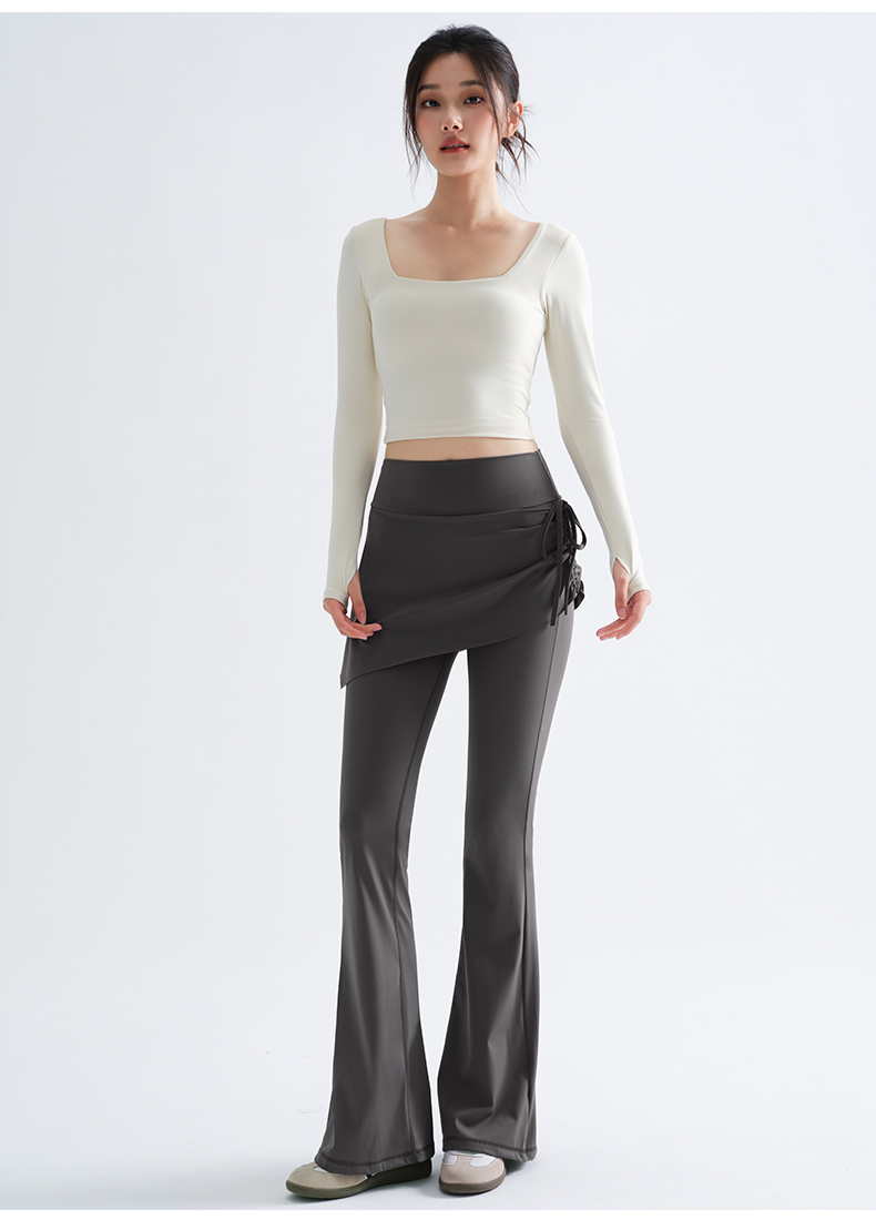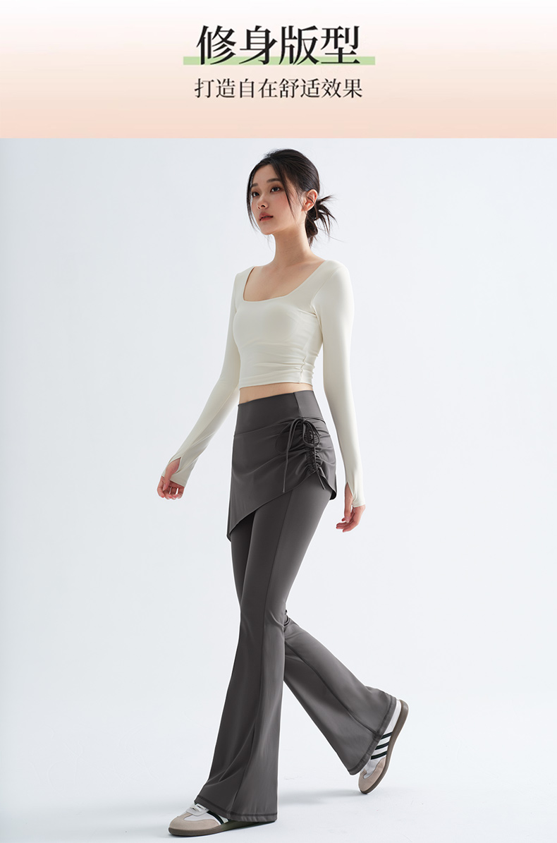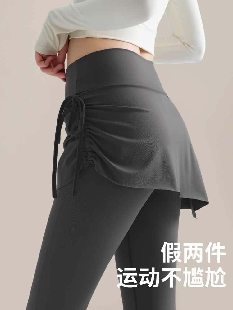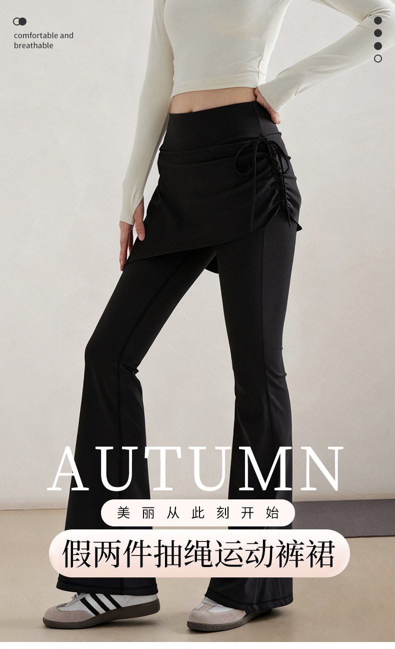 2025新款假两件微喇叭瑜伽裤女外穿大码胖mm高腰运动健身阔腿裤子
