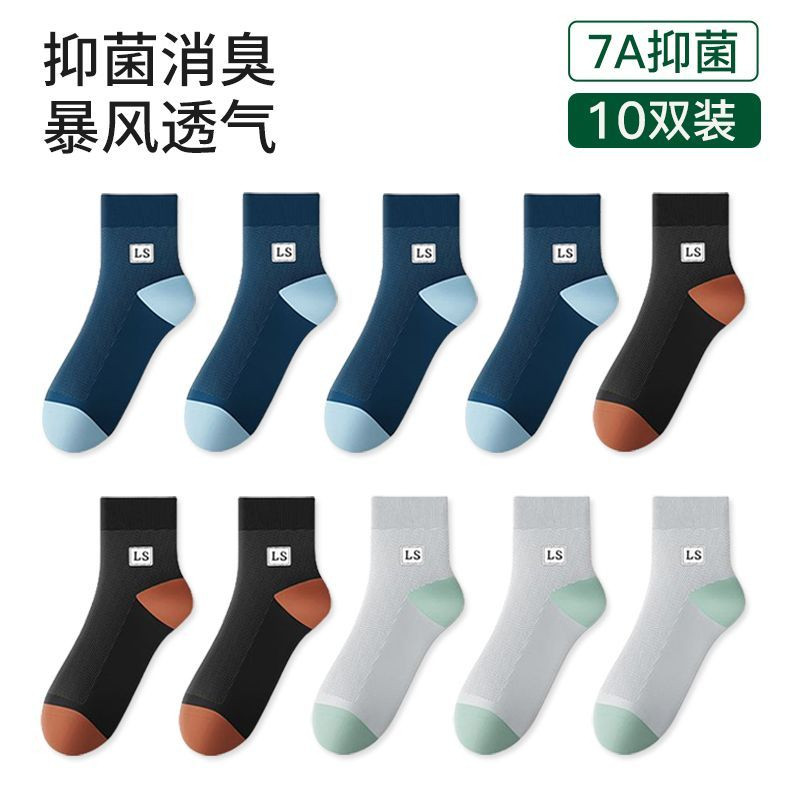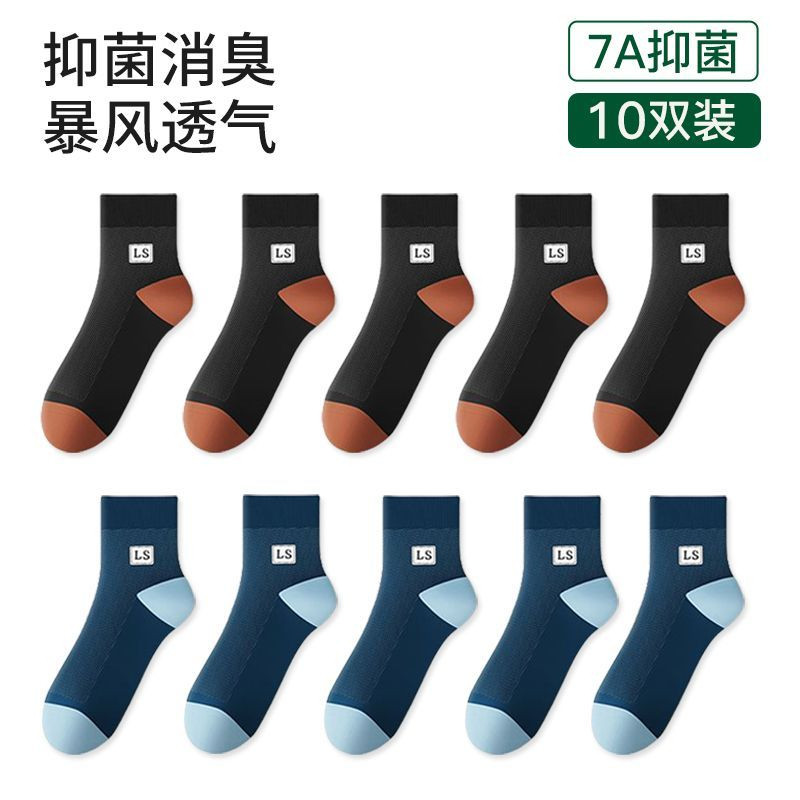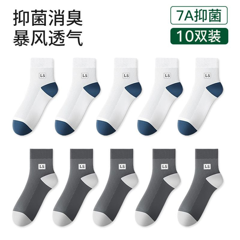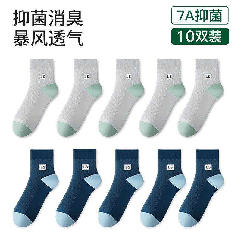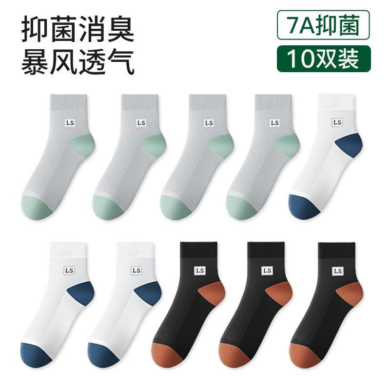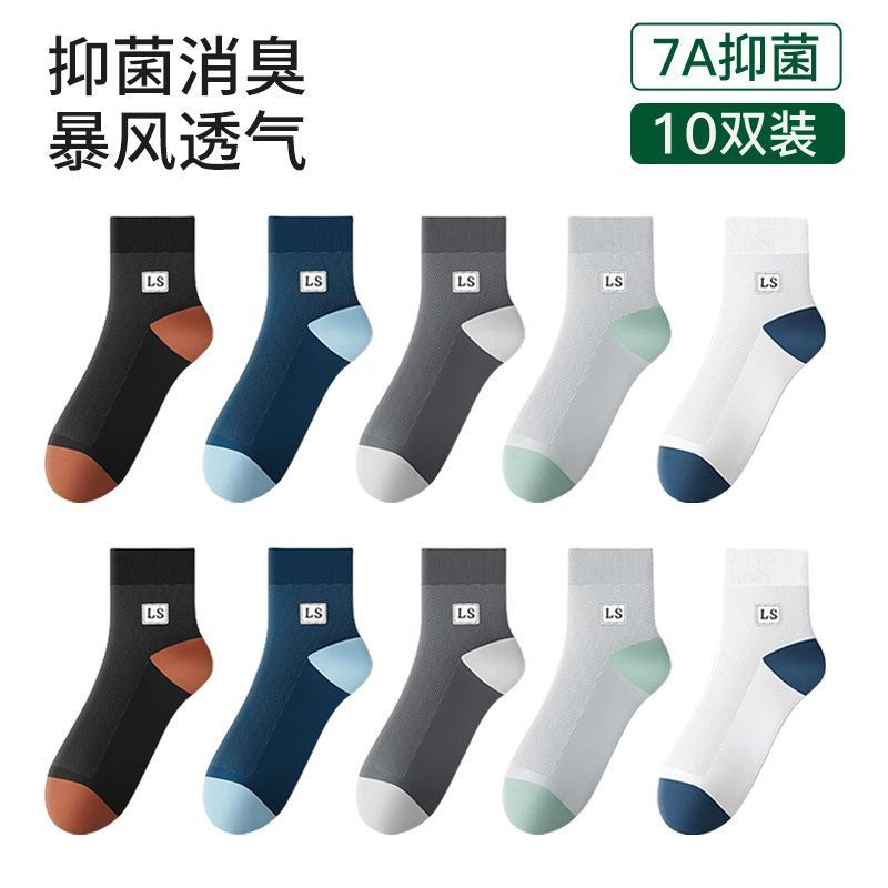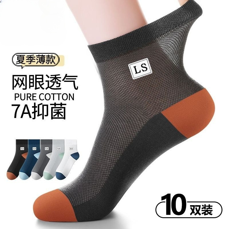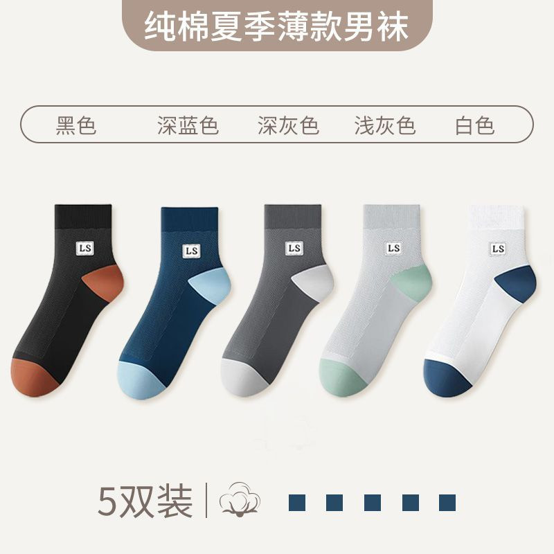 袜子男款夏季薄款中筒袜纯色网眼透气吸湿排汗夏天男士休闲时尚袜